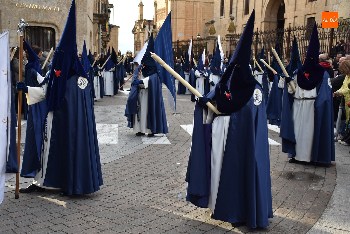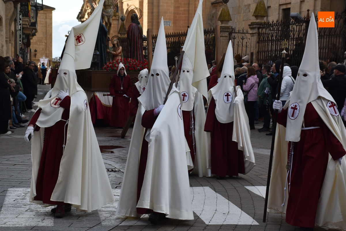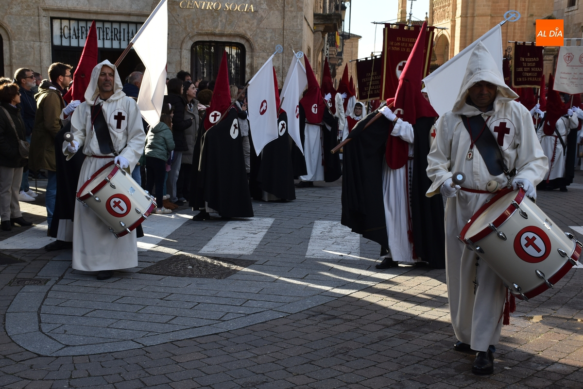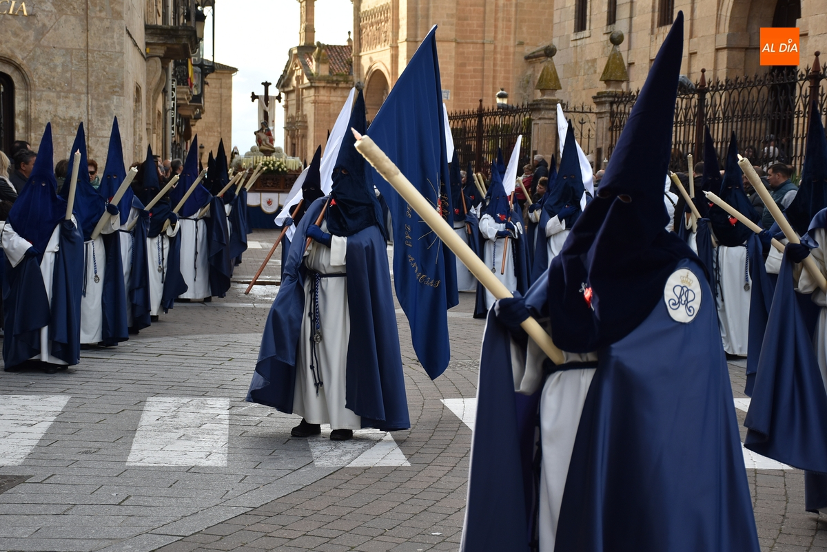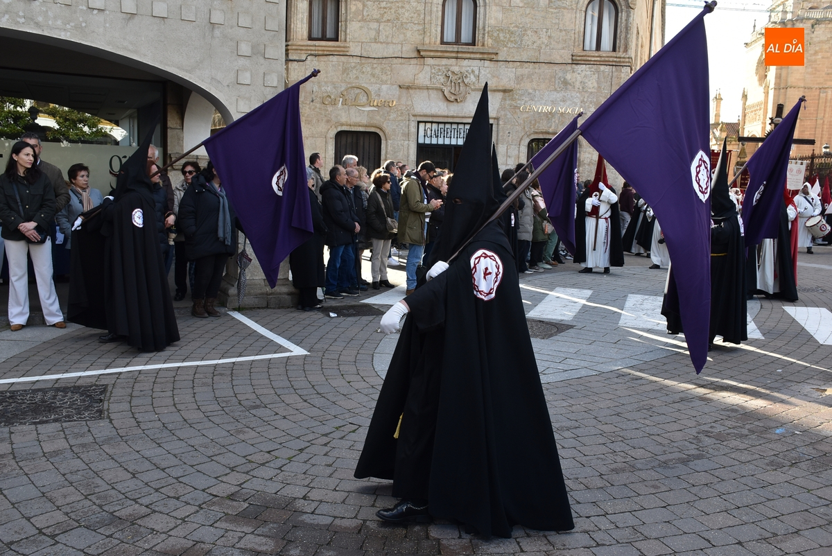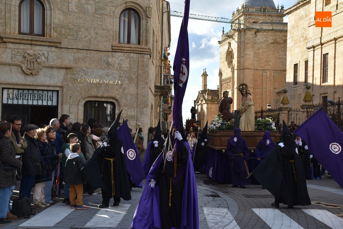 Toda la comitiva hizo conjunta el trayecto por Cardenal Pacheco, Plaza Mayor (que estuvo abarrotadísima), Rúa del Sol, Gigantes, Plaza de San Pedro y Plaza Cristóbal de Castillejo, por donde empezaron los ‘abandonos’, para ir regresando varias de las compañías a sus sedes. Así, El Silencio se quedó en San Pedro-San Isidoro, el Nazareno y parte de La Cruz en San Agustín, y La Borriquilla se desvió para bajar al Arrabal del Puente por la Puerta de Santiago.