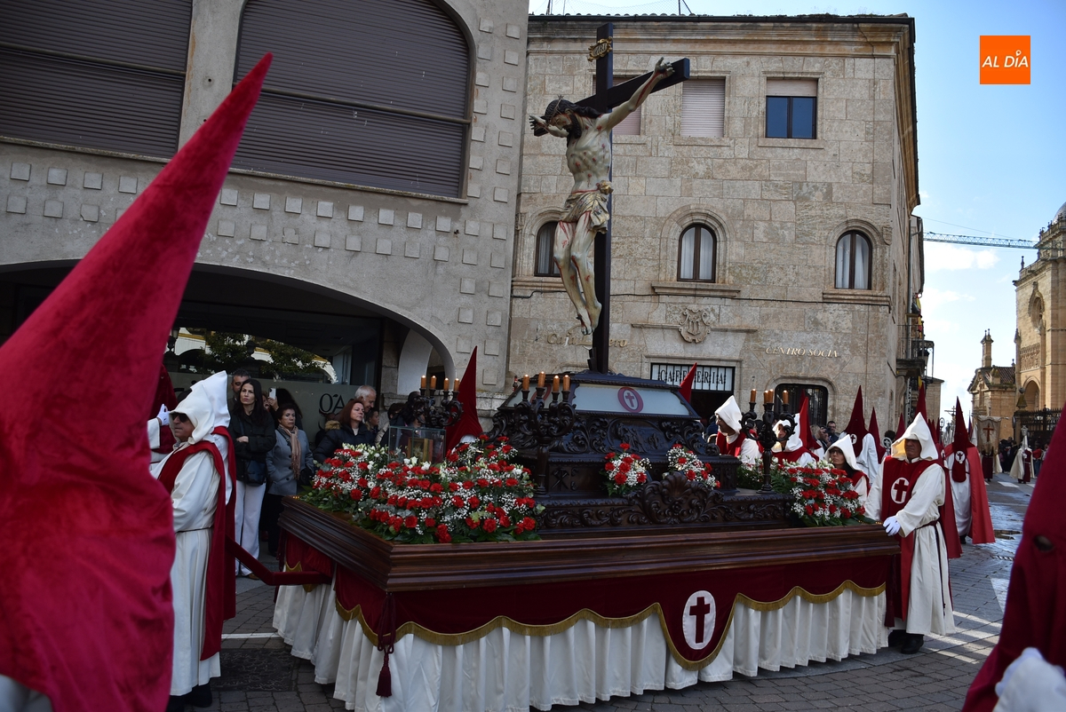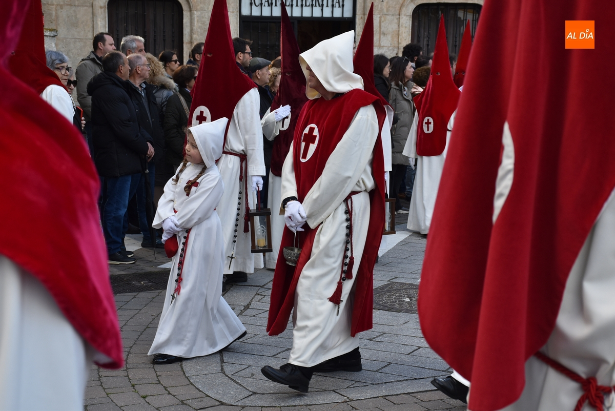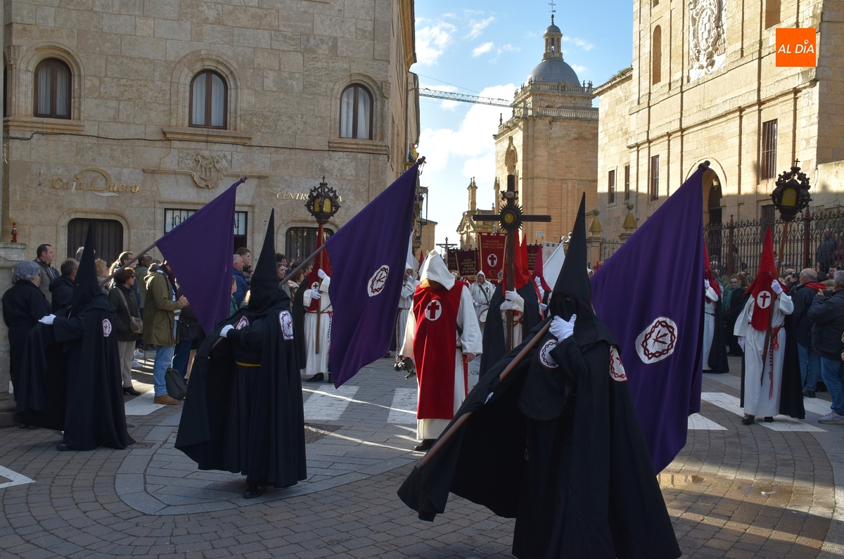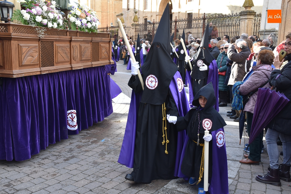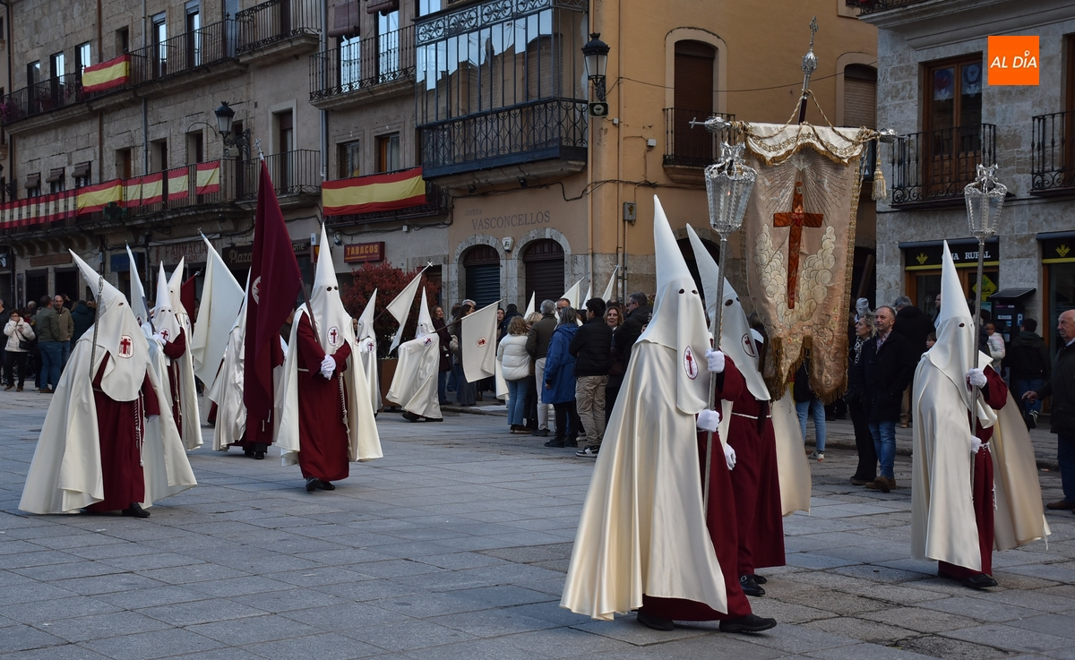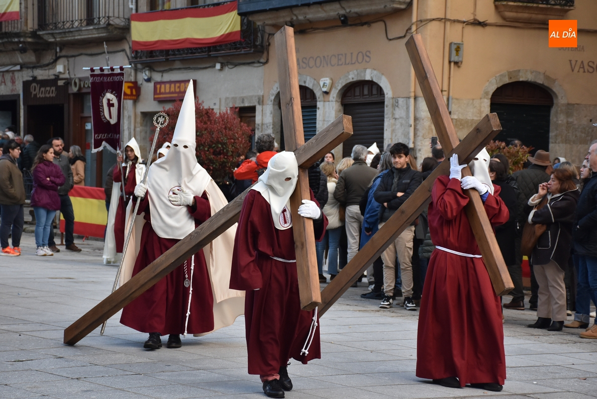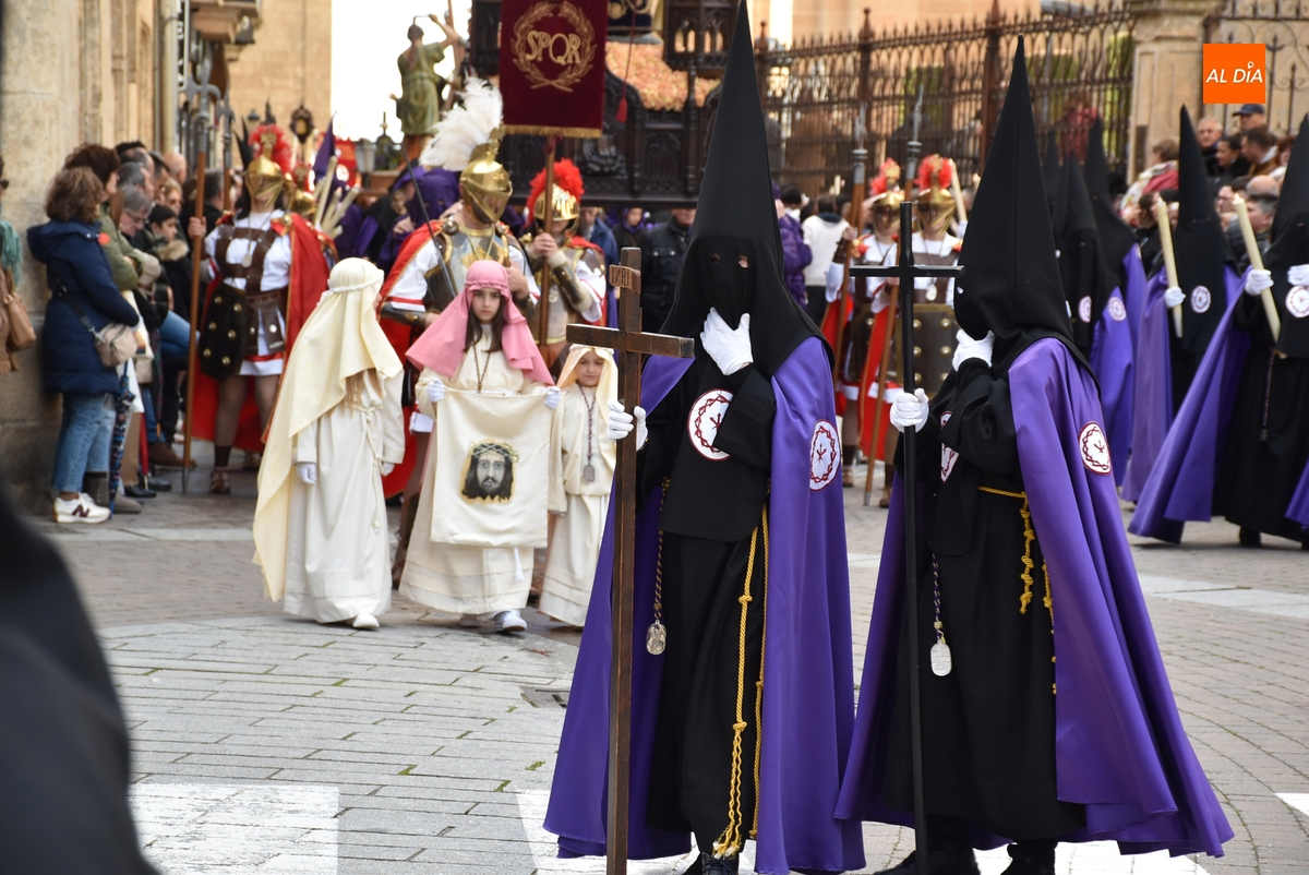 Toda la comitiva hizo conjunta el trayecto por Cardenal Pacheco, Plaza Mayor (que estuvo abarrotadísima), Rúa del Sol, Gigantes, Plaza de San Pedro y Plaza Cristóbal de Castillejo, por donde empezaron los ‘abandonos’, para ir regresando varias de las compañías a sus sedes. Así, El Silencio se quedó en San Pedro-San Isidoro, el Nazareno y parte de La Cruz en San Agustín, y La Borriquilla se desvió para bajar al Arrabal del Puente por la Puerta de Santiago.