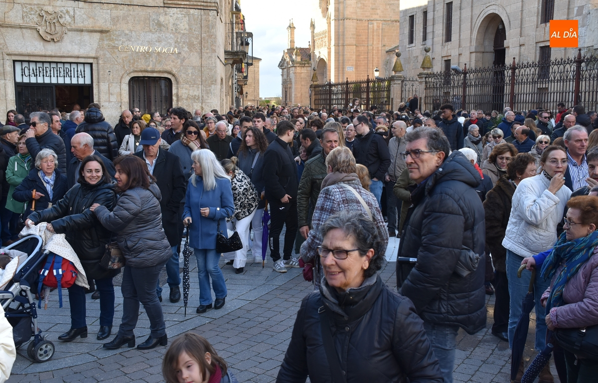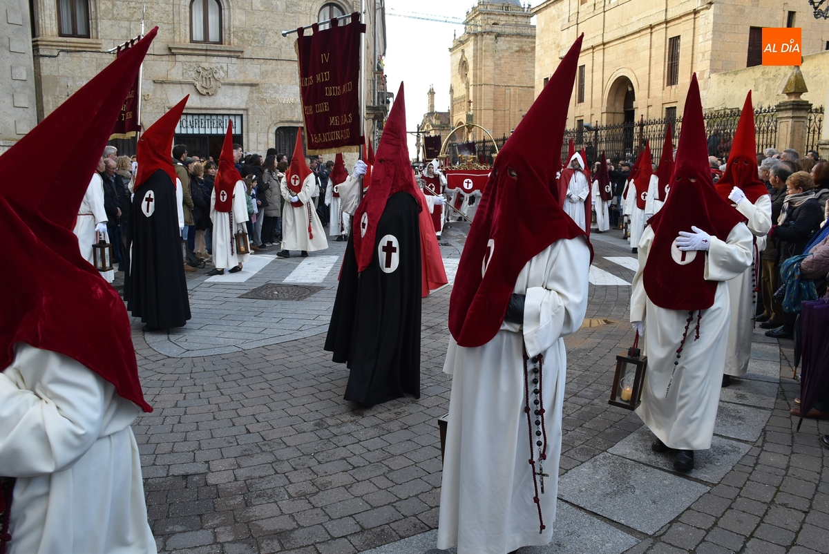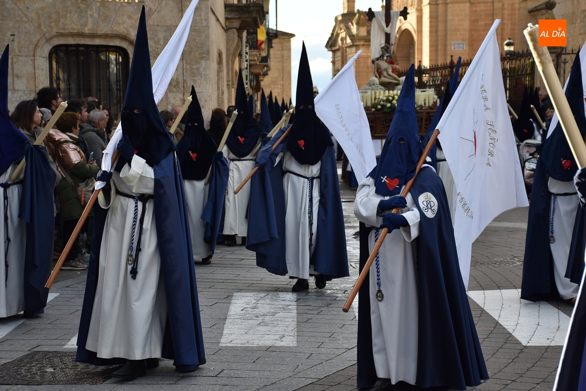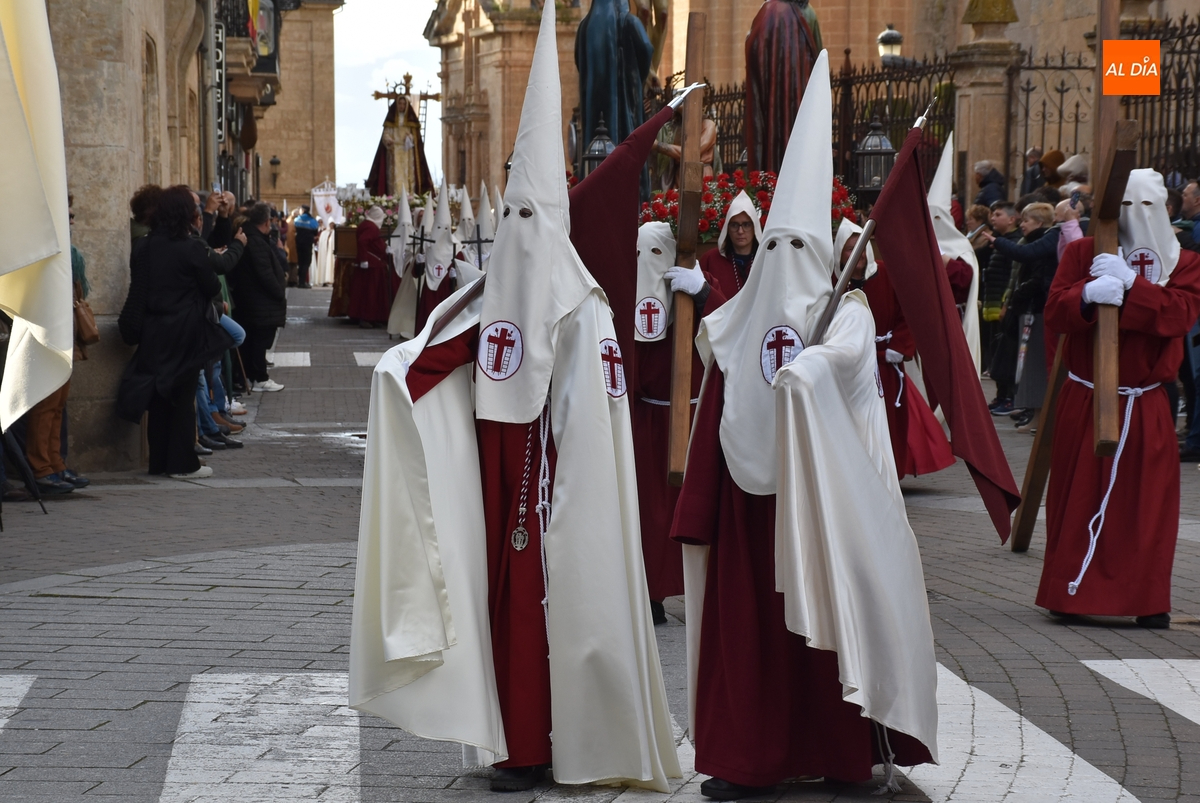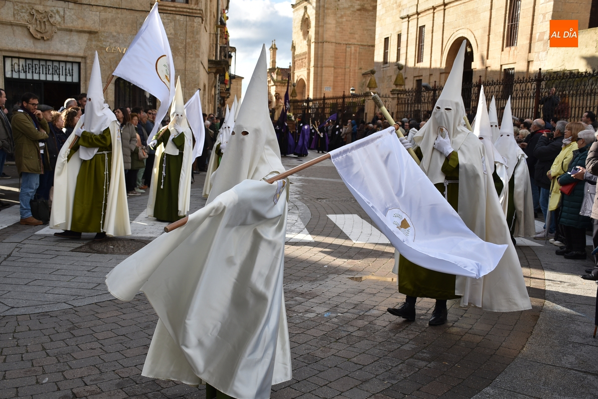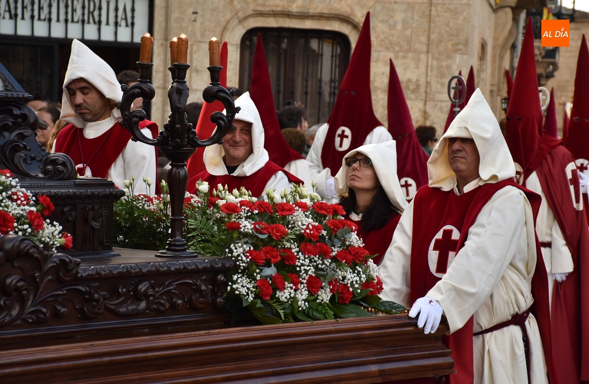 Toda la comitiva hizo conjunta el trayecto por Cardenal Pacheco, Plaza Mayor (que estuvo abarrotadísima), Rúa del Sol, Gigantes, Plaza de San Pedro y Plaza Cristóbal de Castillejo, por donde empezaron los ‘abandonos’, para ir regresando varias de las compañías a sus sedes. Así, El Silencio se quedó en San Pedro-San Isidoro, el Nazareno y parte de La Cruz en San Agustín, y La Borriquilla se desvió para bajar al Arrabal del Puente por la Puerta de Santiago.