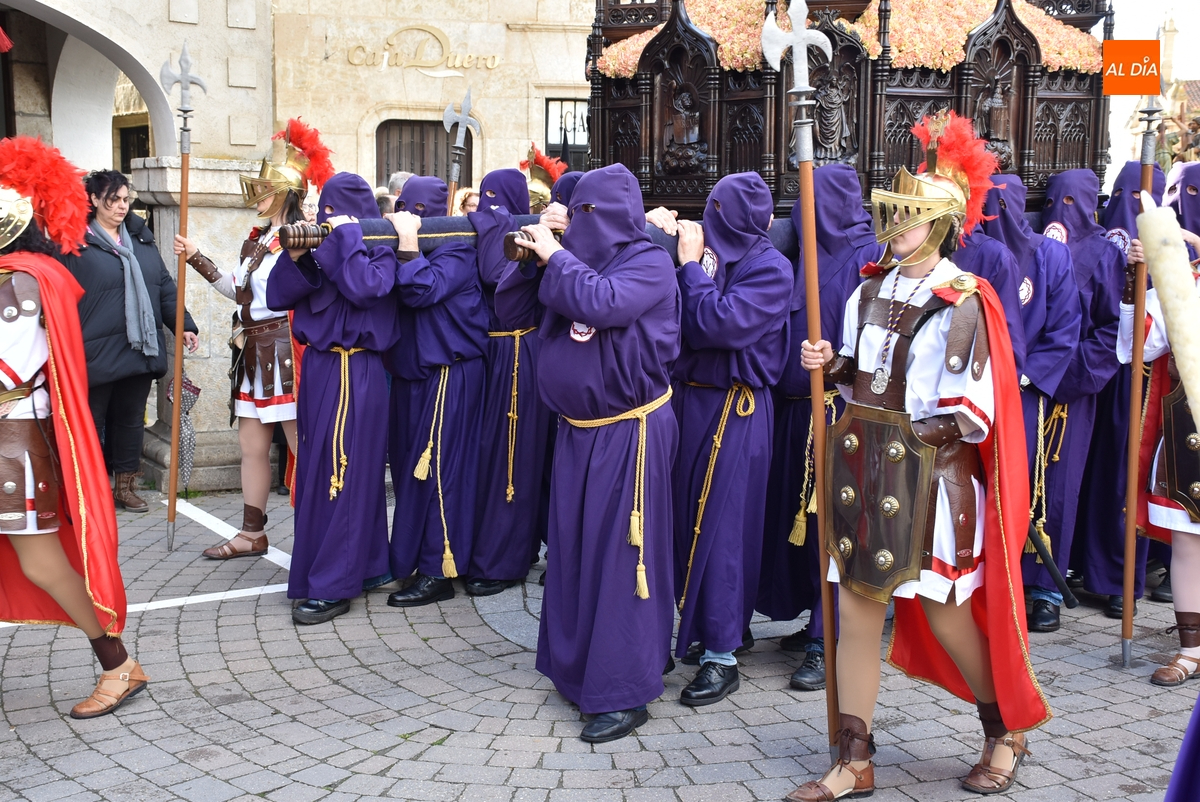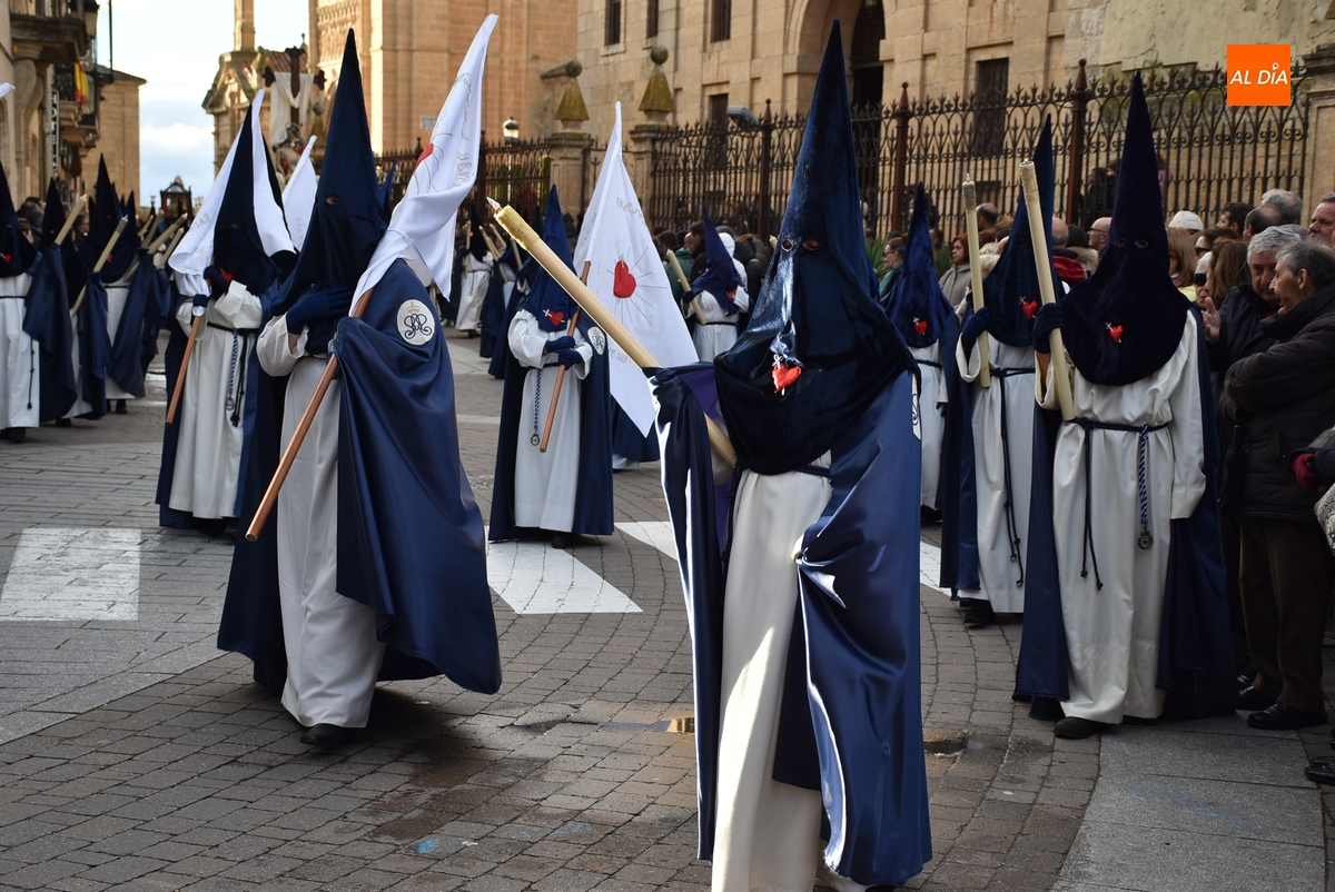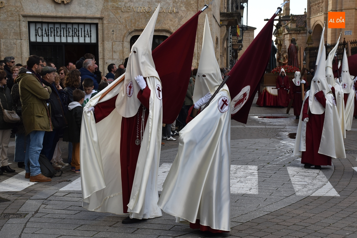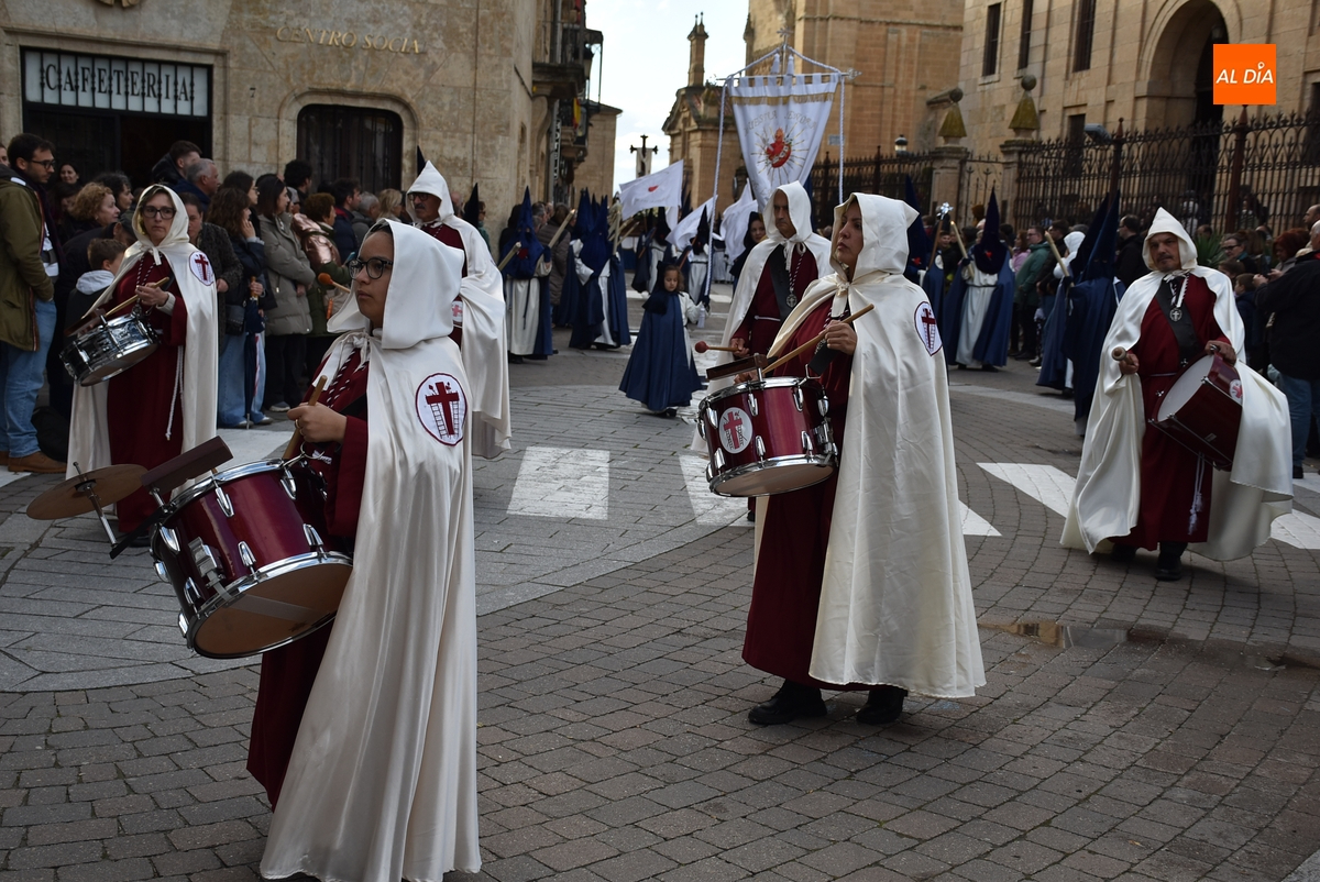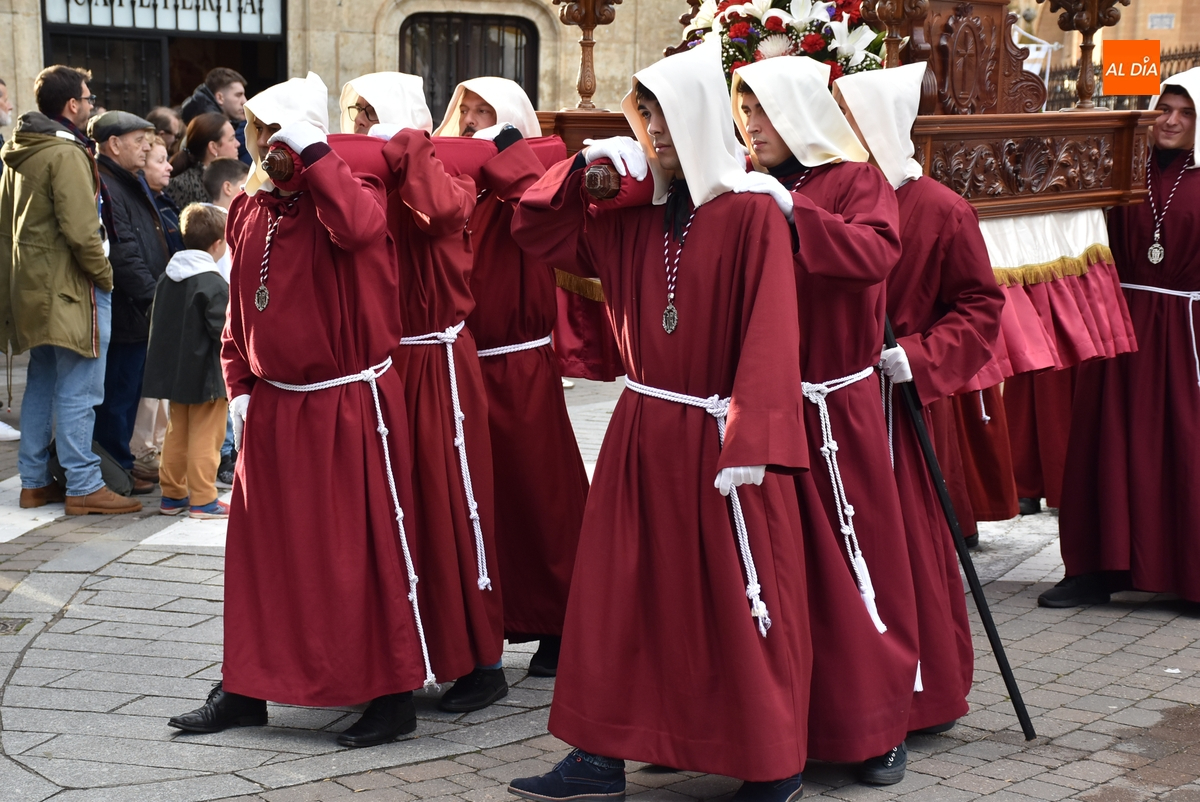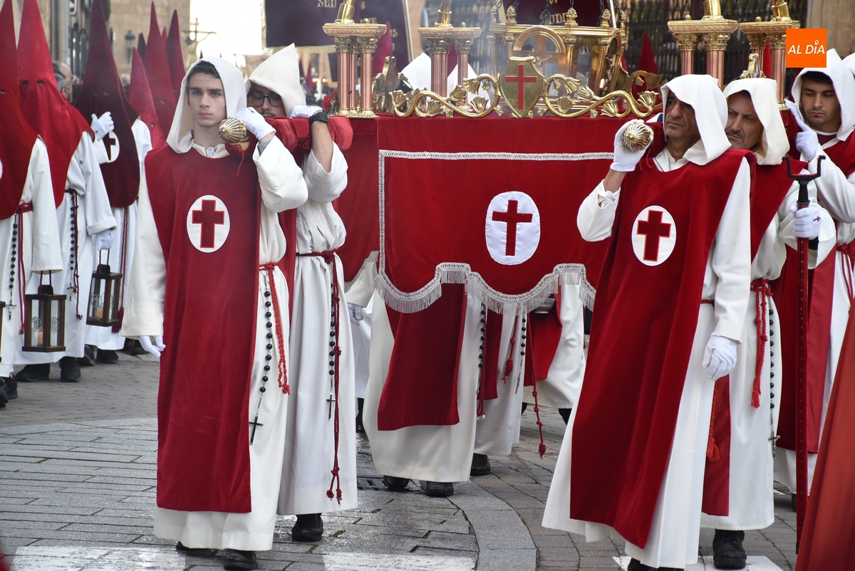 Toda la comitiva hizo conjunta el trayecto por Cardenal Pacheco, Plaza Mayor (que estuvo abarrotadísima), Rúa del Sol, Gigantes, Plaza de San Pedro y Plaza Cristóbal de Castillejo, por donde empezaron los ‘abandonos’, para ir regresando varias de las compañías a sus sedes. Así, El Silencio se quedó en San Pedro-San Isidoro, el Nazareno y parte de La Cruz en San Agustín, y La Borriquilla se desvió para bajar al Arrabal del Puente por la Puerta de Santiago.