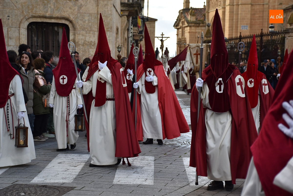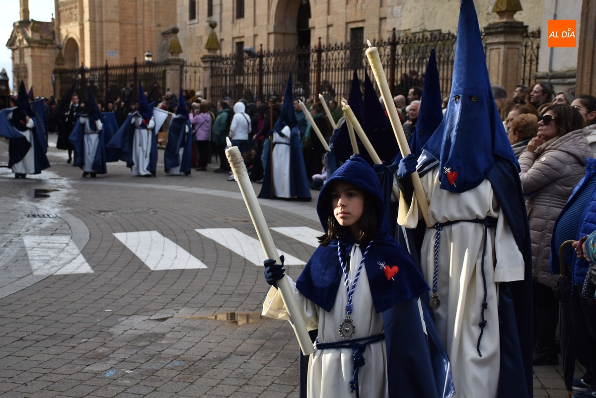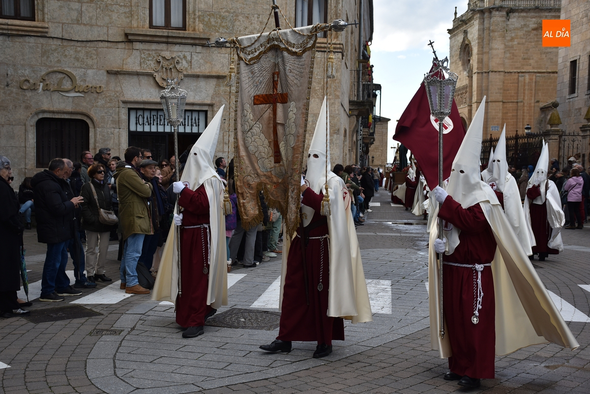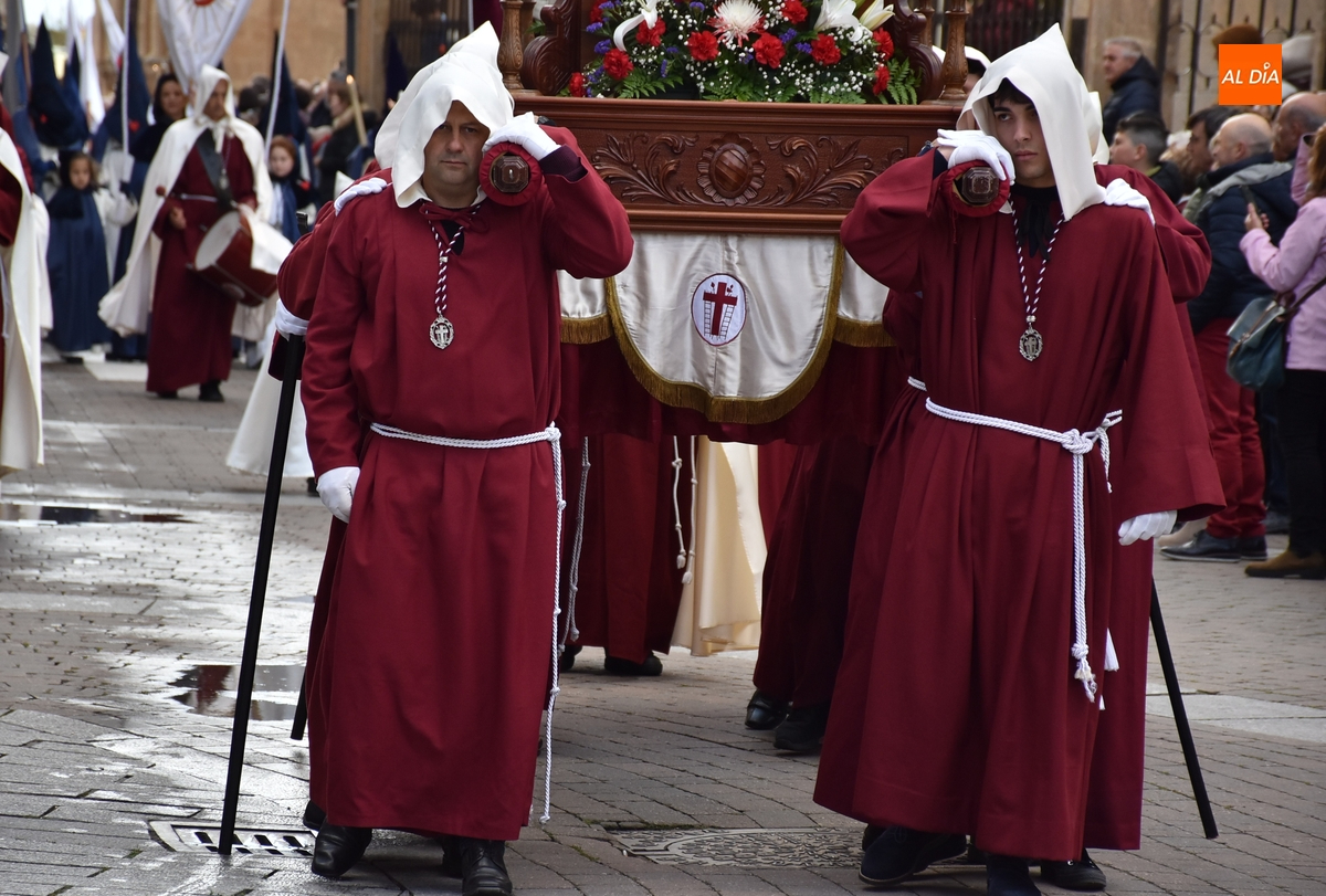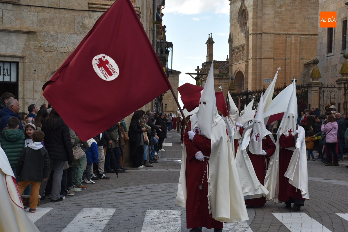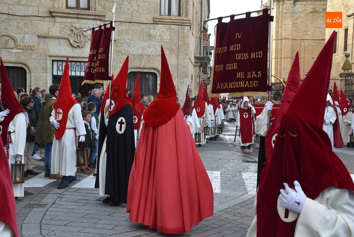 Toda la comitiva hizo conjunta el trayecto por Cardenal Pacheco, Plaza Mayor (que estuvo abarrotadísima), Rúa del Sol, Gigantes, Plaza de San Pedro y Plaza Cristóbal de Castillejo, por donde empezaron los ‘abandonos’, para ir regresando varias de las compañías a sus sedes. Así, El Silencio se quedó en San Pedro-San Isidoro, el Nazareno y parte de La Cruz en San Agustín, y La Borriquilla se desvió para bajar al Arrabal del Puente por la Puerta de Santiago.