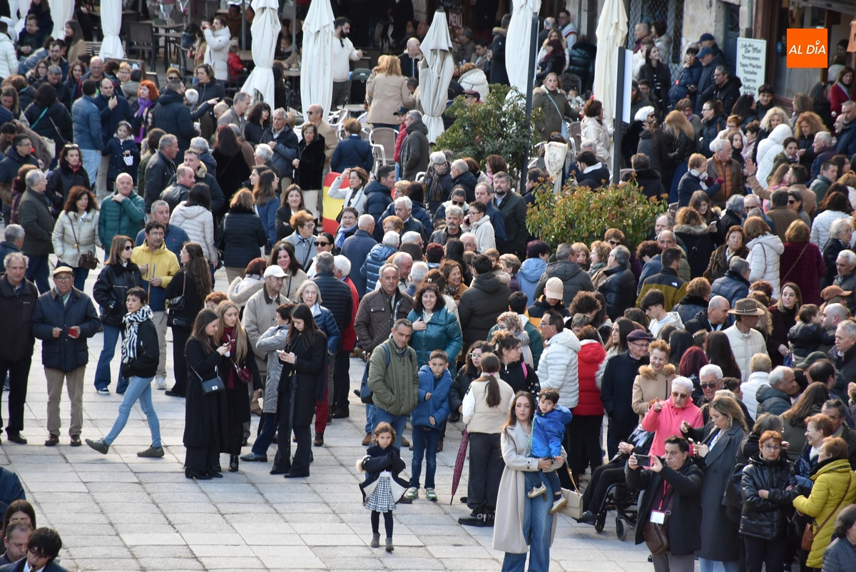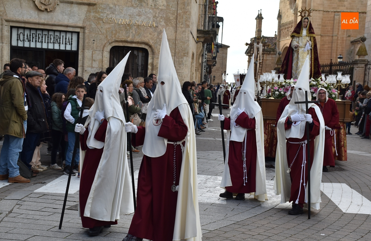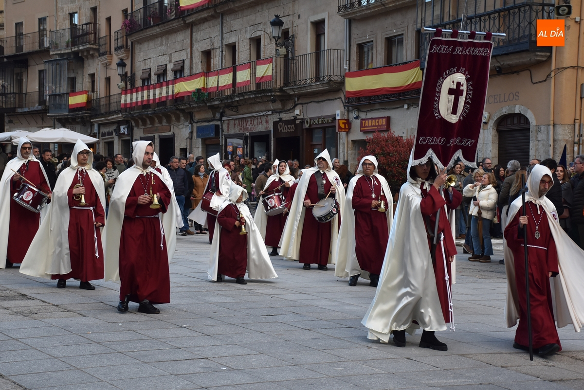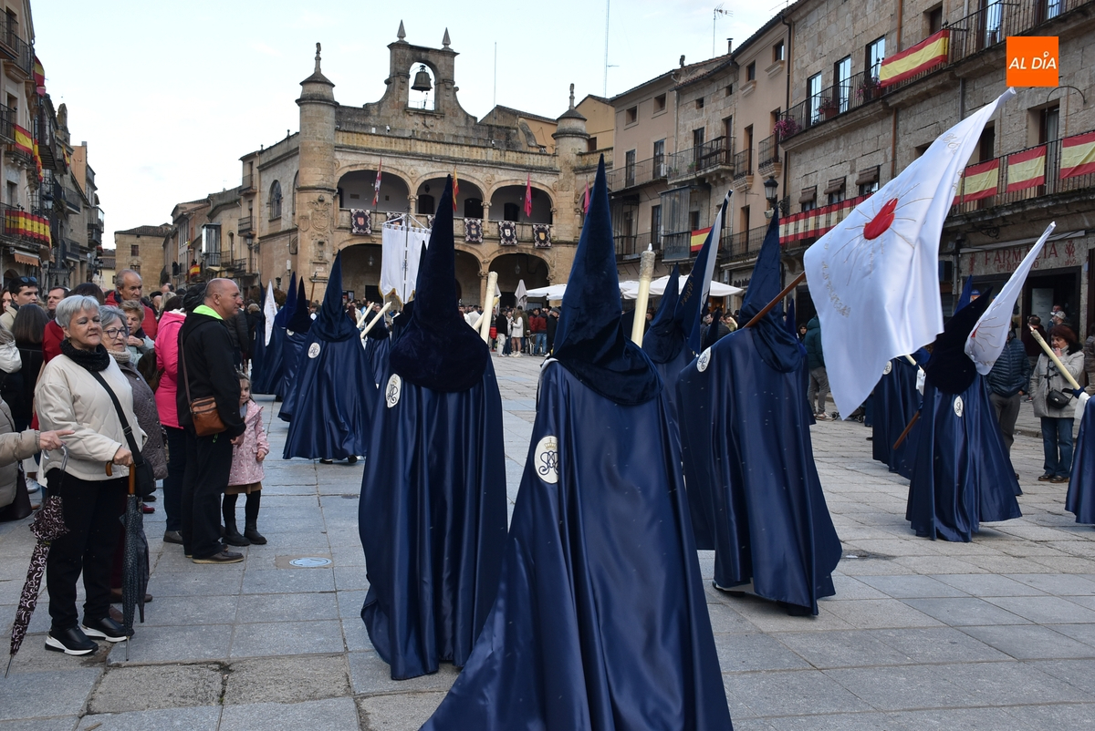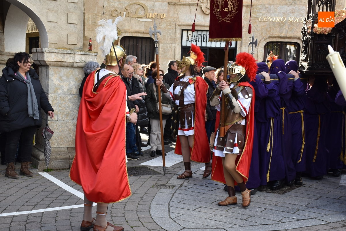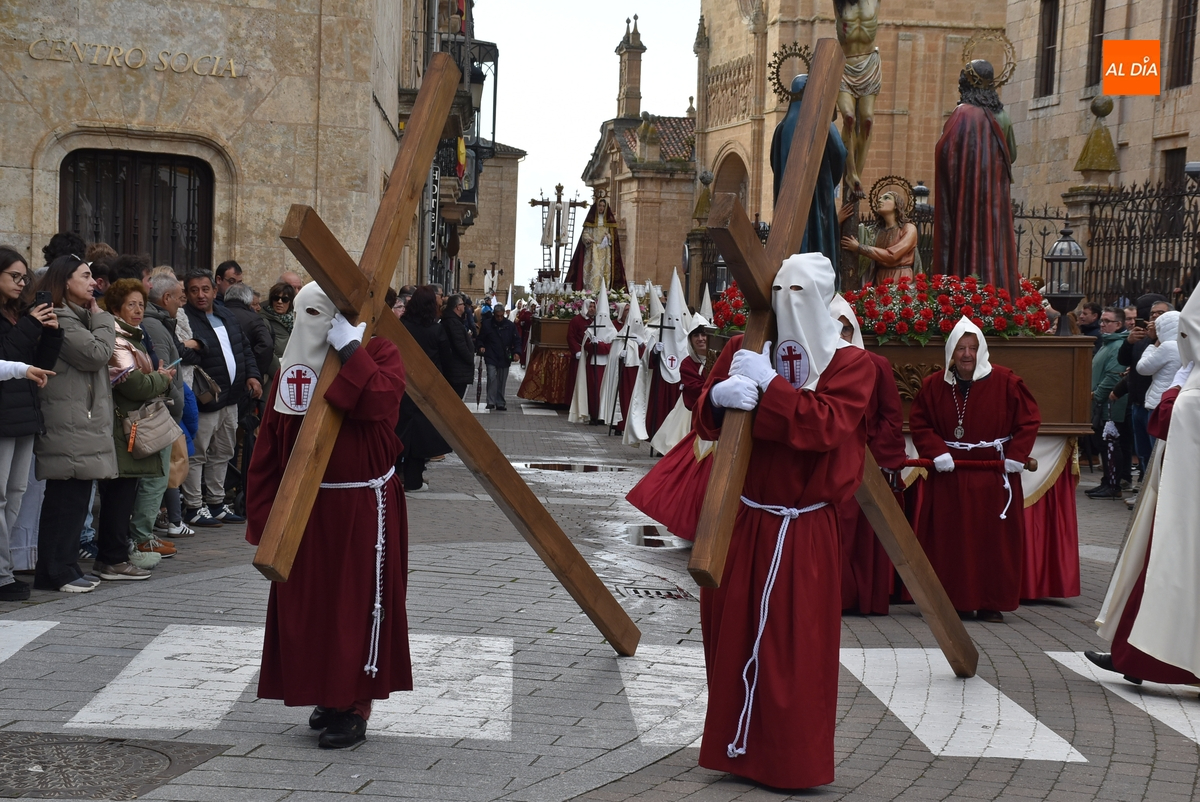 Toda la comitiva hizo conjunta el trayecto por Cardenal Pacheco, Plaza Mayor (que estuvo abarrotadísima), Rúa del Sol, Gigantes, Plaza de San Pedro y Plaza Cristóbal de Castillejo, por donde empezaron los ‘abandonos’, para ir regresando varias de las compañías a sus sedes. Así, El Silencio se quedó en San Pedro-San Isidoro, el Nazareno y parte de La Cruz en San Agustín, y La Borriquilla se desvió para bajar al Arrabal del Puente por la Puerta de Santiago.
