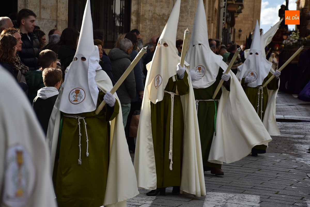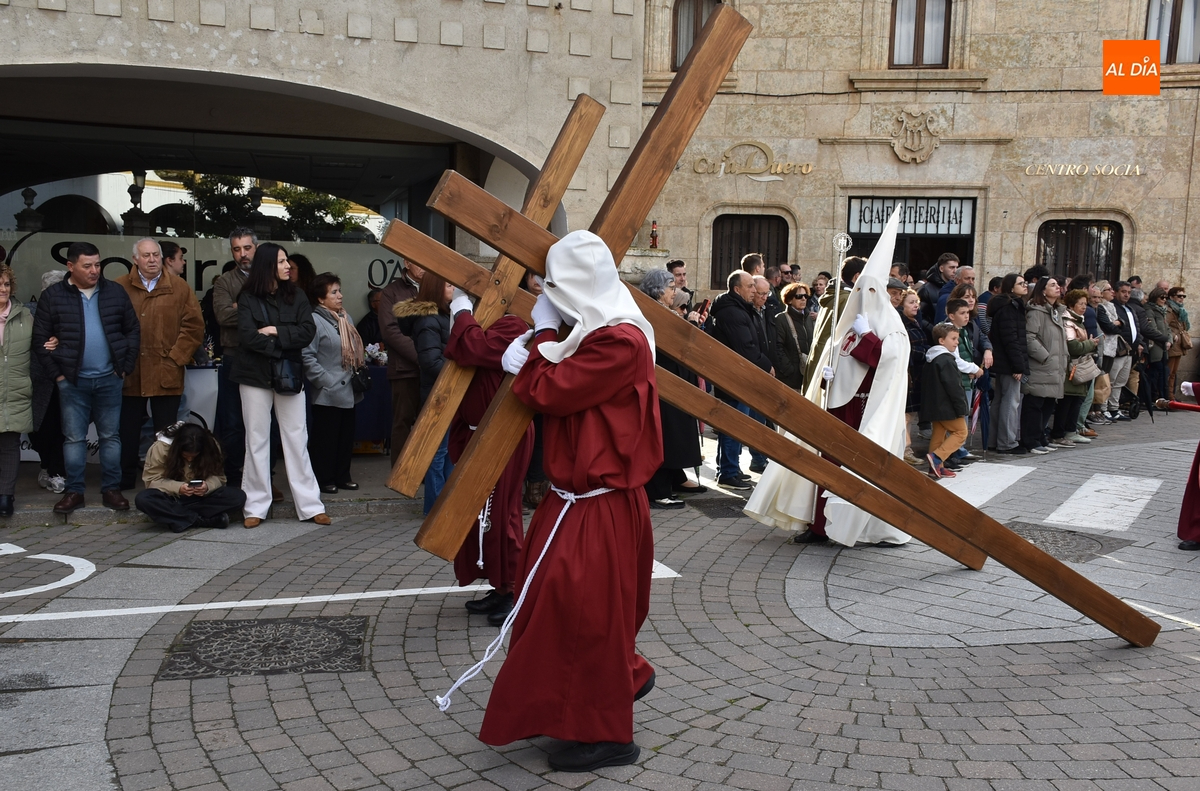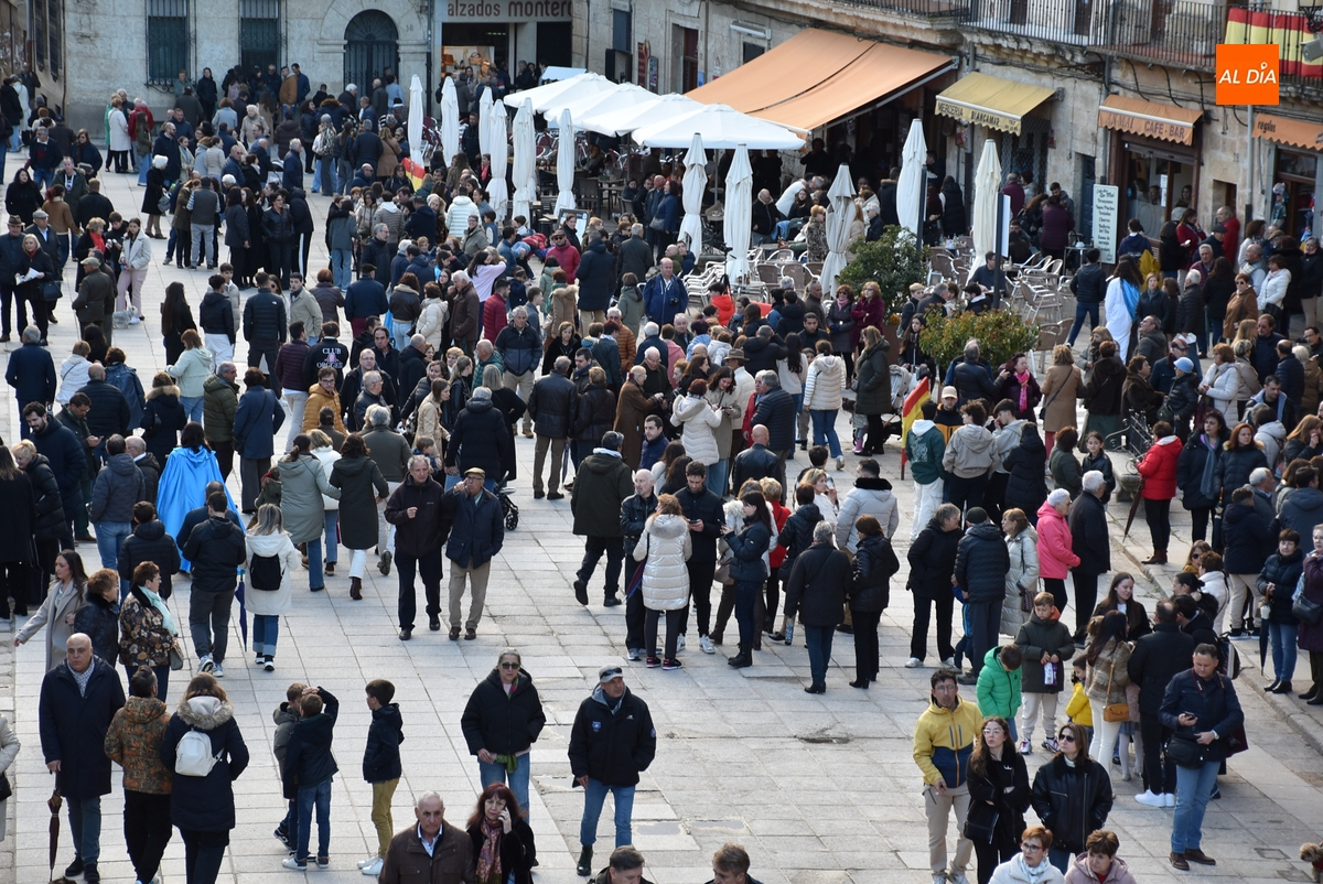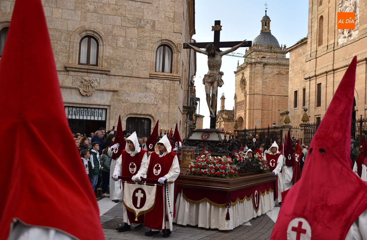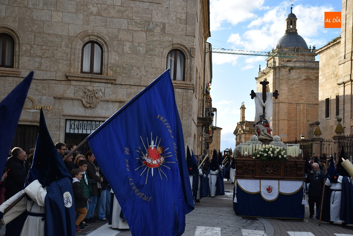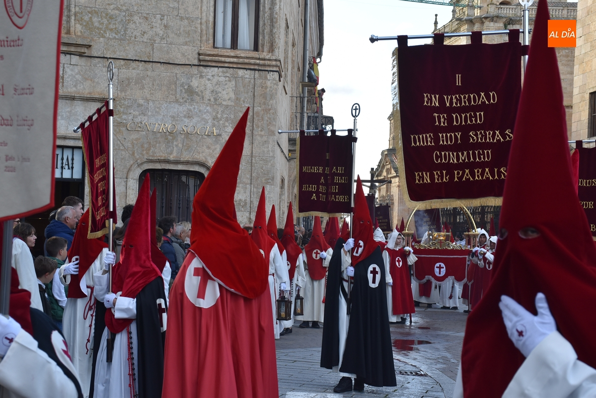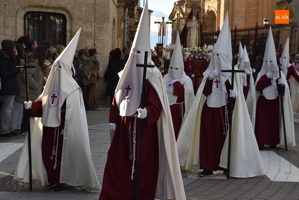 Toda la comitiva hizo conjunta el trayecto por Cardenal Pacheco, Plaza Mayor (que estuvo abarrotadísima), Rúa del Sol, Gigantes, Plaza de San Pedro y Plaza Cristóbal de Castillejo, por donde empezaron los ‘abandonos’, para ir regresando varias de las compañías a sus sedes. Así, El Silencio se quedó en San Pedro-San Isidoro, el Nazareno y parte de La Cruz en San Agustín, y La Borriquilla se desvió para bajar al Arrabal del Puente por la Puerta de Santiago.