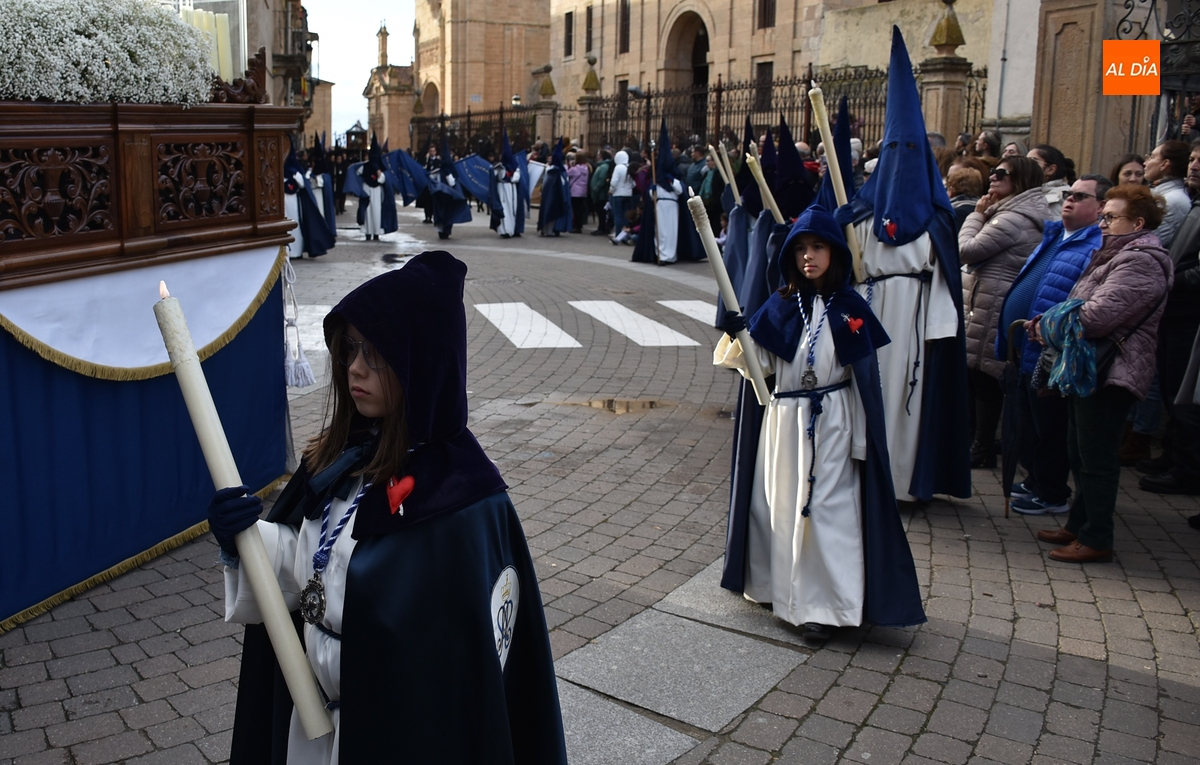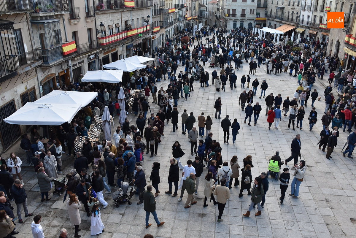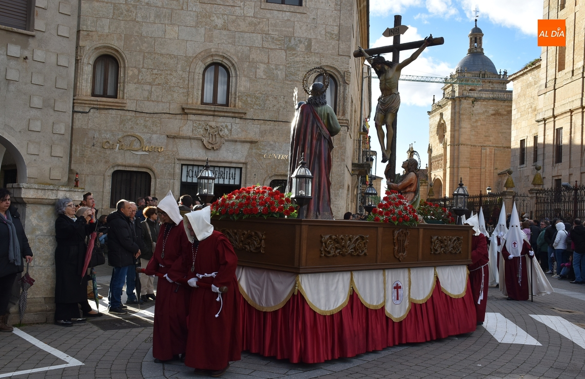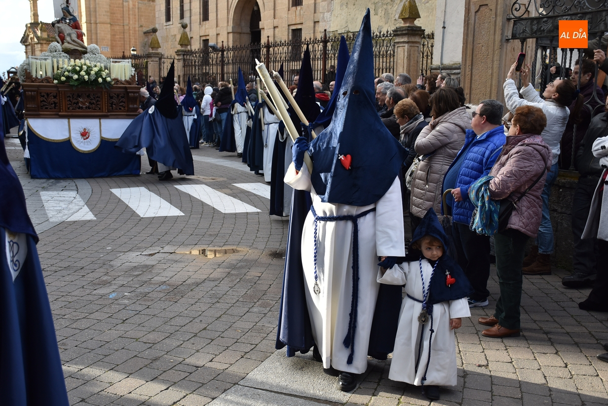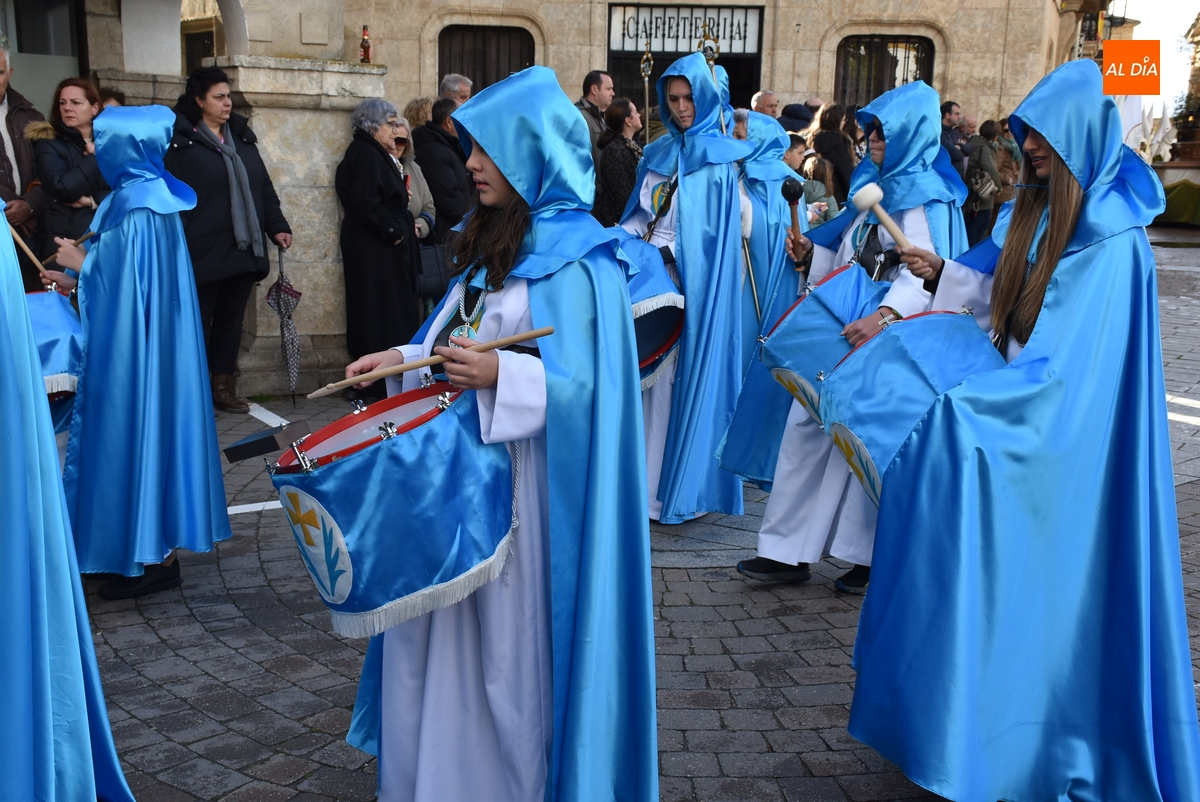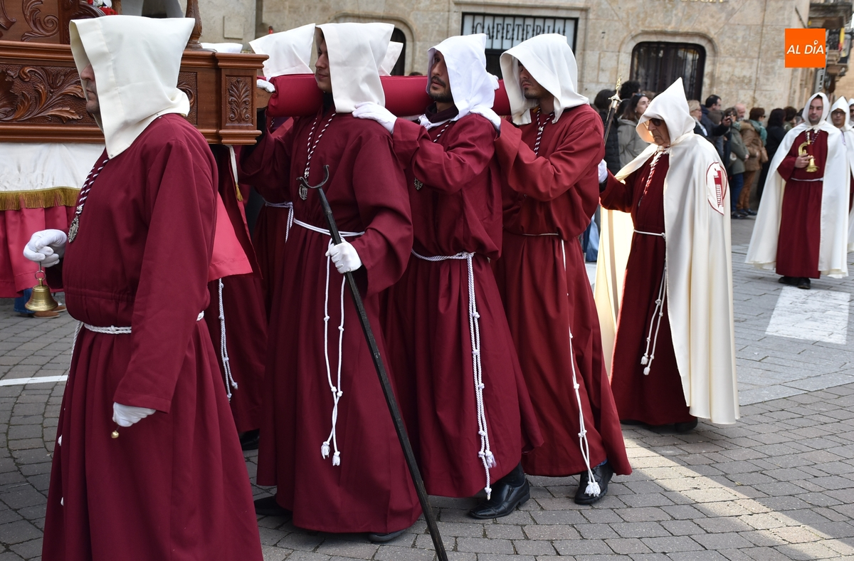 Toda la comitiva hizo conjunta el trayecto por Cardenal Pacheco, Plaza Mayor (que estuvo abarrotadísima), Rúa del Sol, Gigantes, Plaza de San Pedro y Plaza Cristóbal de Castillejo, por donde empezaron los ‘abandonos’, para ir regresando varias de las compañías a sus sedes. Así, El Silencio se quedó en San Pedro-San Isidoro, el Nazareno y parte de La Cruz en San Agustín, y La Borriquilla se desvió para bajar al Arrabal del Puente por la Puerta de Santiago.