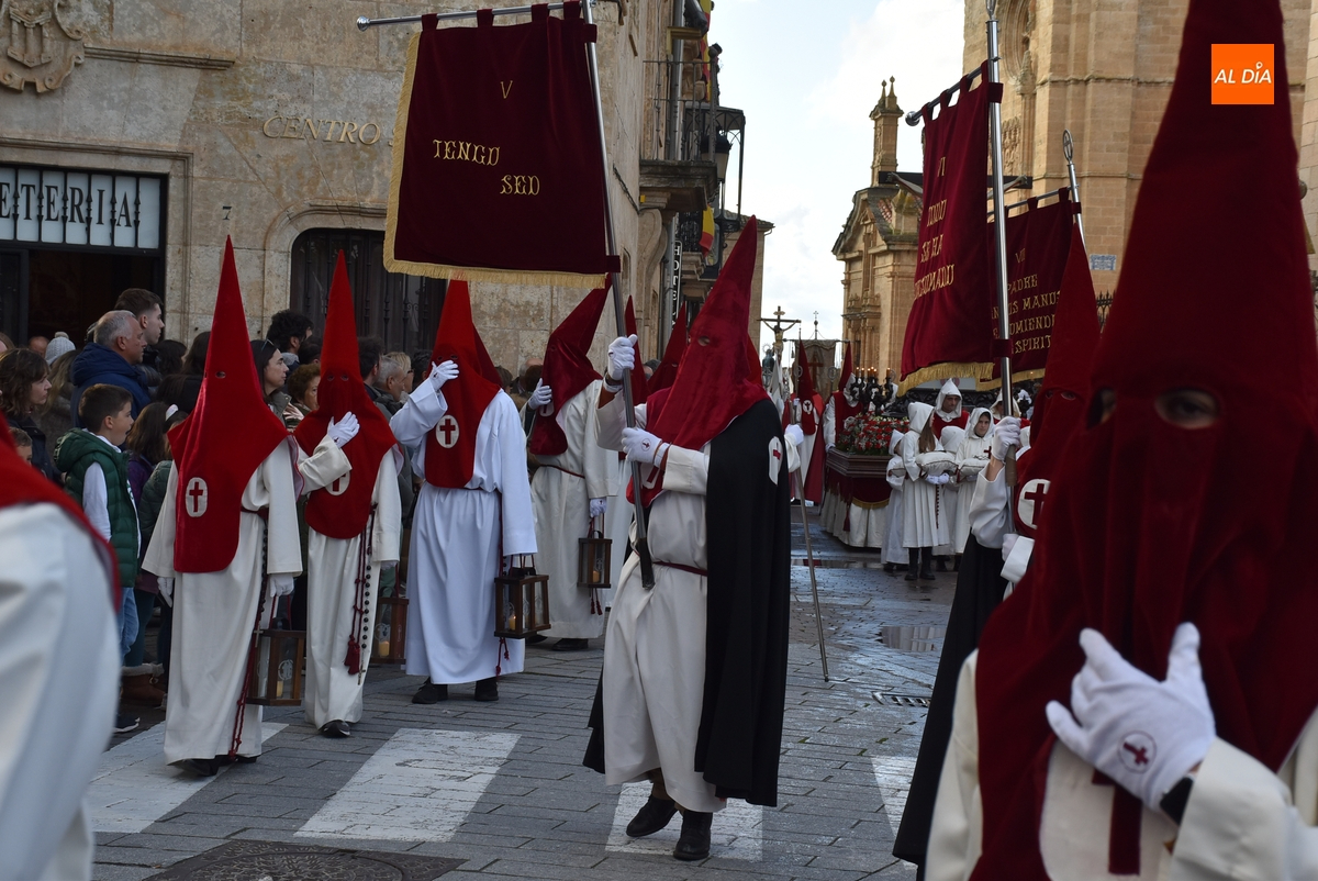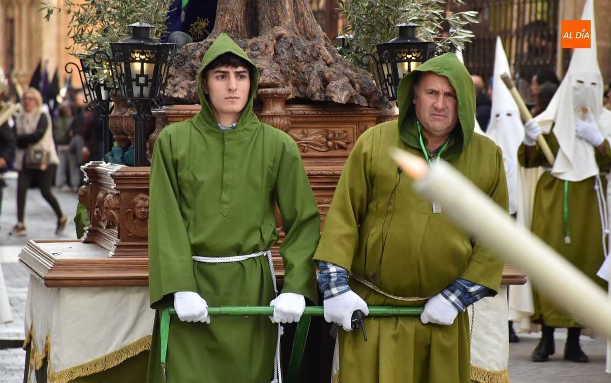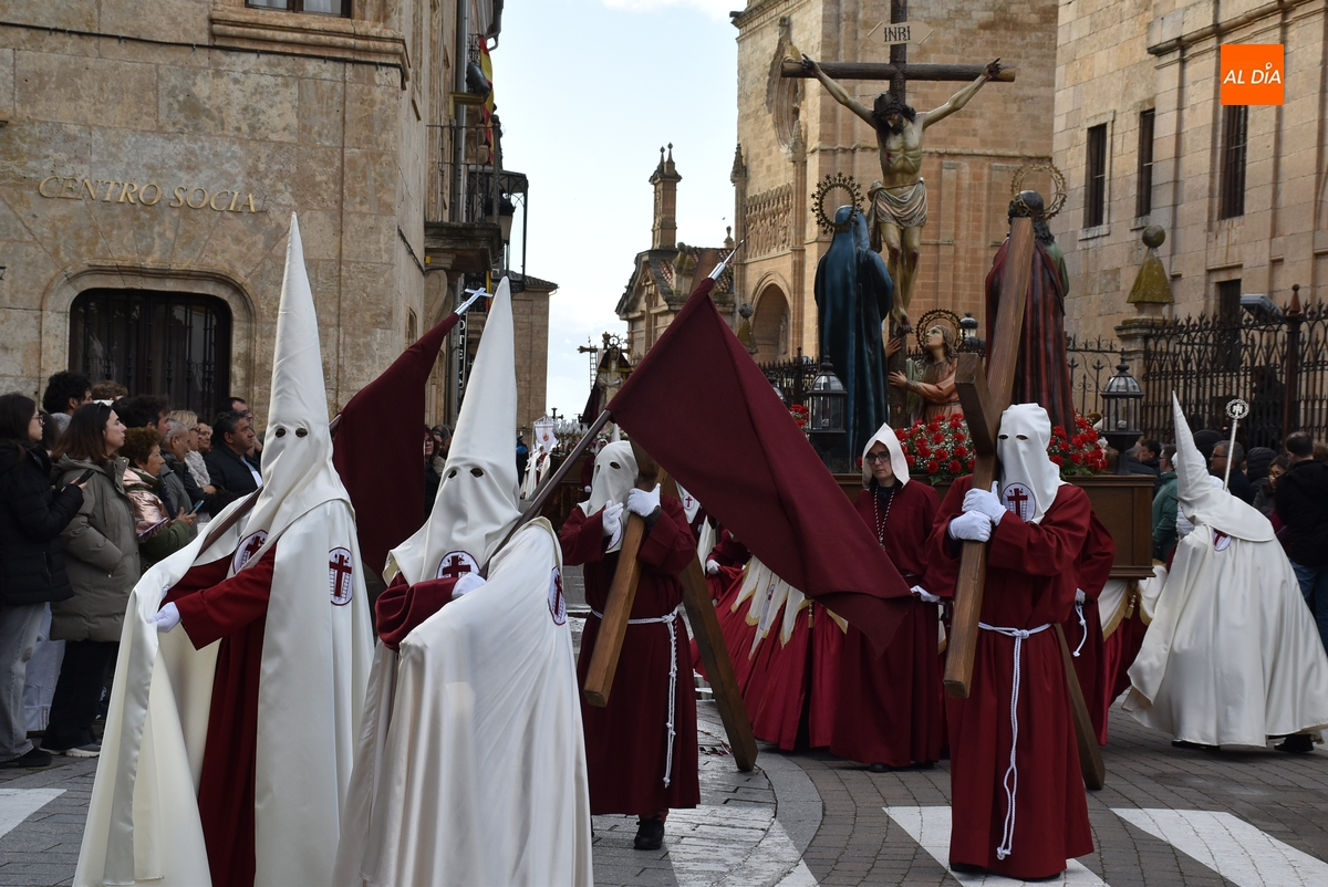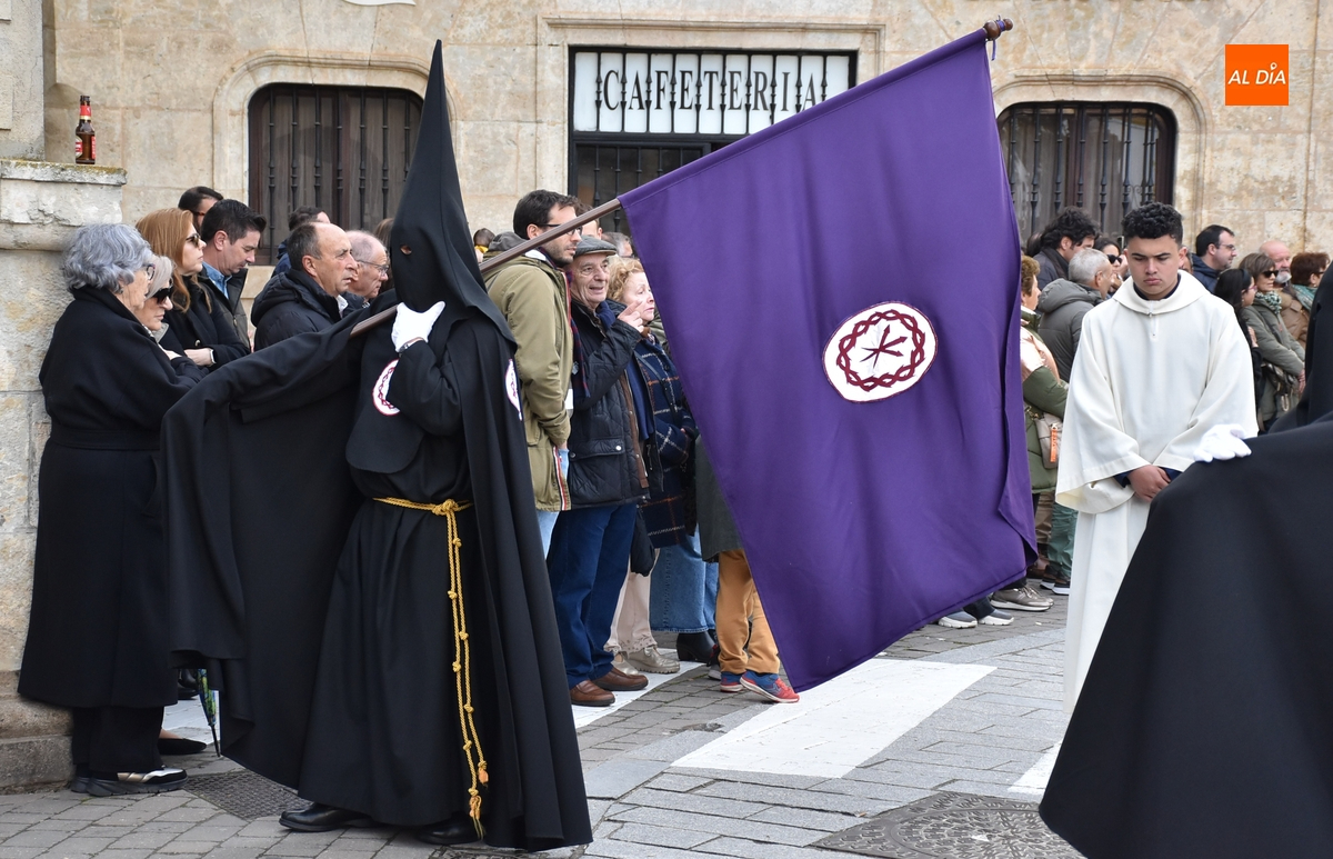 Por Colegios, Velayos y Sánchez Arjona retornaron a la Plaza Mayor –a intervalos, debido a esas ‘pérdidas’ por el camino- la Cofradía de La Oración del Huerto, que alcanzó la Iglesia de Cerralbo por Cardenal Pacheco; la Cofradía de Nuestra Señora de la Cruz, que llevó a la Catedral –con la compañía de su Banda de Cornetas y Tambores- el paso de Nuestra Señora de la Cruz; y la Cofradía de Nuestra Señora de las Angustias, que subió la Plaza para dirigirse a la Iglesia de la Venerable Orden Tercera.