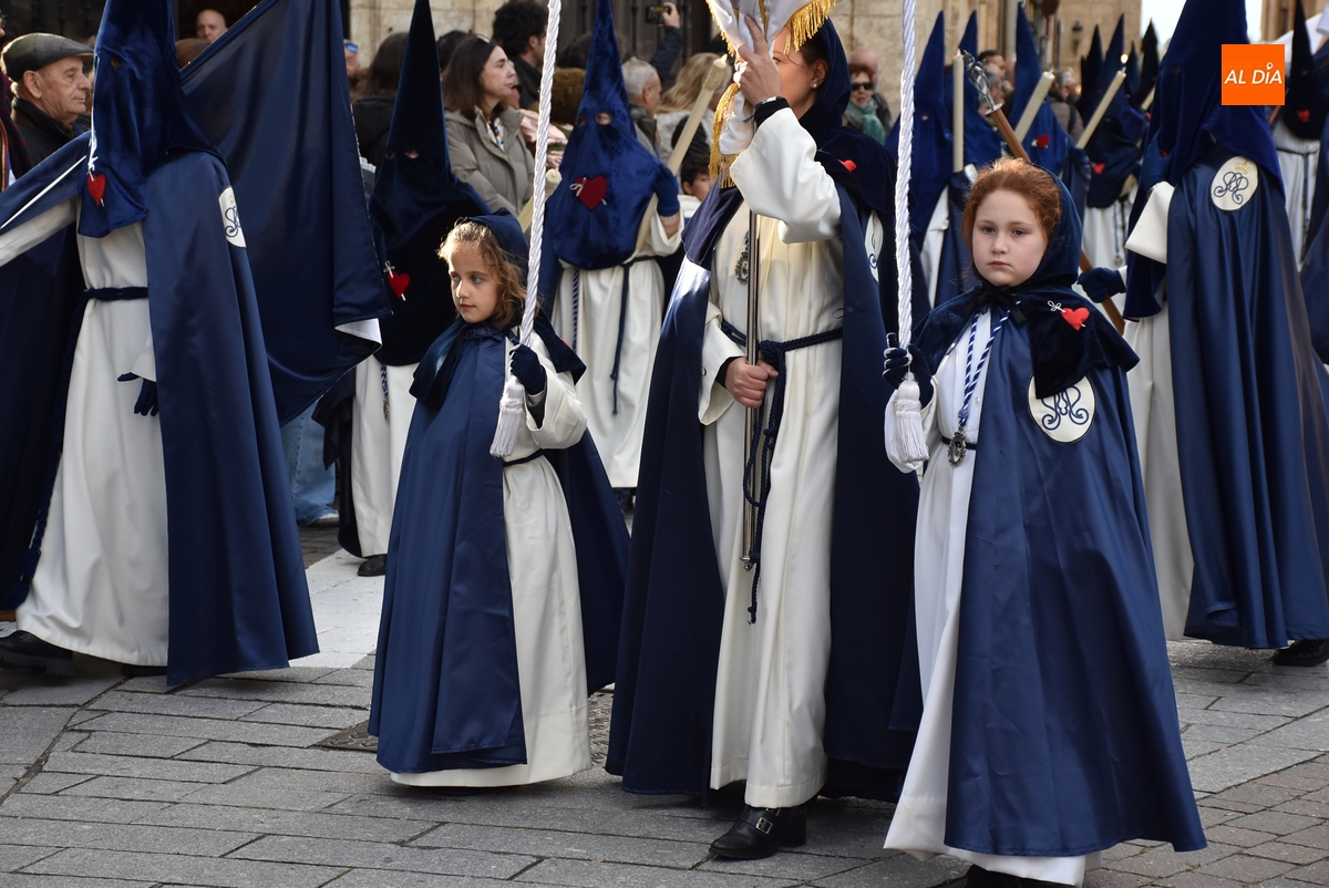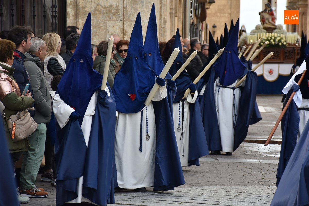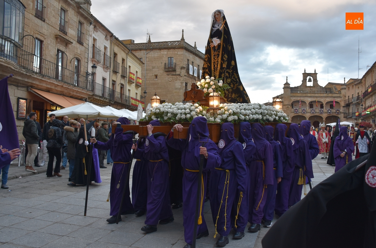 Por Colegios, Velayos y Sánchez Arjona retornaron a la Plaza Mayor –a intervalos, debido a esas ‘pérdidas’ por el camino- la Cofradía de La Oración del Huerto, que alcanzó la Iglesia de Cerralbo por Cardenal Pacheco; la Cofradía de Nuestra Señora de la Cruz, que llevó a la Catedral –con la compañía de su Banda de Cornetas y Tambores- el paso de Nuestra Señora de la Cruz; y la Cofradía de Nuestra Señora de las Angustias, que subió la Plaza para dirigirse a la Iglesia de la Venerable Orden Tercera.