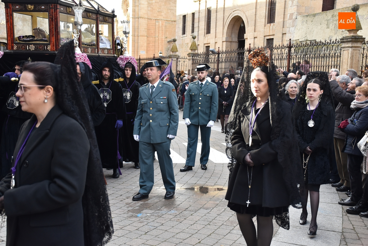 Después del Santo Sepulcro, marchó La Dolorosa de la Cofradía de Jesús Nazareno, junto a varios cofrades, y detrás suyo el Obispo José Luis Retana, el Vicario General de la Diócesis José María Rodríguez-Veleiro, y los canónigos Ángel Martín Carballo, Vidal Rodríguez Encinas y Bernardino San Nicasio, junto a un monaguillo.