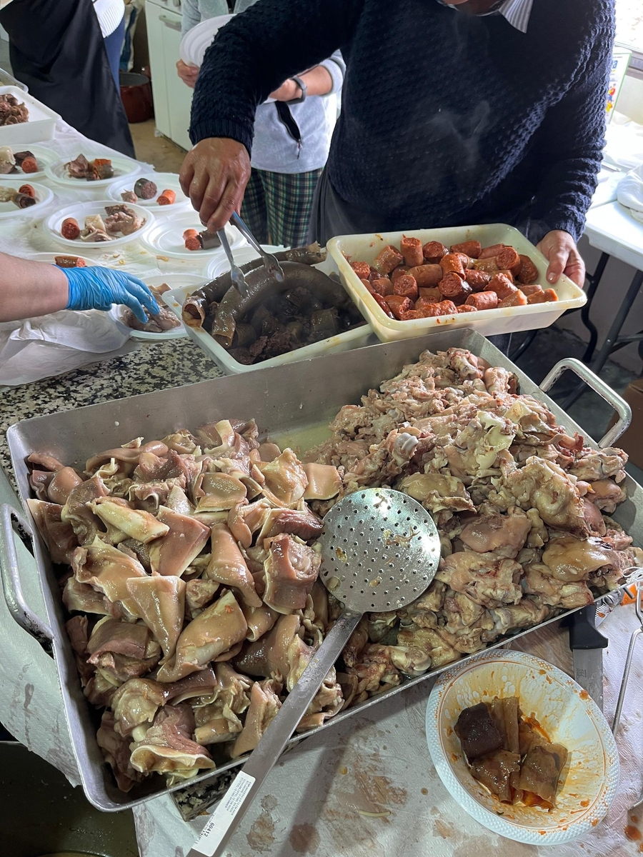 Gejo de los Reyes celebró este fin de semana una nueva edición de su ya tradicional comida mensual, una iniciativa que fomenta la convivencia vecinal en torno a los sabores más auténticos de la tierra. En esta ocasión, los protagonistas fueron los productos de la matanza popular celebrada meses atrás, que sirvieron de base para un sabroso cocido con todos sus complementos, pies, orejas, relleno, morcilla, chorizo, etc., y de lo que dieron cuenta 110 comensales.