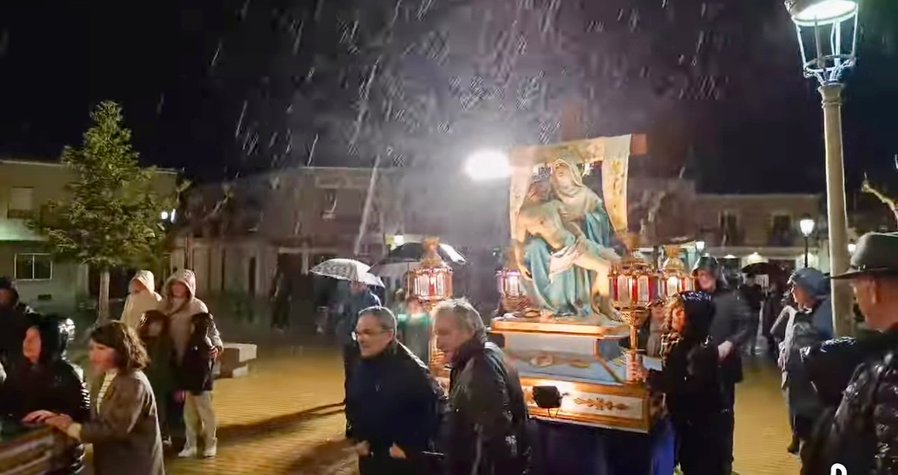 La lluvia y la fe protagonizan la procesión del Santo Entierro de Macotera
