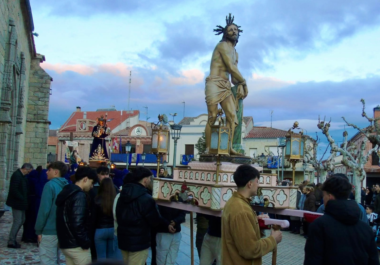 Numerosos vecinos se agolpaban a las puertas de la iglesia parroquial Nuestra Señora del Castillo para participar en la salida de los diferentes pasos, todos ellos preparados para vivir el tradicional desfile, que finalmente tenía que ser acortado su recorrido debido a las intensas lluvias vividas y que arrancaban en plena procesión.