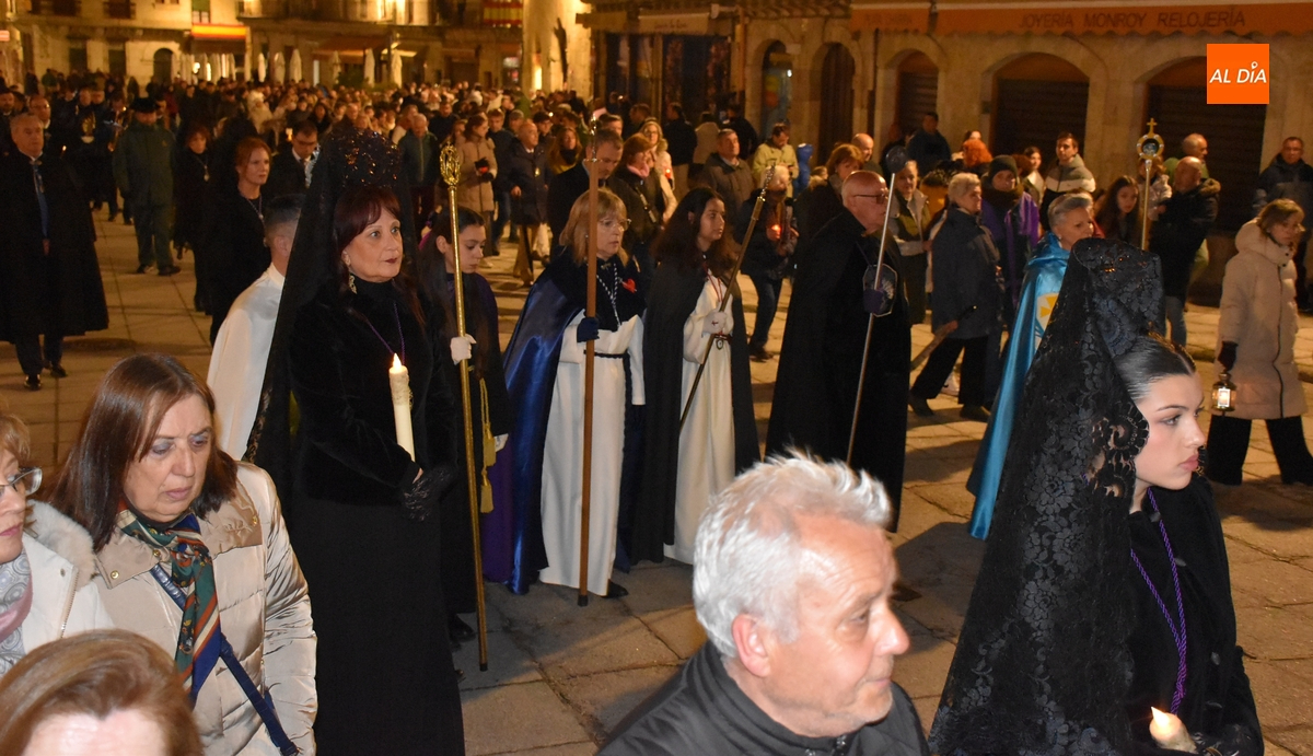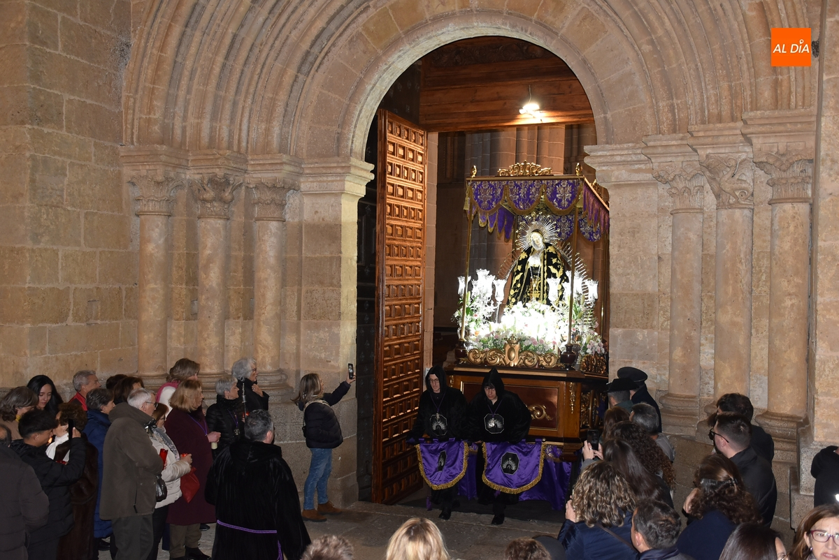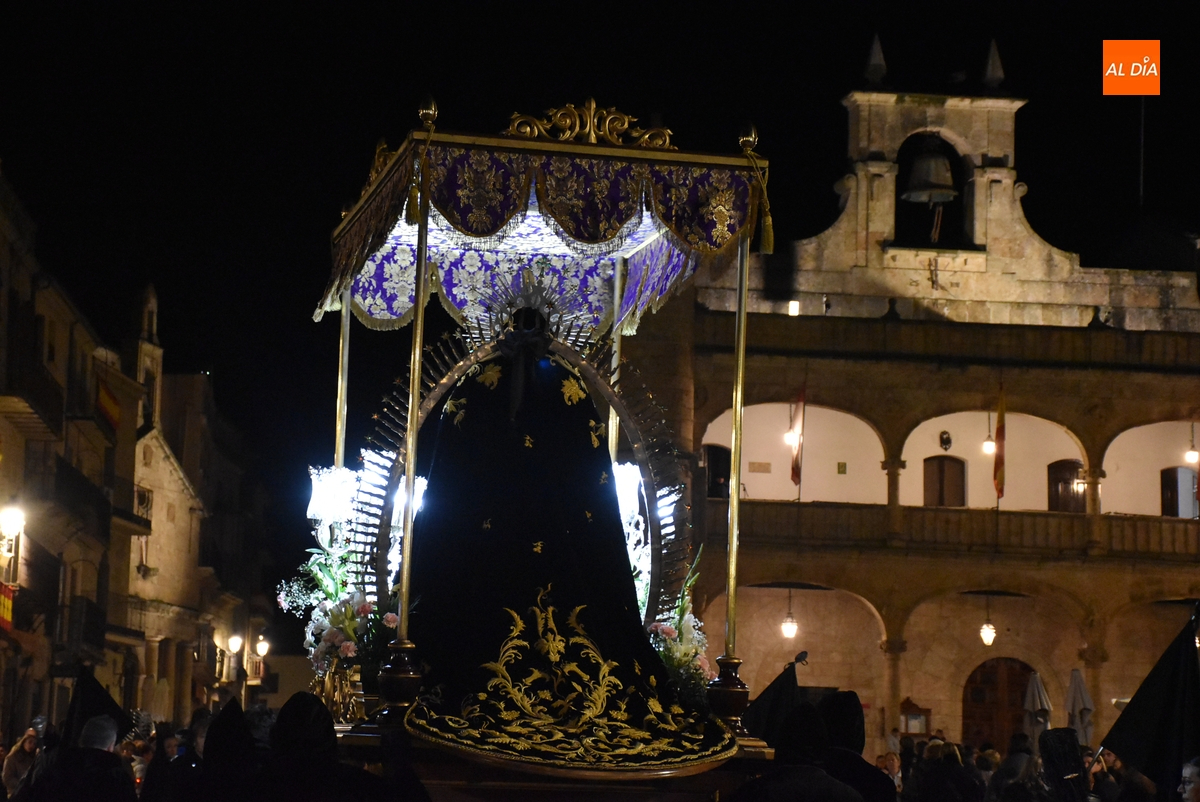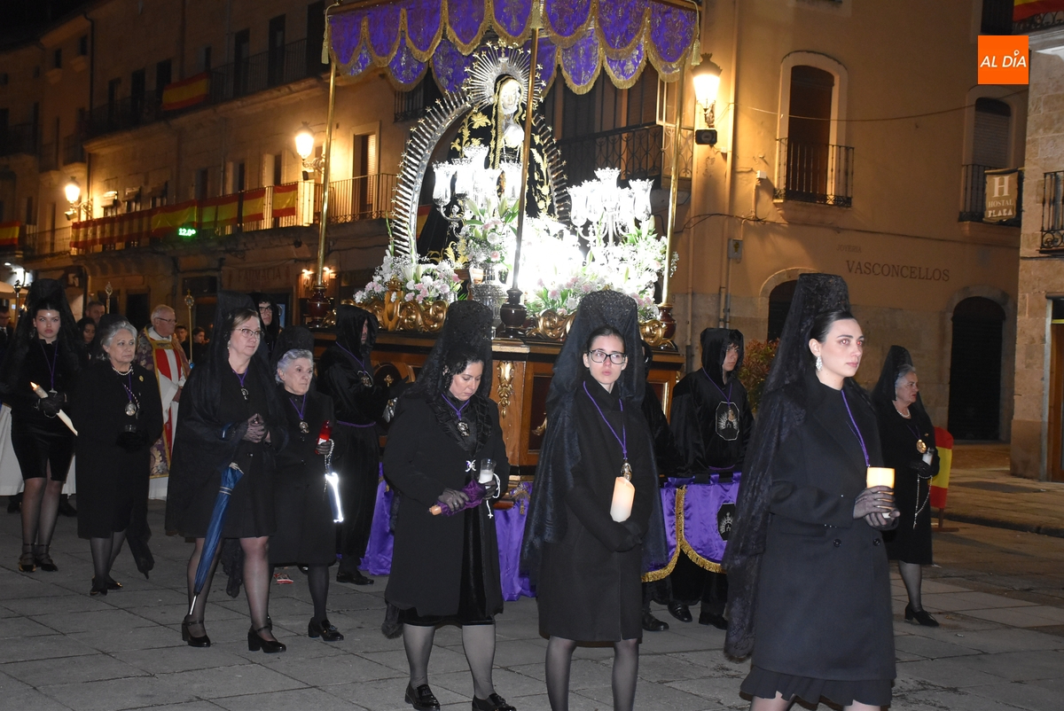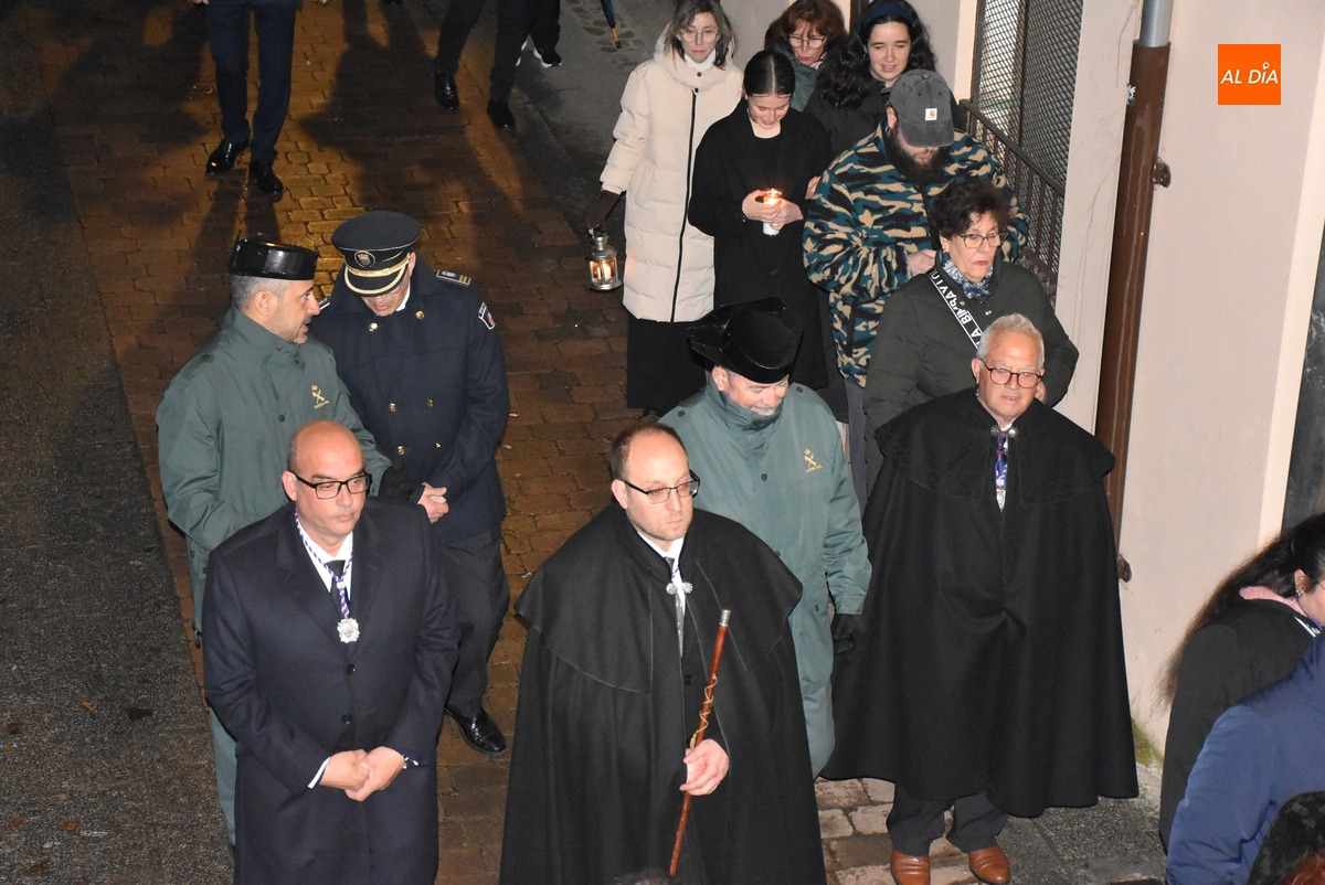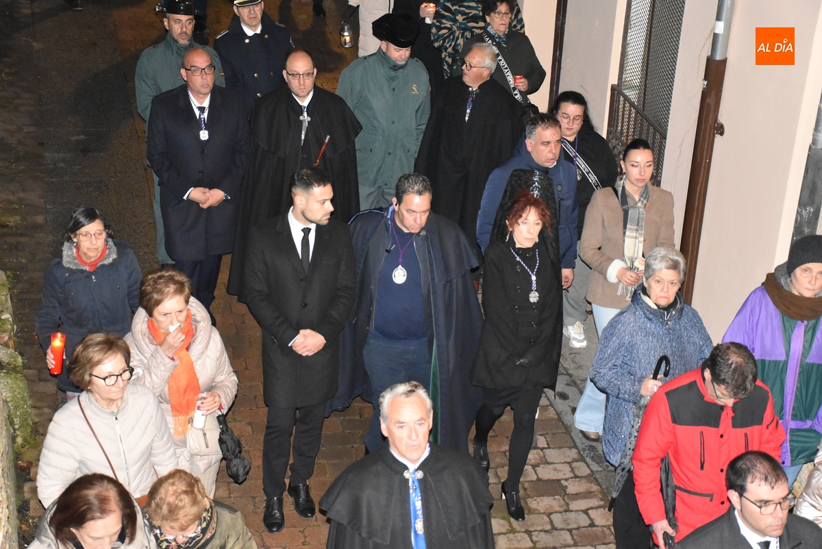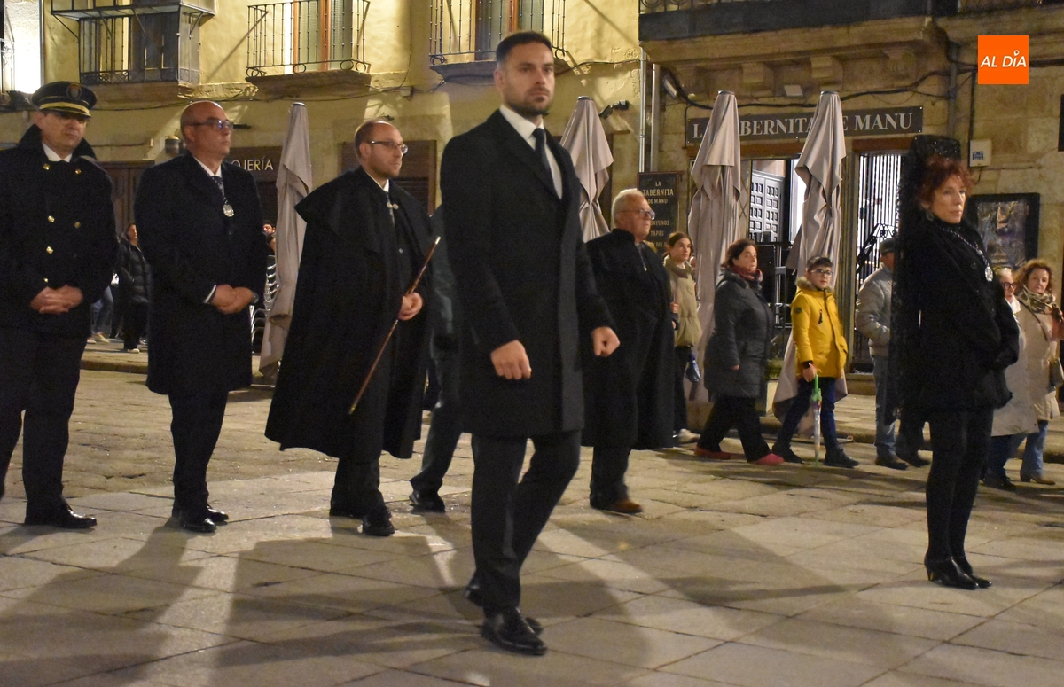 Detrás de la Virgen procesionó el capellán de La Soledad, Ángel Martín Carballo, junto al presidente de la Cofradía, Tomás Domínguez Cid, y un monaguillo; y tras ellos, representantes de las restantes cofradías de la Semana Santa Mirobrigense (excepto La Cruz), la Corporación Municipal, el Capitán de la Guardia Civil en Ciudad Rodrigo, Pablo Javier Ruiz Gatell de Gordejuela; y el Jefe de la Policía Local, Narciso Caridad. La Banda Municipal de Música cerró la comitiva, aunque en algunos momentos tras los músicos también marcharon cofrades.
