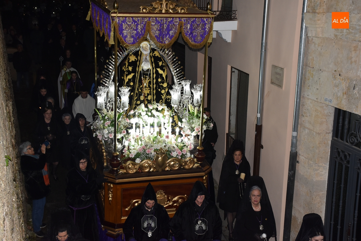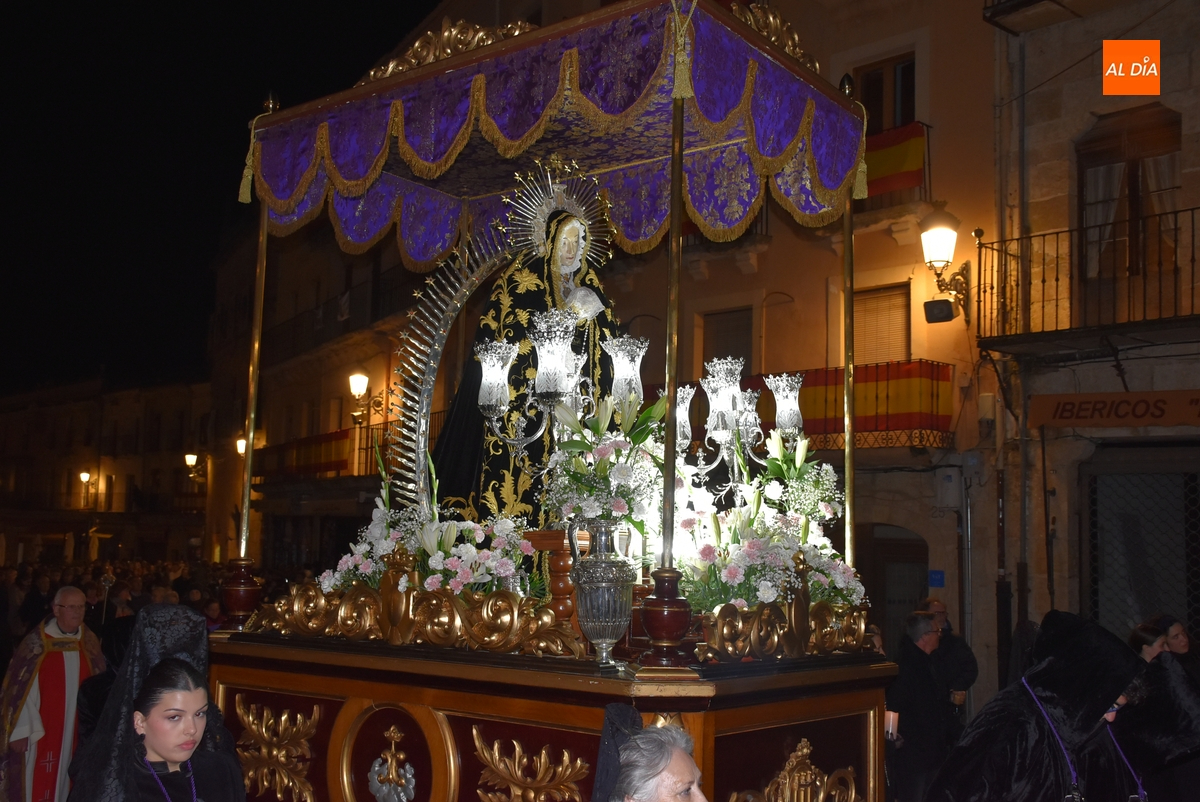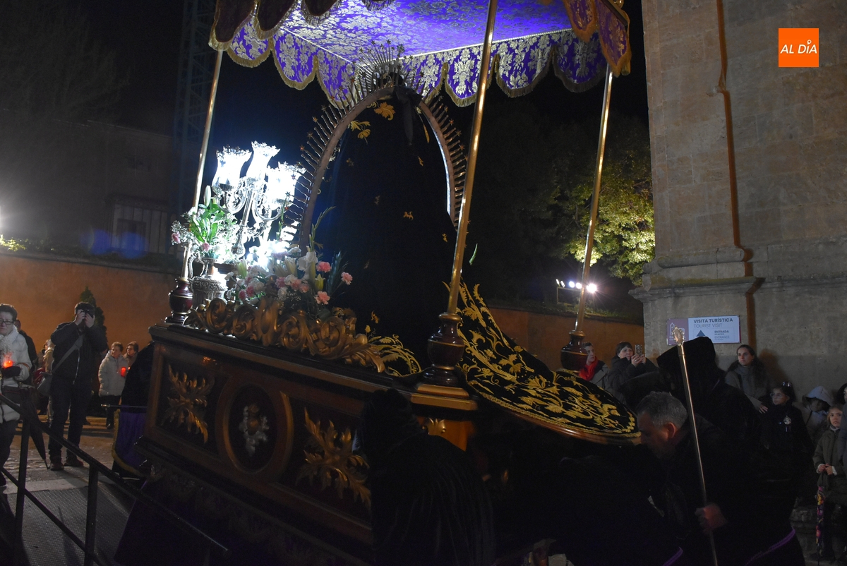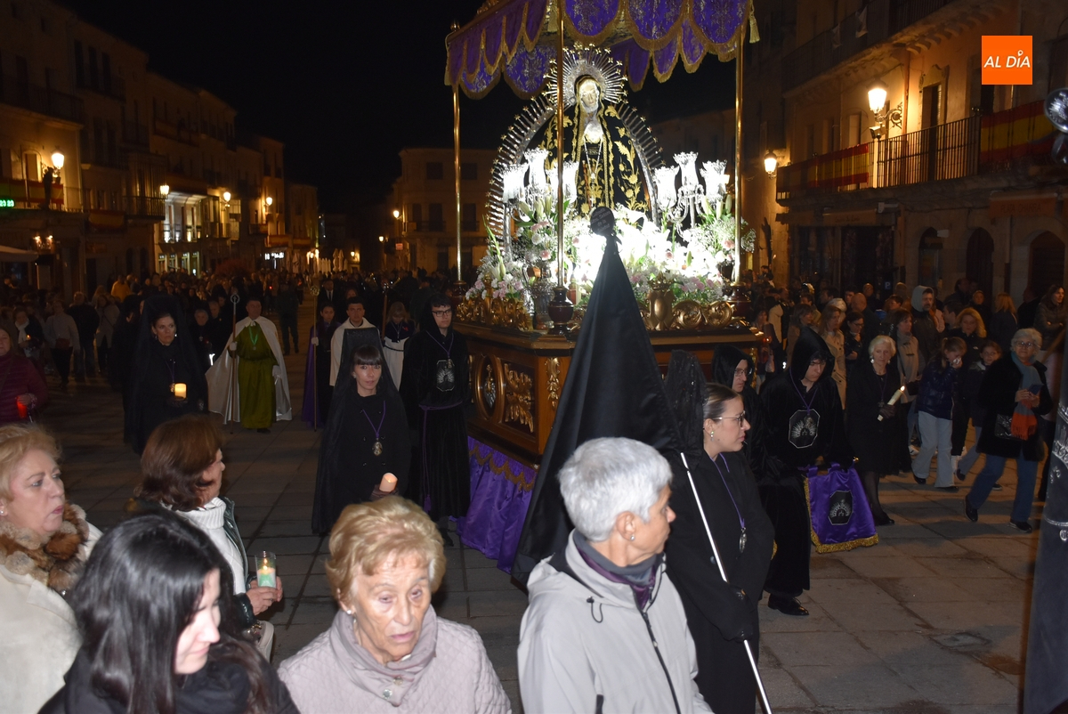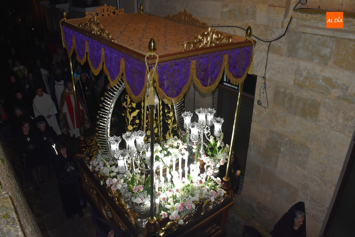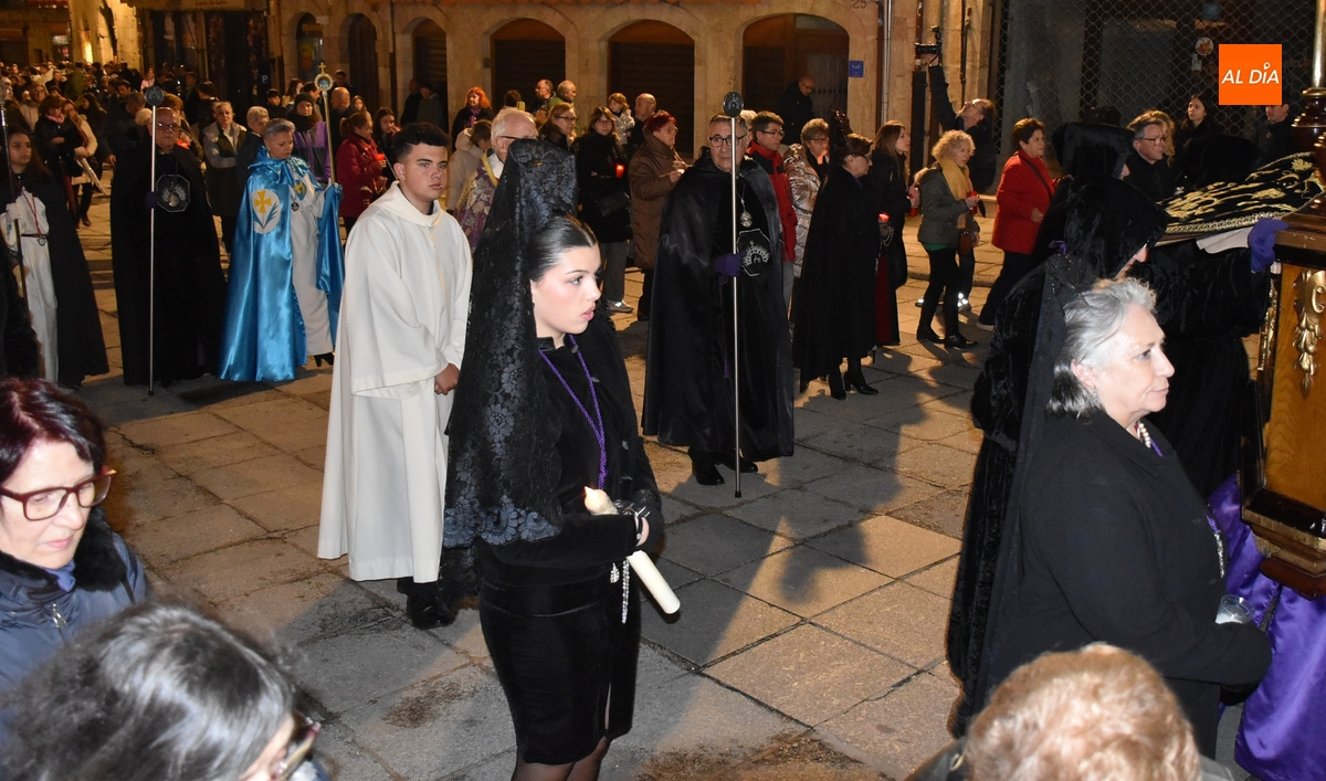 Detrás de la Virgen procesionó el capellán de La Soledad, Ángel Martín Carballo, junto al presidente de la Cofradía, Tomás Domínguez Cid, y un monaguillo; y tras ellos, representantes de las restantes cofradías de la Semana Santa Mirobrigense (excepto La Cruz), la Corporación Municipal, el Capitán de la Guardia Civil en Ciudad Rodrigo, Pablo Javier Ruiz Gatell de Gordejuela; y el Jefe de la Policía Local, Narciso Caridad. La Banda Municipal de Música cerró la comitiva, aunque en algunos momentos tras los músicos también marcharon cofrades.