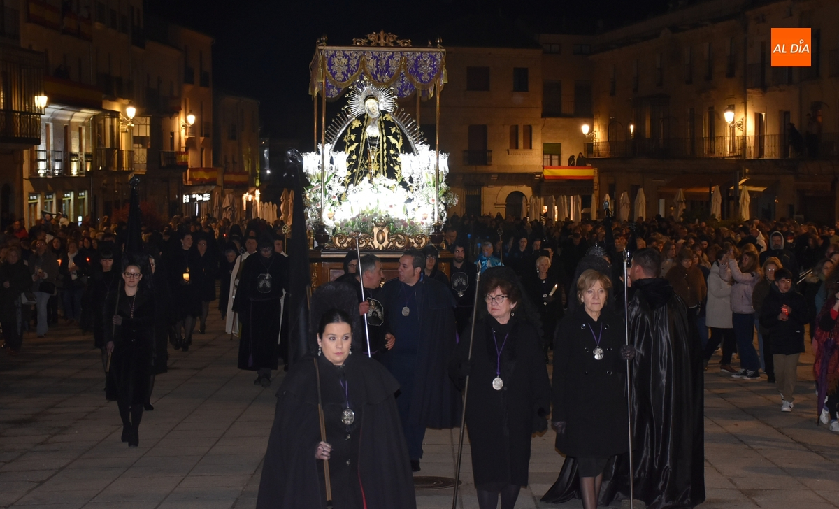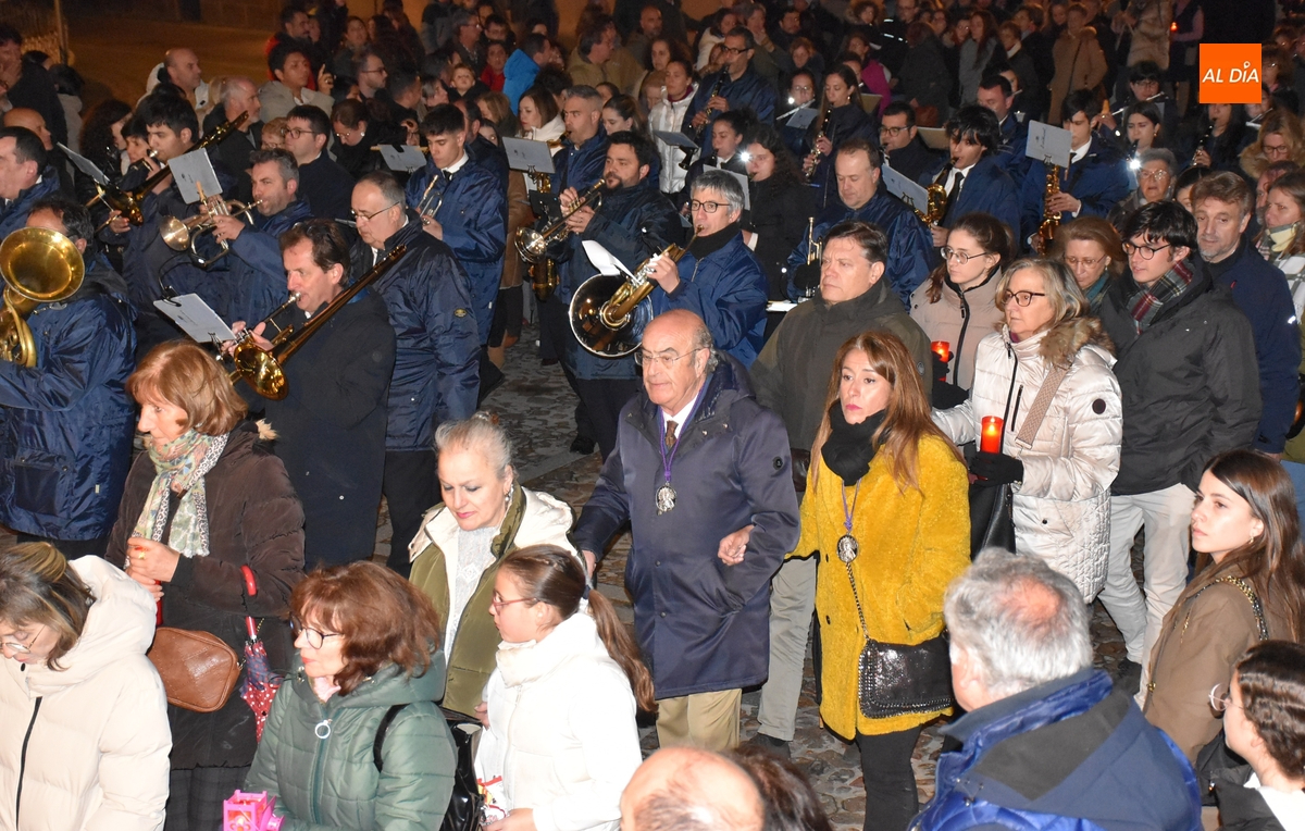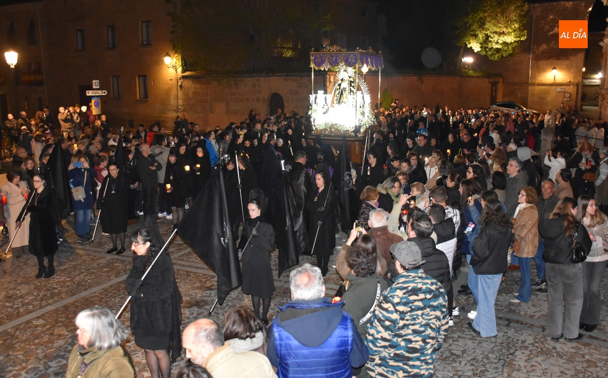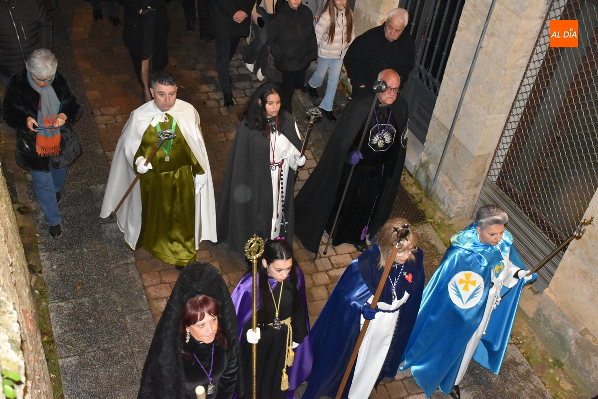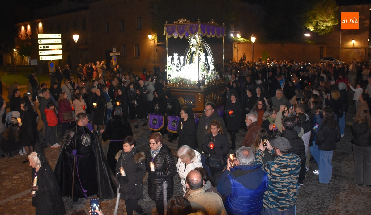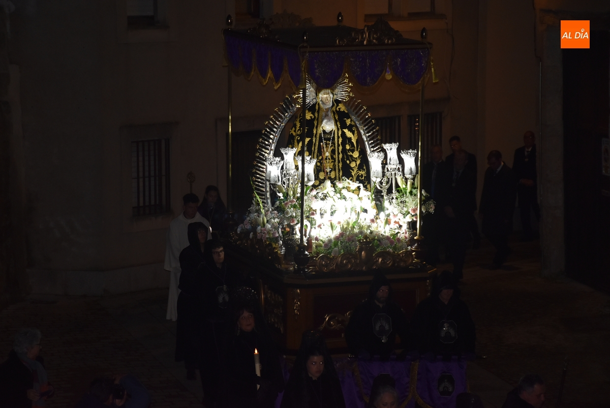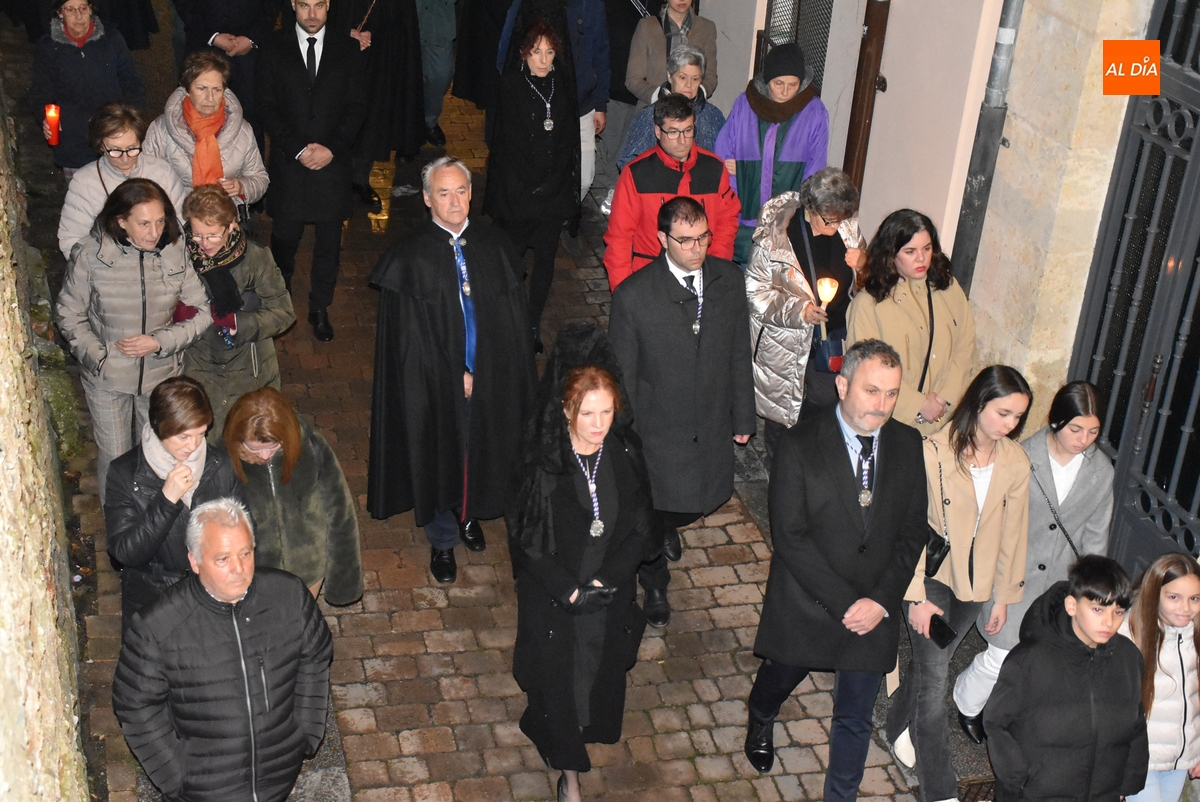 Detrás de la Virgen procesionó el capellán de La Soledad, Ángel Martín Carballo, junto al presidente de la Cofradía, Tomás Domínguez Cid, y un monaguillo; y tras ellos, representantes de las restantes cofradías de la Semana Santa Mirobrigense (excepto La Cruz), la Corporación Municipal, el Capitán de la Guardia Civil en Ciudad Rodrigo, Pablo Javier Ruiz Gatell de Gordejuela; y el Jefe de la Policía Local, Narciso Caridad. La Banda Municipal de Música cerró la comitiva, aunque en algunos momentos tras los músicos también marcharon cofrades.