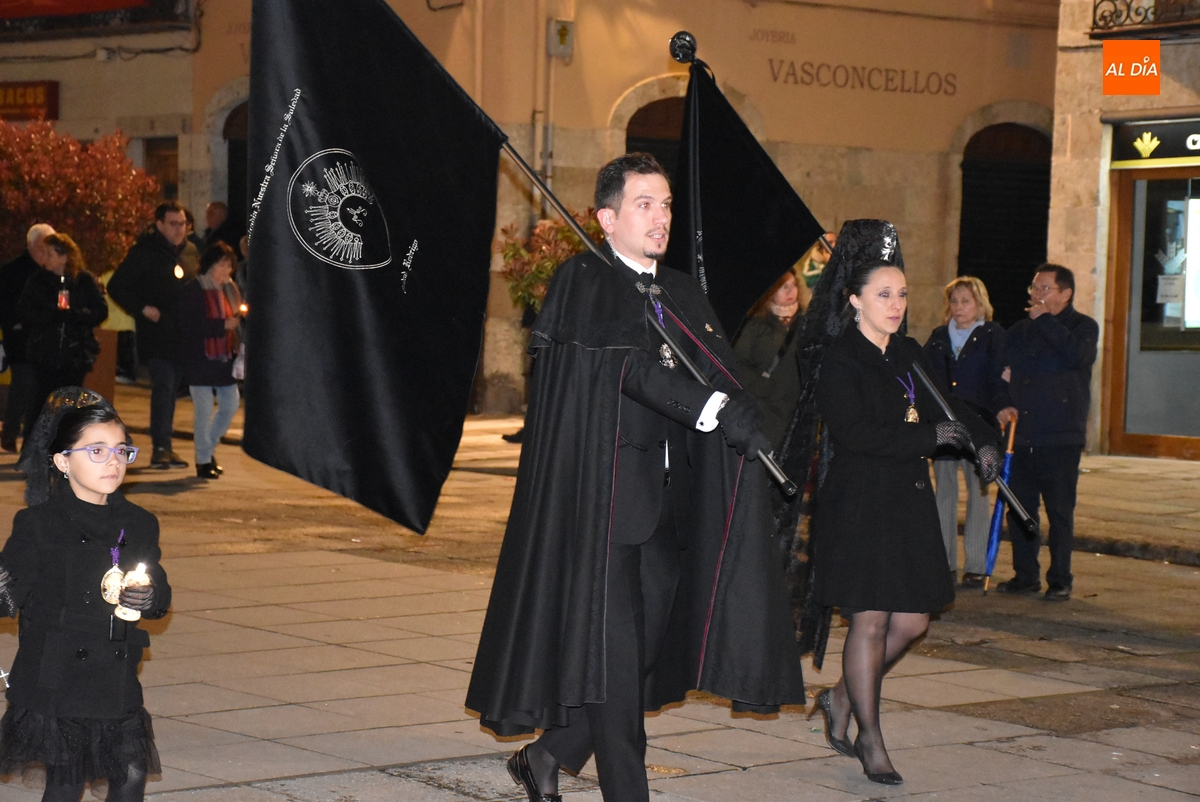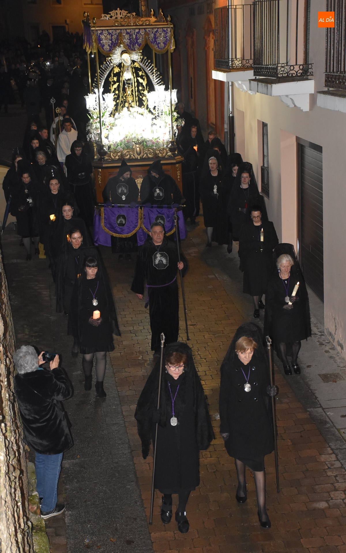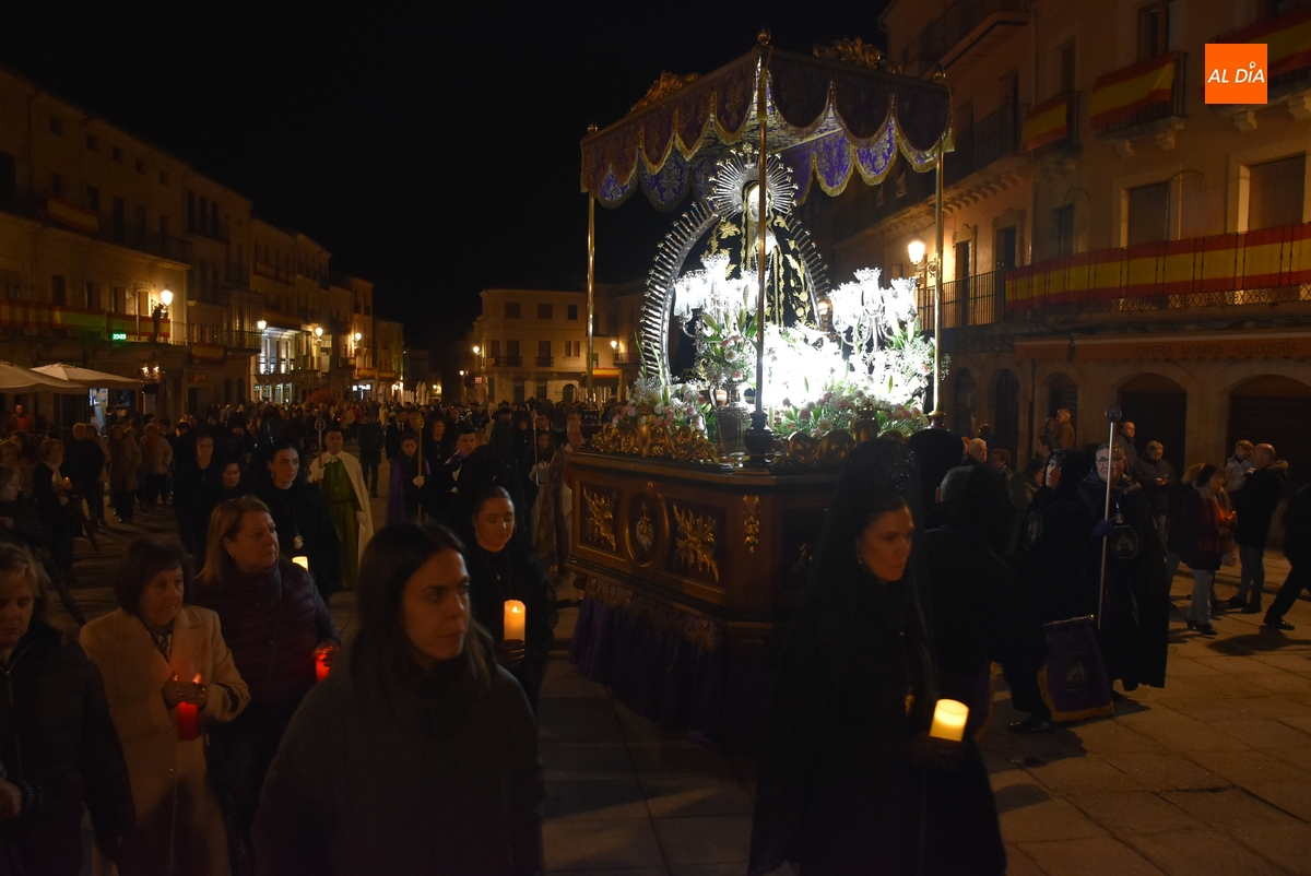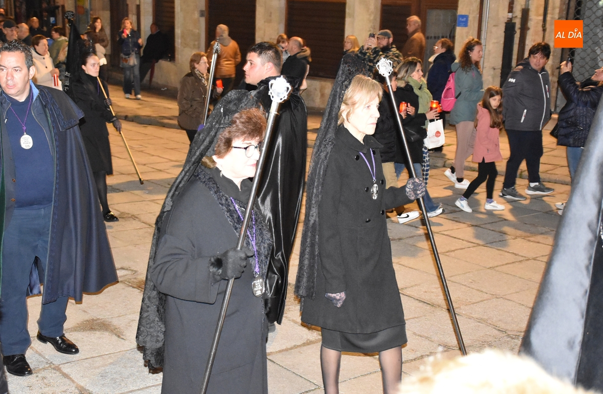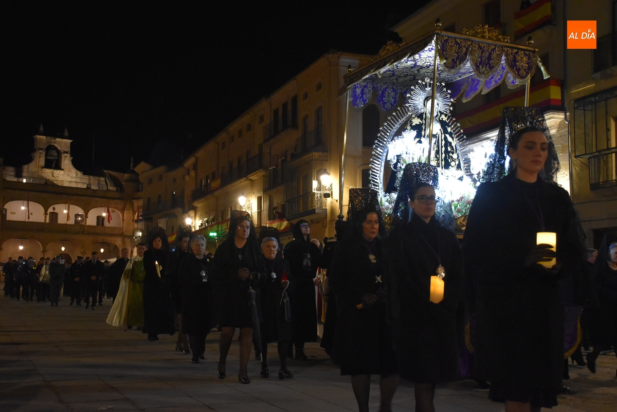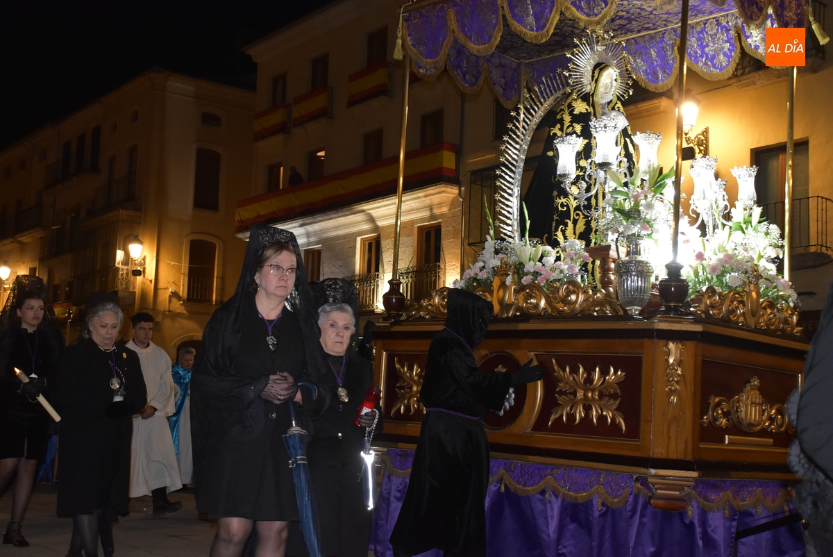 Detrás de la Virgen procesionó el capellán de La Soledad, Ángel Martín Carballo, junto al presidente de la Cofradía, Tomás Domínguez Cid, y un monaguillo; y tras ellos, representantes de las restantes cofradías de la Semana Santa Mirobrigense (excepto La Cruz), la Corporación Municipal, el Capitán de la Guardia Civil en Ciudad Rodrigo, Pablo Javier Ruiz Gatell de Gordejuela; y el Jefe de la Policía Local, Narciso Caridad. La Banda Municipal de Música cerró la comitiva, aunque en algunos momentos tras los músicos también marcharon cofrades.