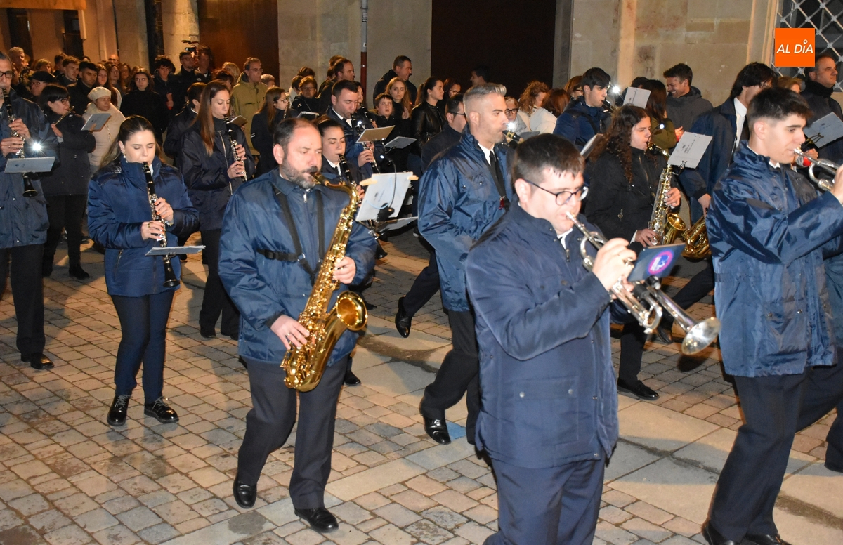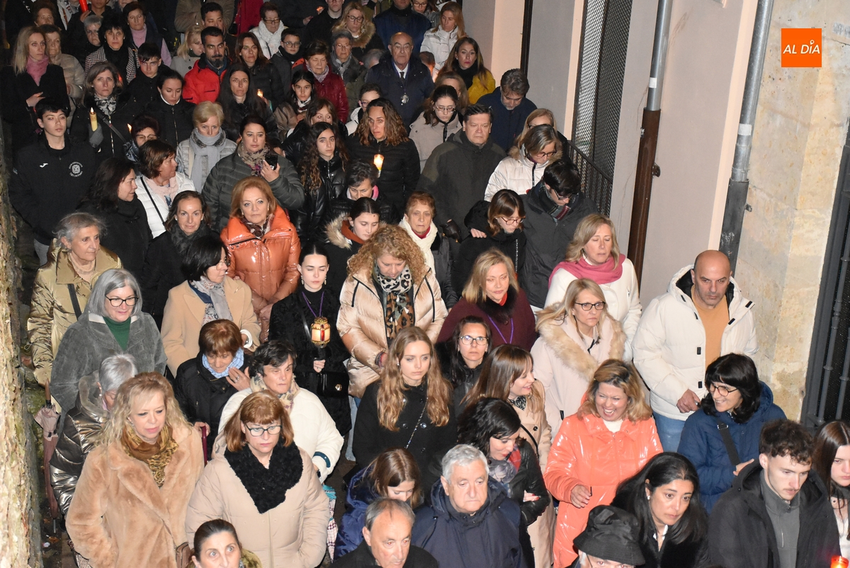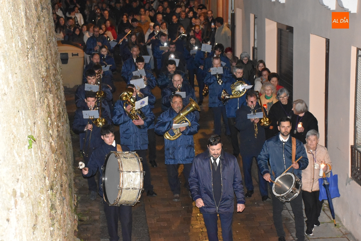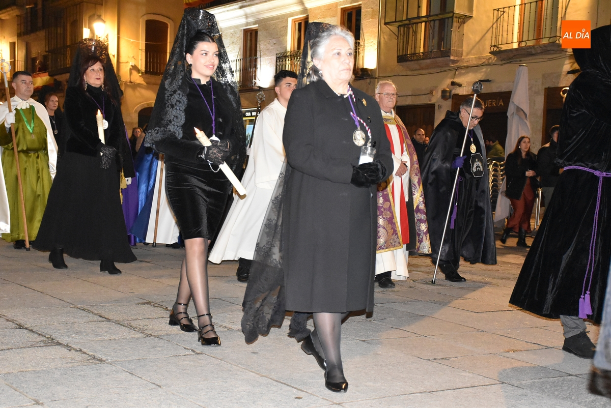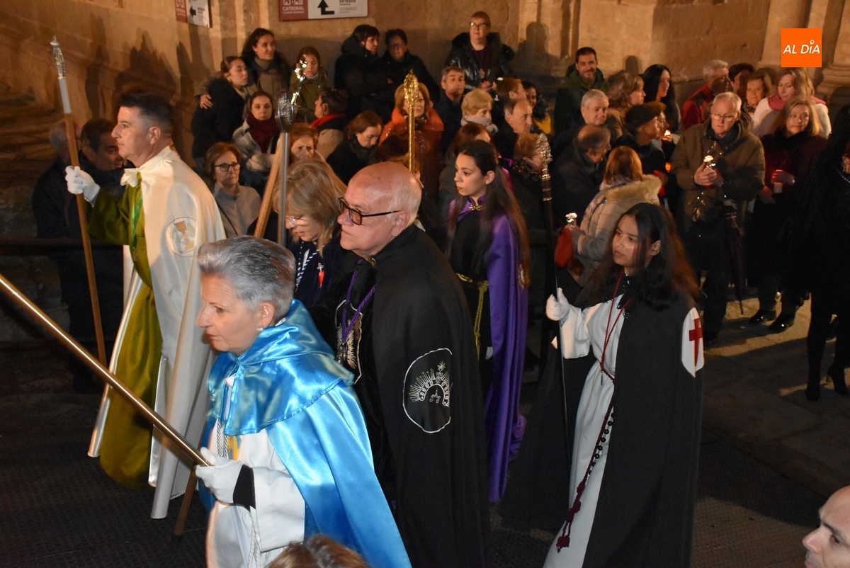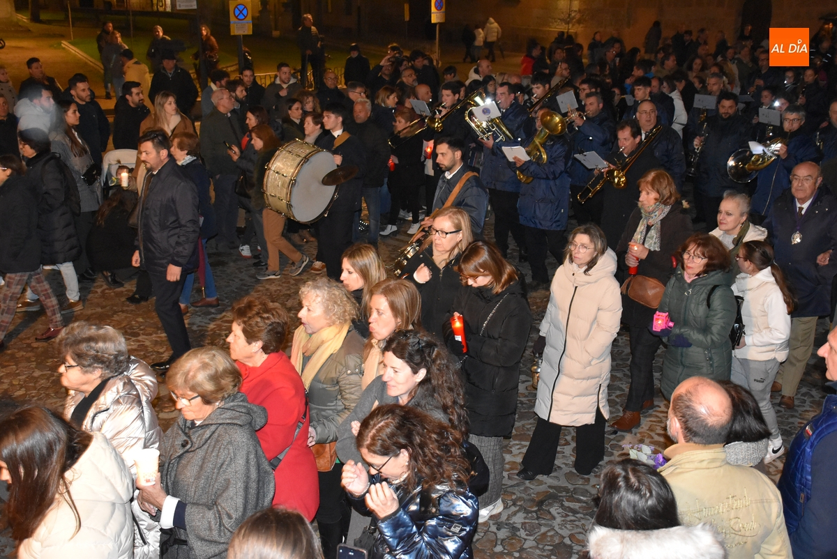 Detrás de la Virgen procesionó el capellán de La Soledad, Ángel Martín Carballo, junto al presidente de la Cofradía, Tomás Domínguez Cid, y un monaguillo; y tras ellos, representantes de las restantes cofradías de la Semana Santa Mirobrigense (excepto La Cruz), la Corporación Municipal, el Capitán de la Guardia Civil en Ciudad Rodrigo, Pablo Javier Ruiz Gatell de Gordejuela; y el Jefe de la Policía Local, Narciso Caridad. La Banda Municipal de Música cerró la comitiva, aunque en algunos momentos tras los músicos también marcharon cofrades.