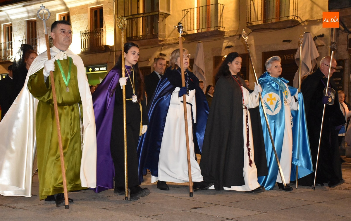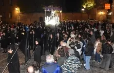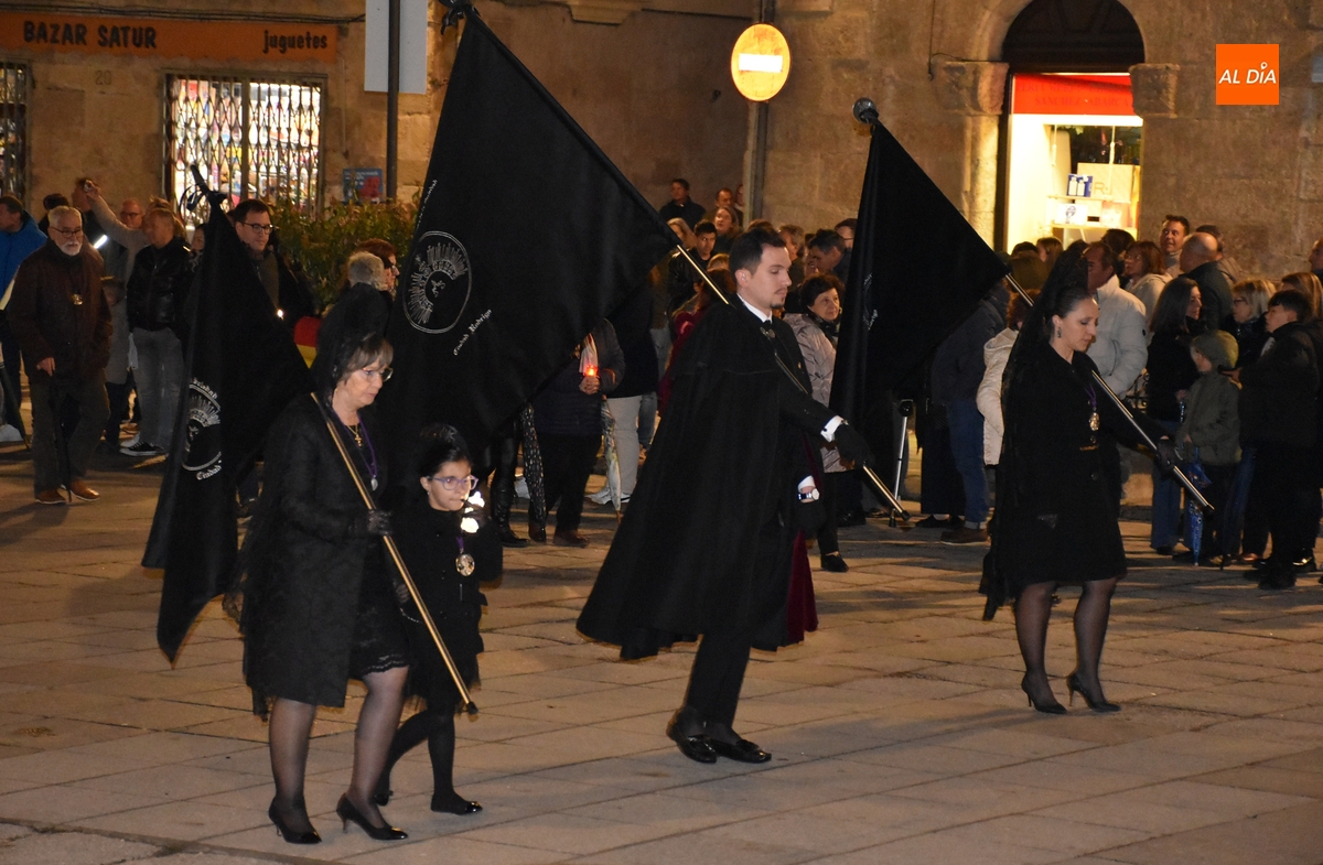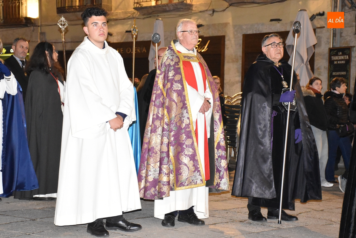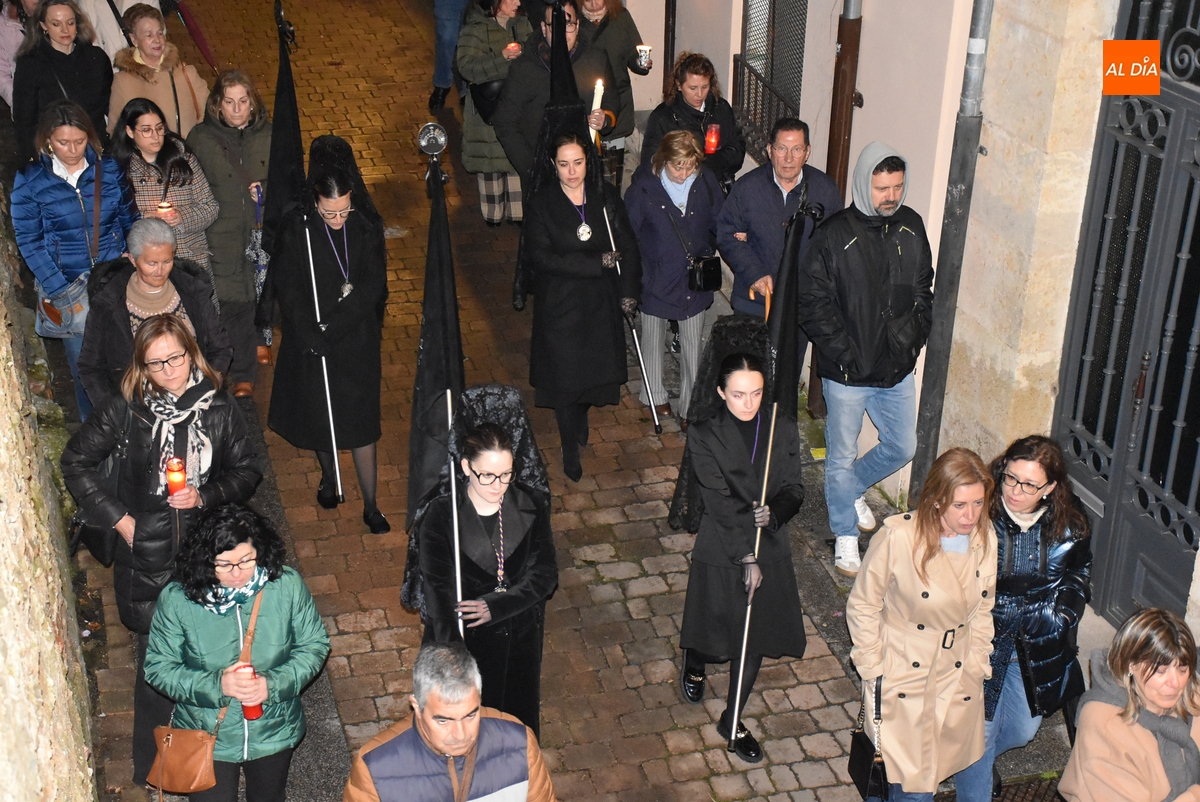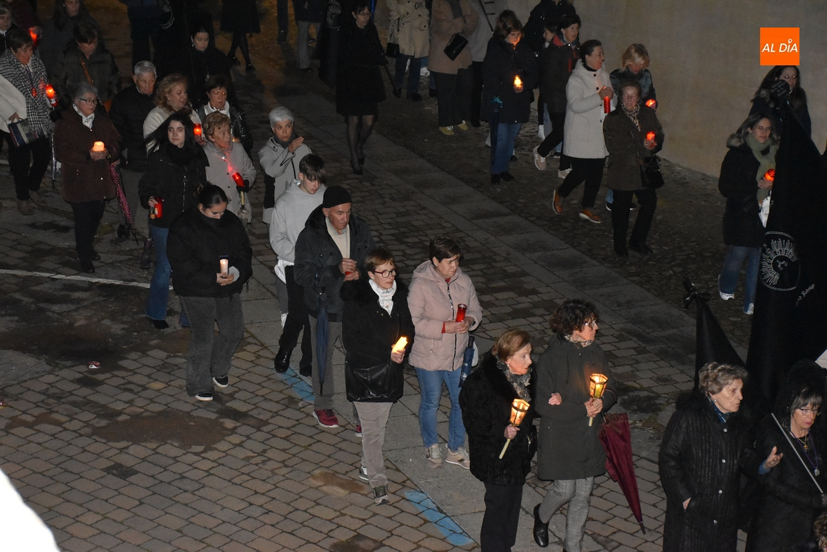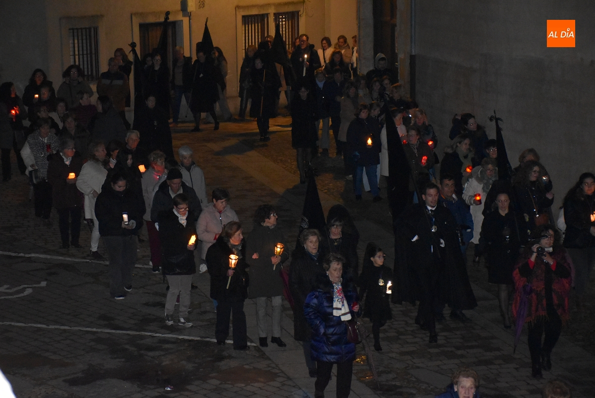 Después de que La Carrera se completase de forma exitosa (durante toda la semana pocos confiaban en ello), quedaba rematar el Viernes Santo con la procesión de La Soledad, pero el cielo empezó a dar guerra a las 21.07 horas, con un notable chaparrón, continuando la caída de agua durante un buen rato, lo que puso en jaque ese desfile final del día, que tenía como siempre un prólogo en forma de rezo del Santo Rosario y de reflexión a cargo del capellán de la Cofradía, Ángel Martín Carballo.