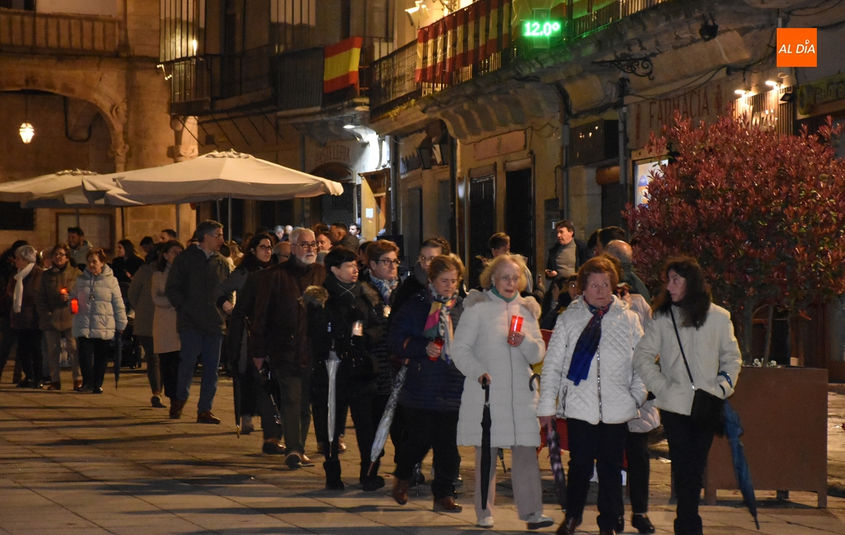 Al igual que ocurrió con La Carrera se esperó hasta el último momento a tomar la decisión: cuando concluyó la reflexión (instantes antes de las 23.00 horas, ya que fue más breve de lo habitual), se preguntó a los que estaban fuera de la Seo si estaba lloviendo, y como no lo estaba haciendo, se decidió salir, aunque con una ruta diferente a la planeada, más corta, pero igualmente bastante larga. Para empezar, se fue hacia la Plaza Mayor, pero no por Plaza de San Salvador, Díez Taravilla y Colada como estaba previsto, sino por Cardenal Pacheco.