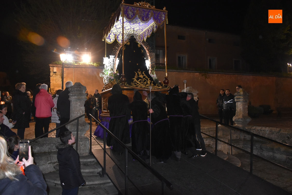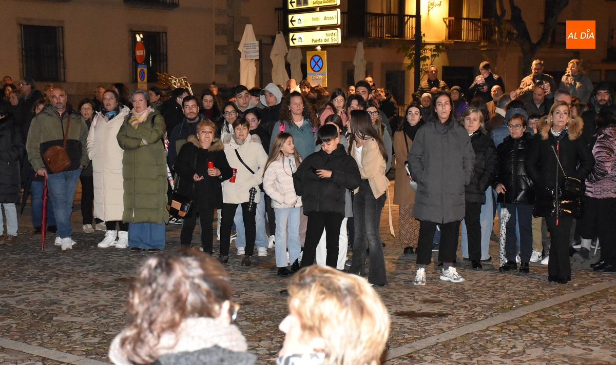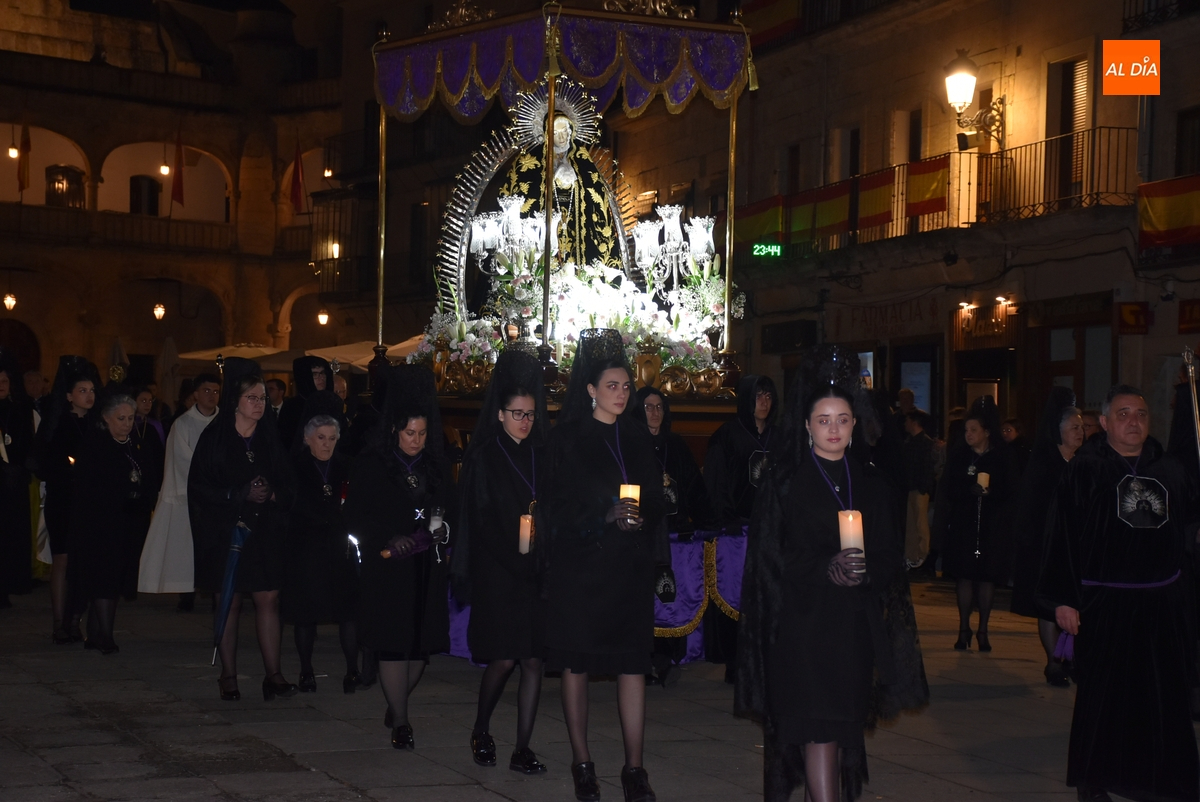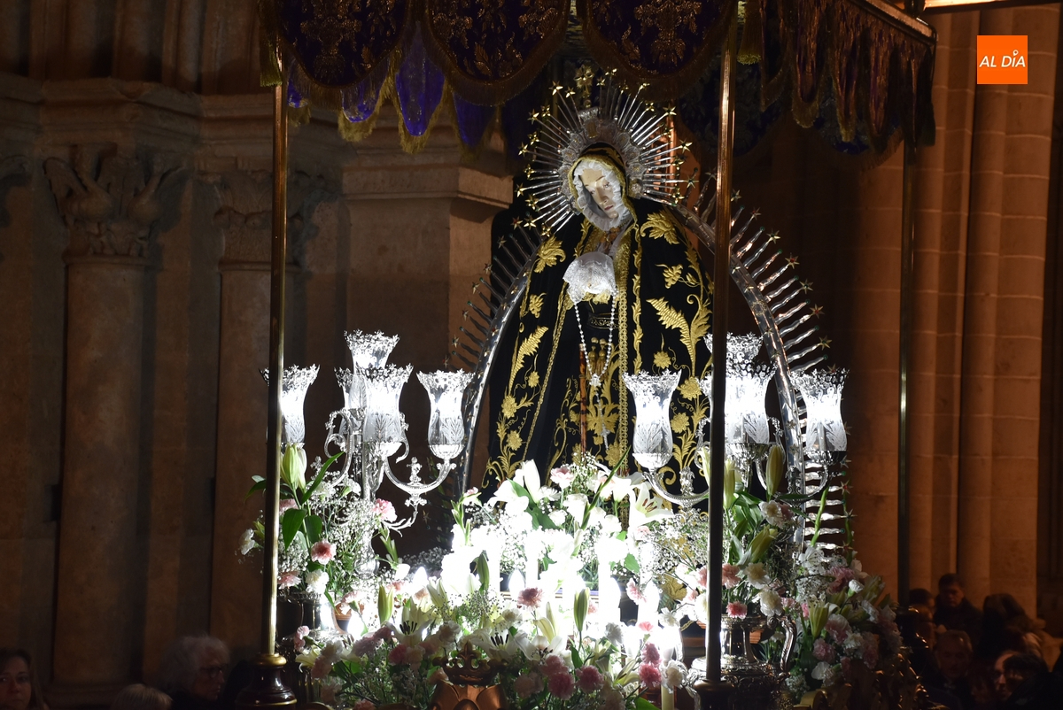 Según lo previsto, La Soledad debía haber salido del ágora de forma inmediata por Julián Sánchez, pero bajó hasta Cardenal Pacheco para encaminarse hacia la Catedral. En este tránsito por Cardenal Pacheco, se puso a llover, lo que hizo que se abriesen paraguas entre el público y que se acelerase el final, siendo introducida lo más rápido posible –la maniobra de bajada con la carroza tiene su dificultad- la imagen de La Soledad en la Seo, tras 45 minutos en la calle.