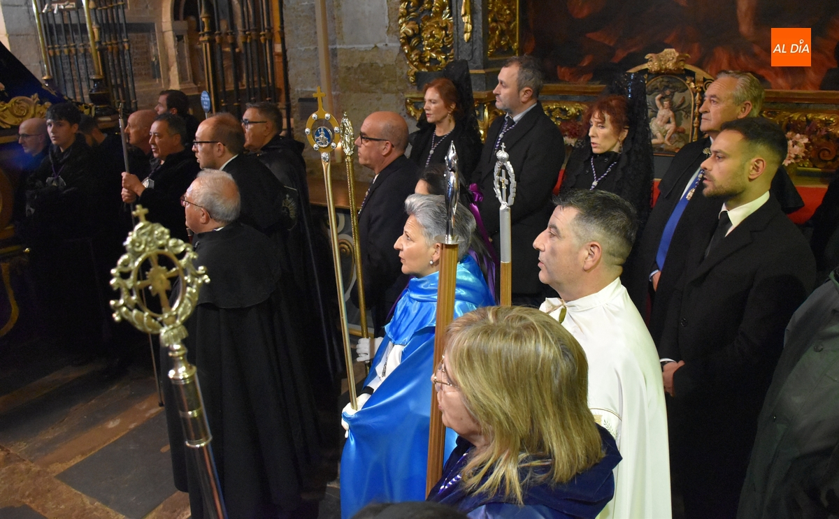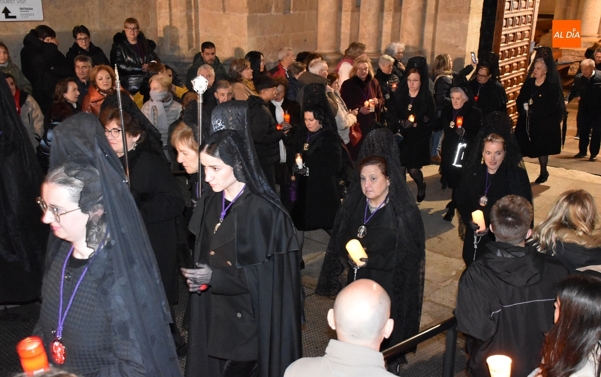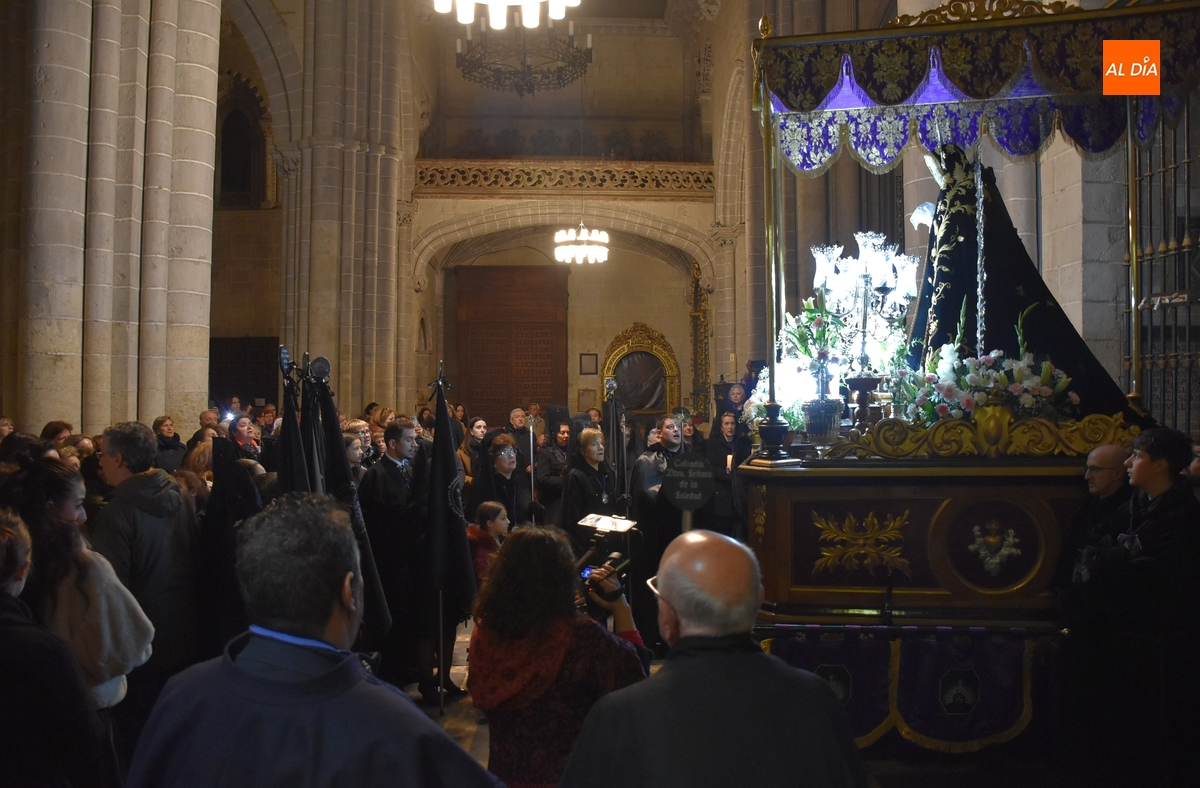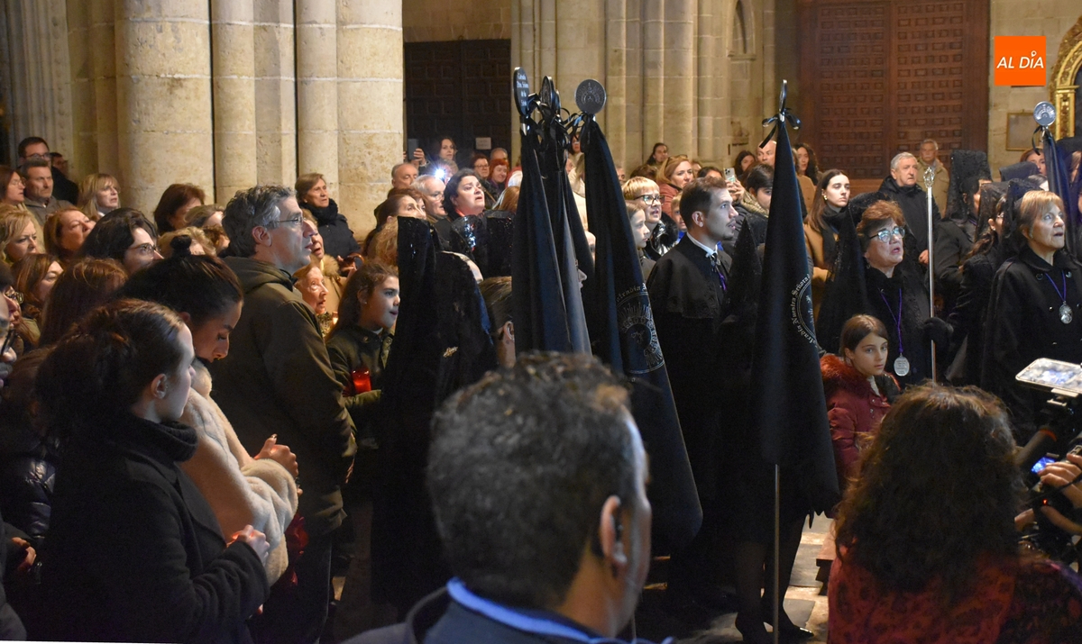 Así, fue en el interior de la Catedral (a donde accedieron buena parte de los presentes) donde se cantó la Salve en vez de en el exterior como es costumbre. Tras ello, hubo unas palabras de agradecimiento por parte de Ángel Martín Carballo a todos los participantes en la procesión, que en principio no será la única salida a la calle de La Soledad en 2025 (la Cofradía tiene la intención de sacarla con motivo de la conmemoración de los Dolores de la Virgen en septiembre).