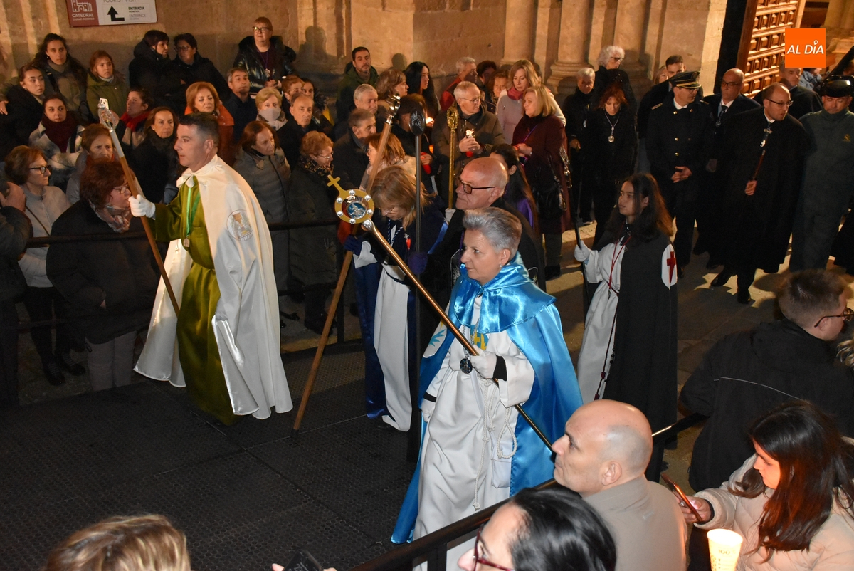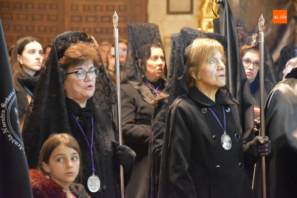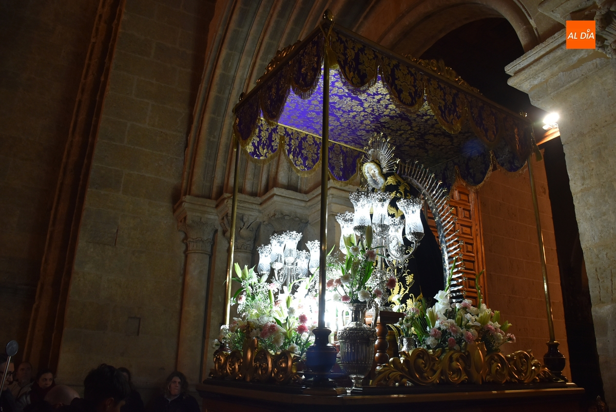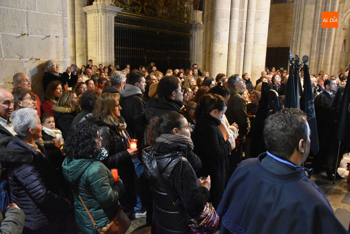 Así, fue en el interior de la Catedral (a donde accedieron buena parte de los presentes) donde se cantó la Salve en vez de en el exterior como es costumbre. Tras ello, hubo unas palabras de agradecimiento por parte de Ángel Martín Carballo a todos los participantes en la procesión, que en principio no será la única salida a la calle de La Soledad en 2025 (la Cofradía tiene la intención de sacarla con motivo de la conmemoración de los Dolores de la Virgen en septiembre).