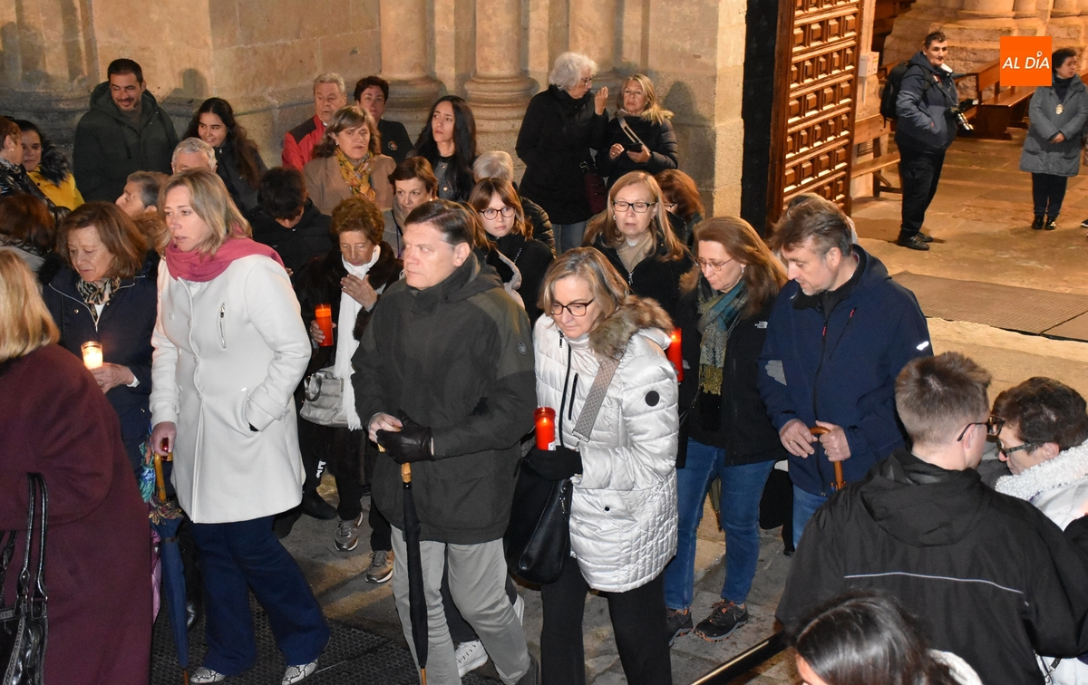 La lluvia apareció justo cuando se estaba llegando a la Catedral, cantándose la Salve en su interior