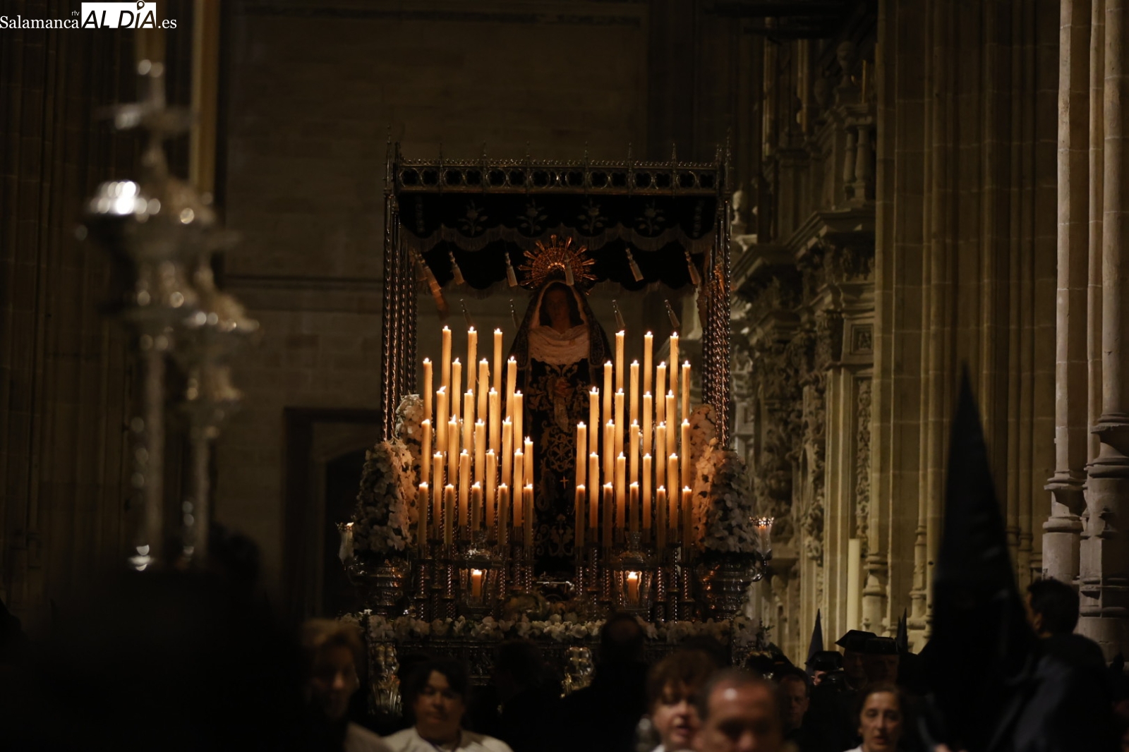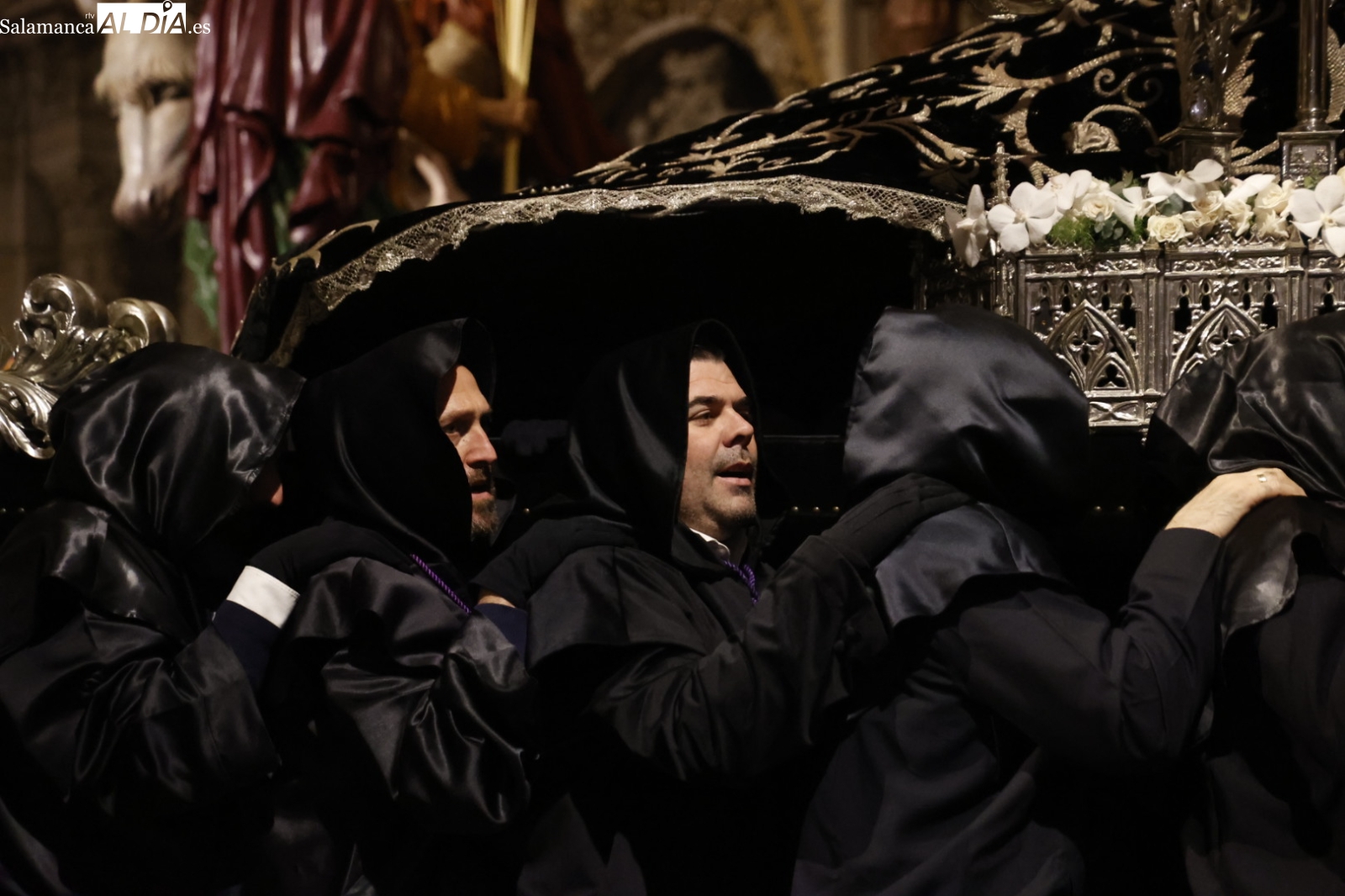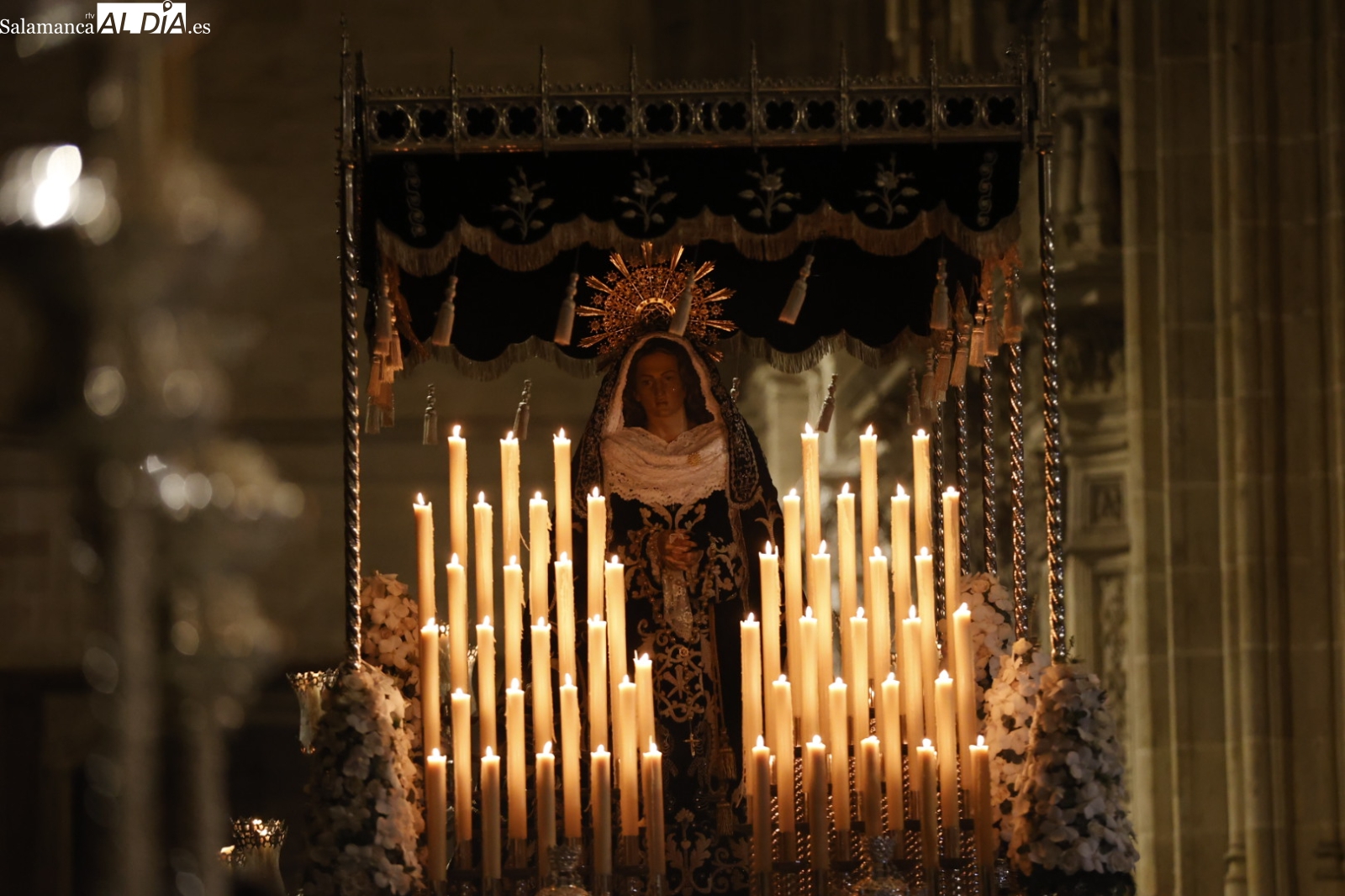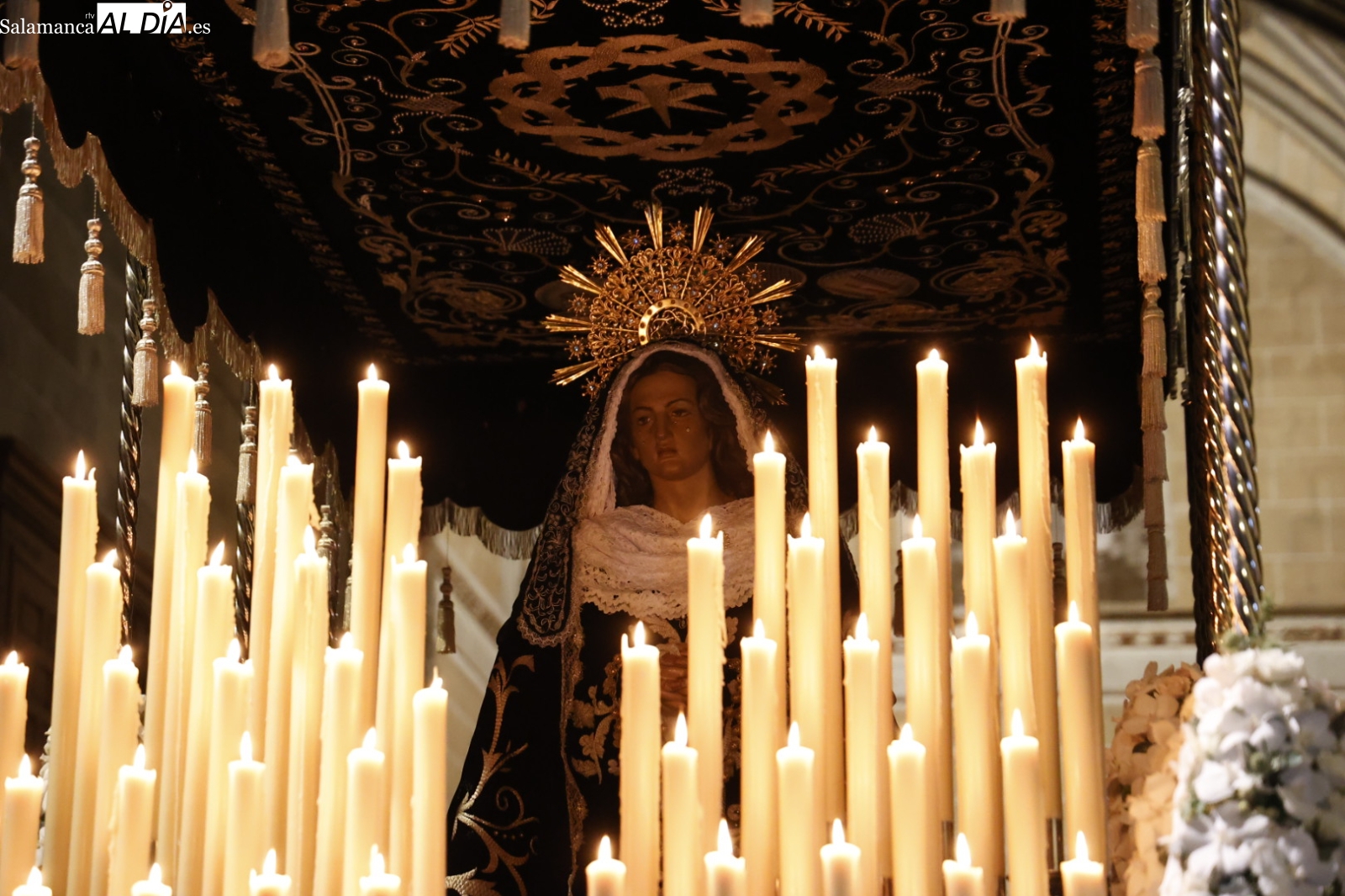 Tras la suspensión del Santo Entierro, la procesión de Jesús Nazareno, de la congregación de Jesús Rescatado y la de la Oración en el Huerto, tampoco la Hermandad de la Soledad pudo salir a procesionar por las calles de Salamanca en un Viernes Santo aciago.