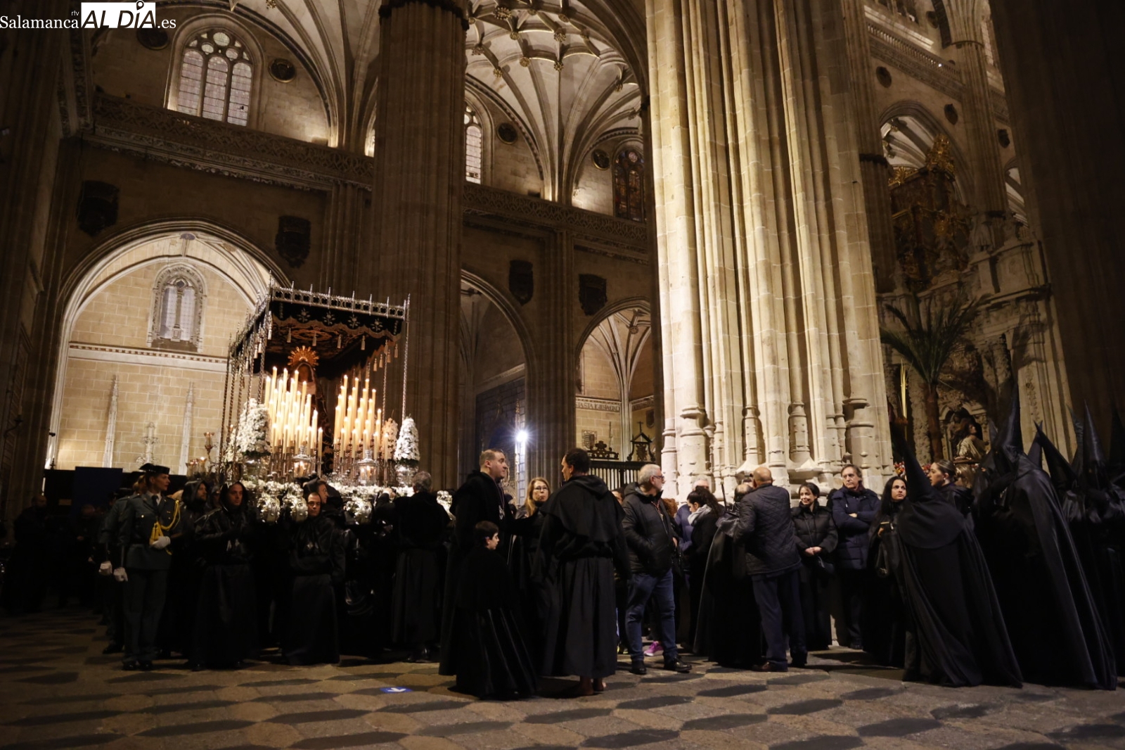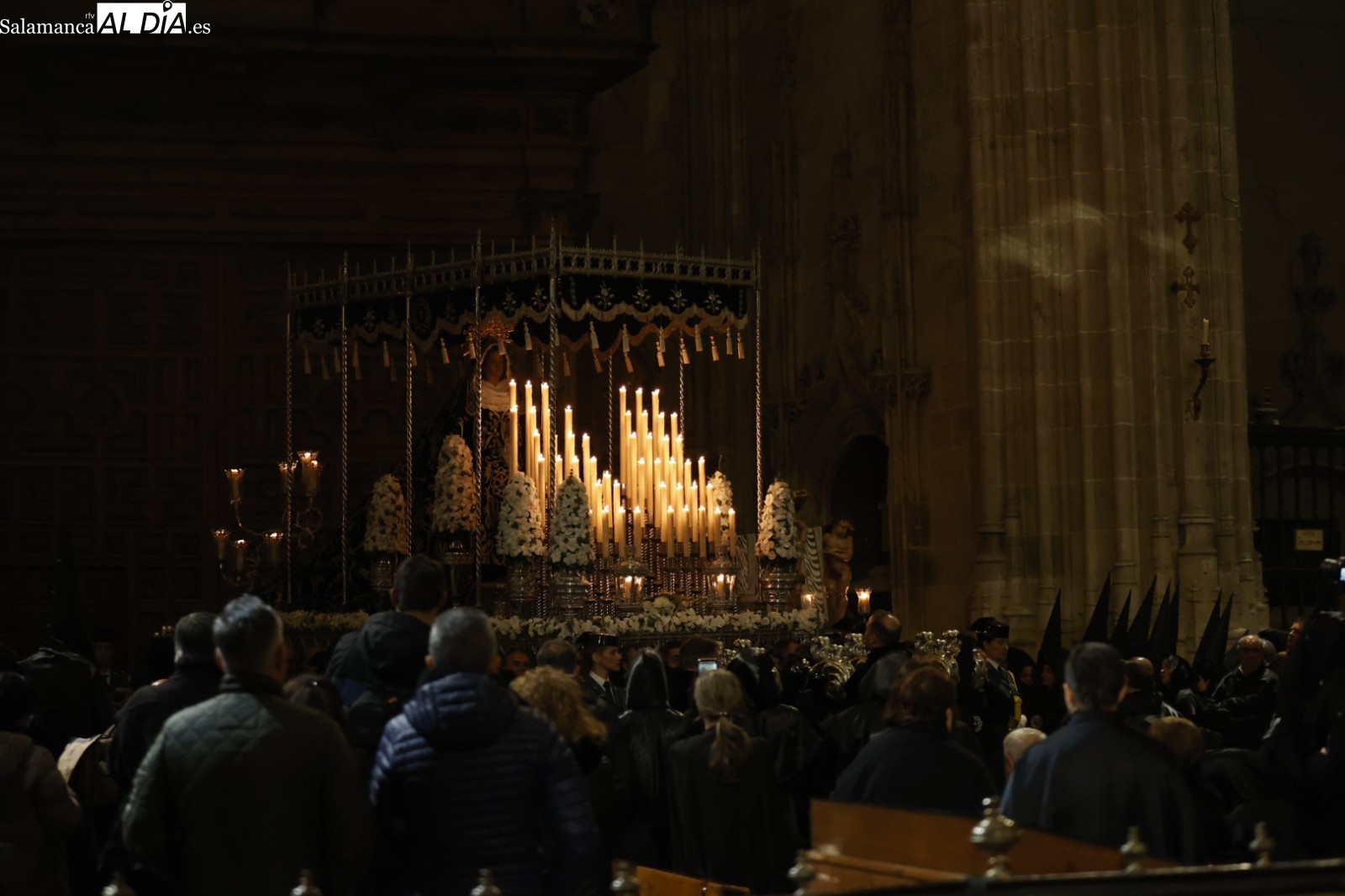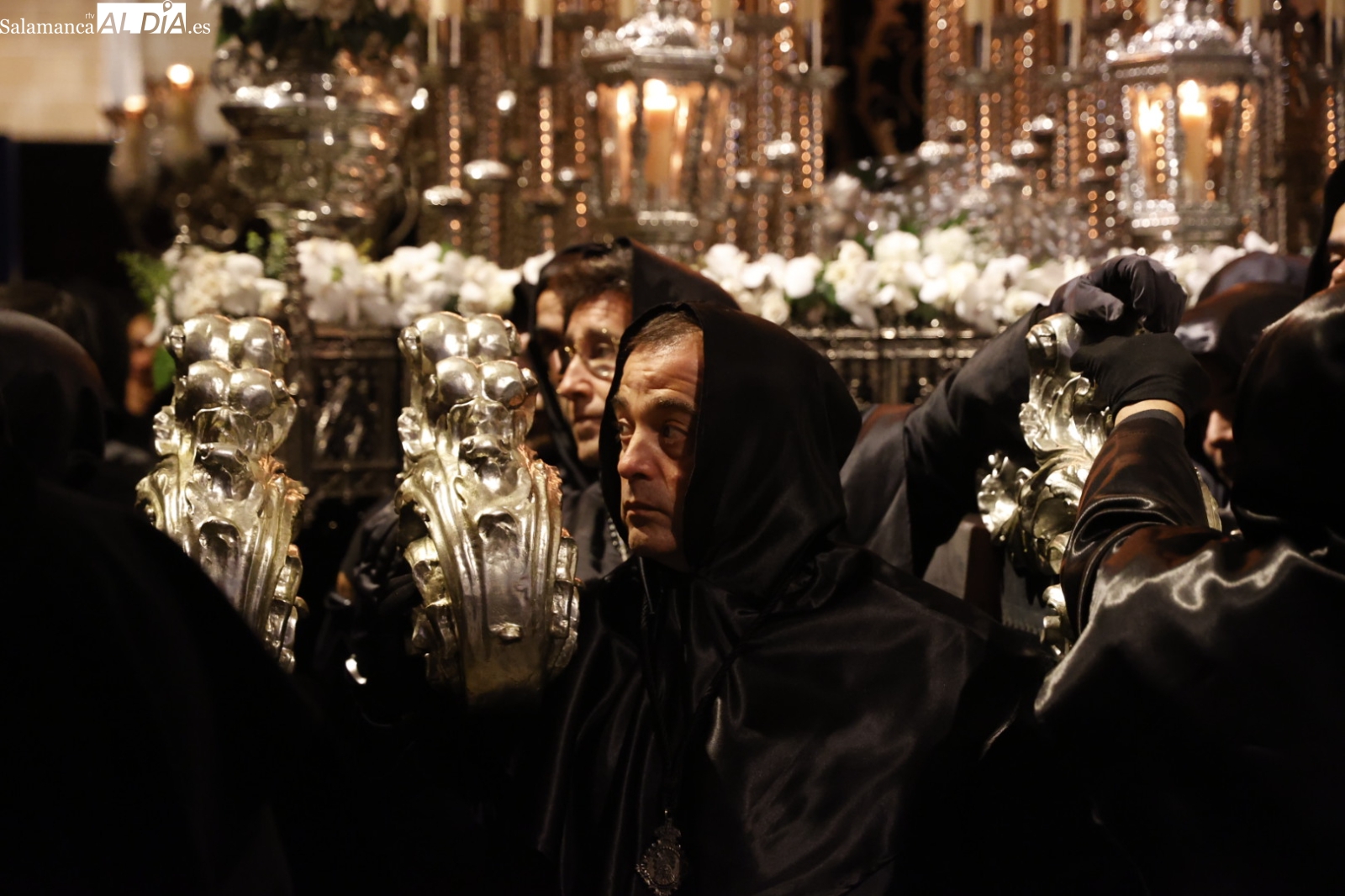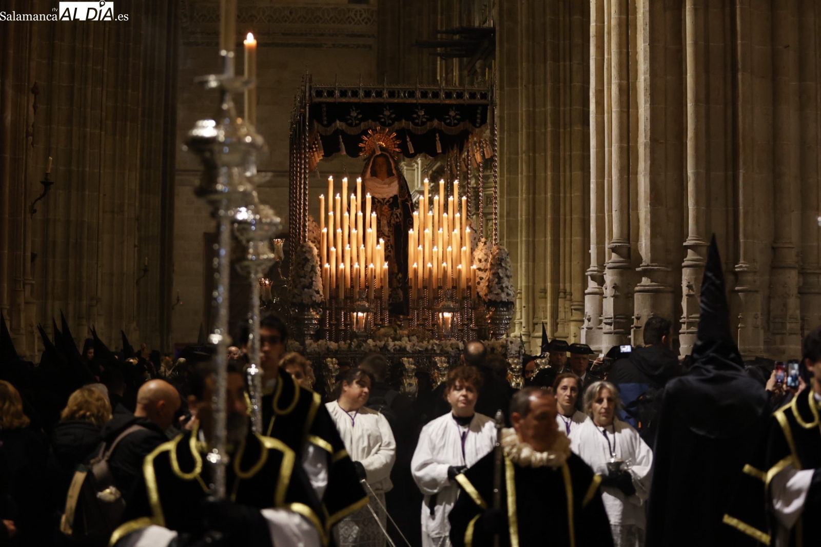 Tras la suspensión del Santo Entierro, la procesión de Jesús Nazareno, de la congregación de Jesús Rescatado y la de la Oración en el Huerto, tampoco la Hermandad de la Soledad pudo salir a procesionar por las calles de Salamanca en un Viernes Santo aciago.