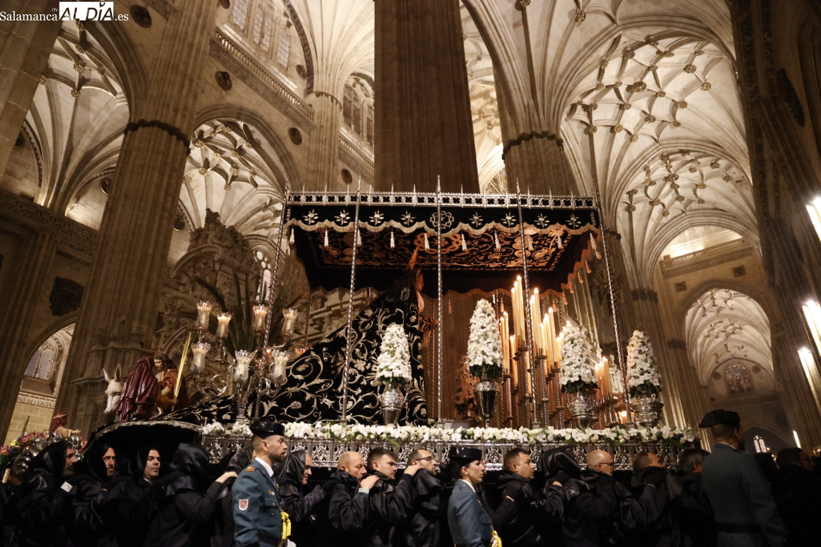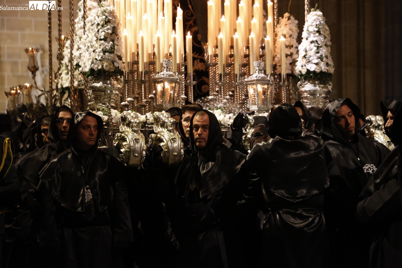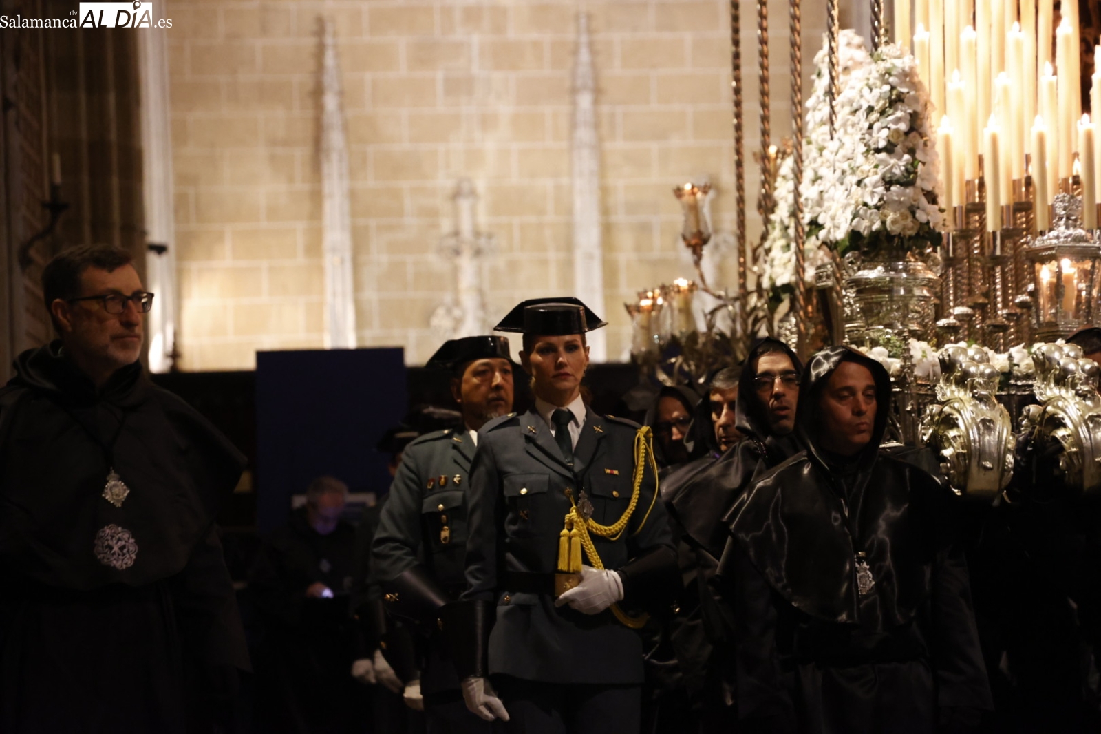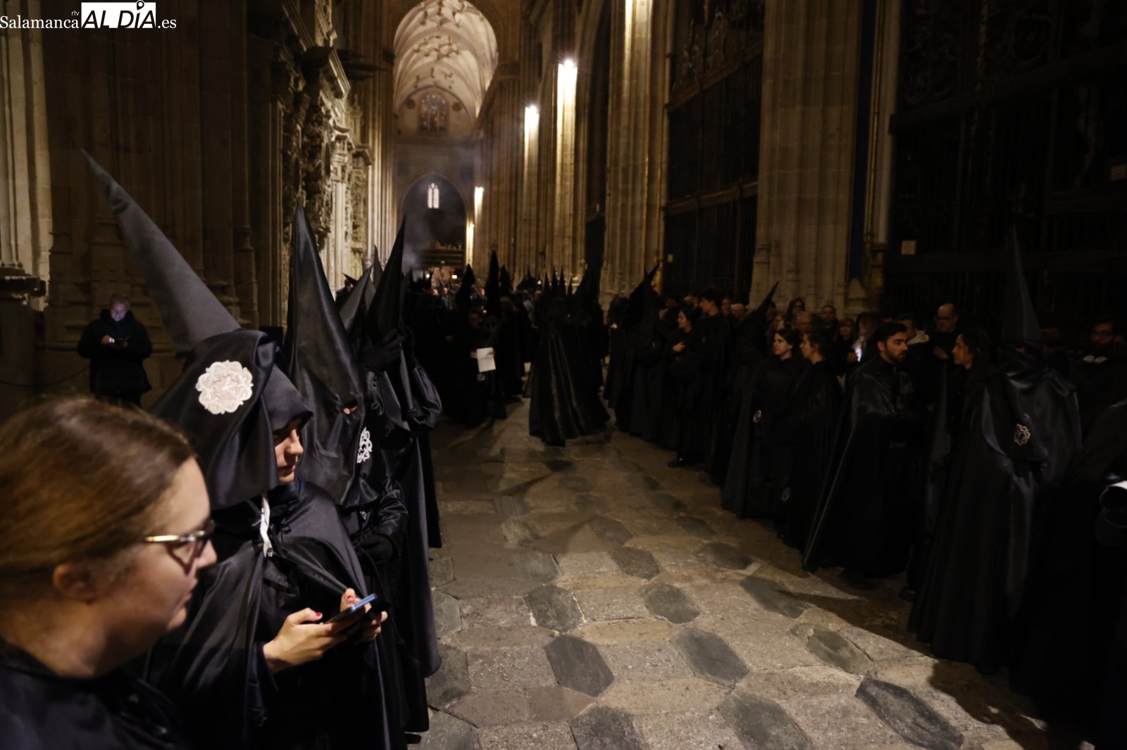 Tras la suspensión del Santo Entierro, la procesión de Jesús Nazareno, de la congregación de Jesús Rescatado y la de la Oración en el Huerto, tampoco la Hermandad de la Soledad pudo salir a procesionar por las calles de Salamanca en un Viernes Santo aciago.