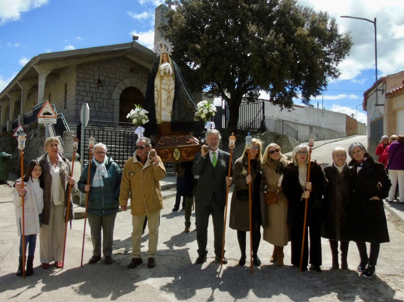 Una oración ha supuesto la retirada del manto de luto, momento envuelto en aplausos y acompañado por la actuación del grupo de Paleo macoterano.