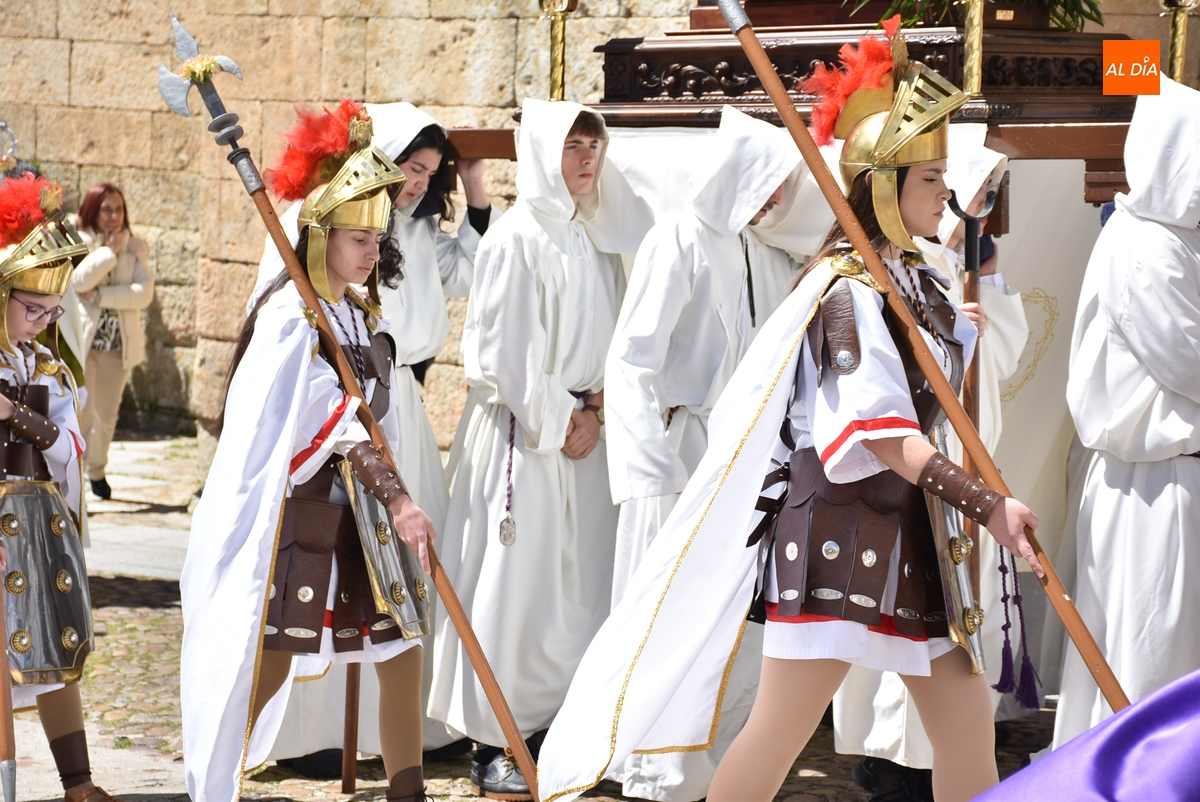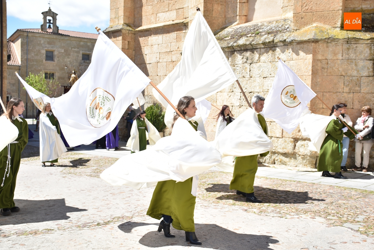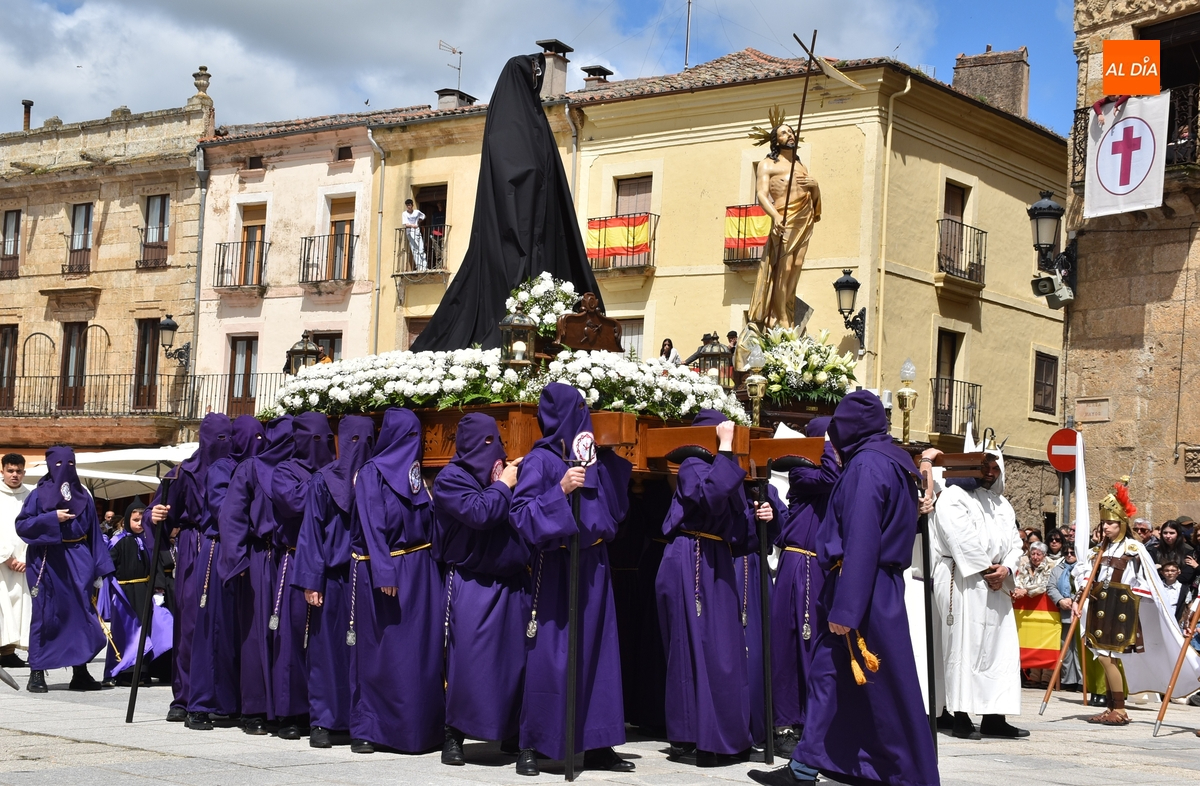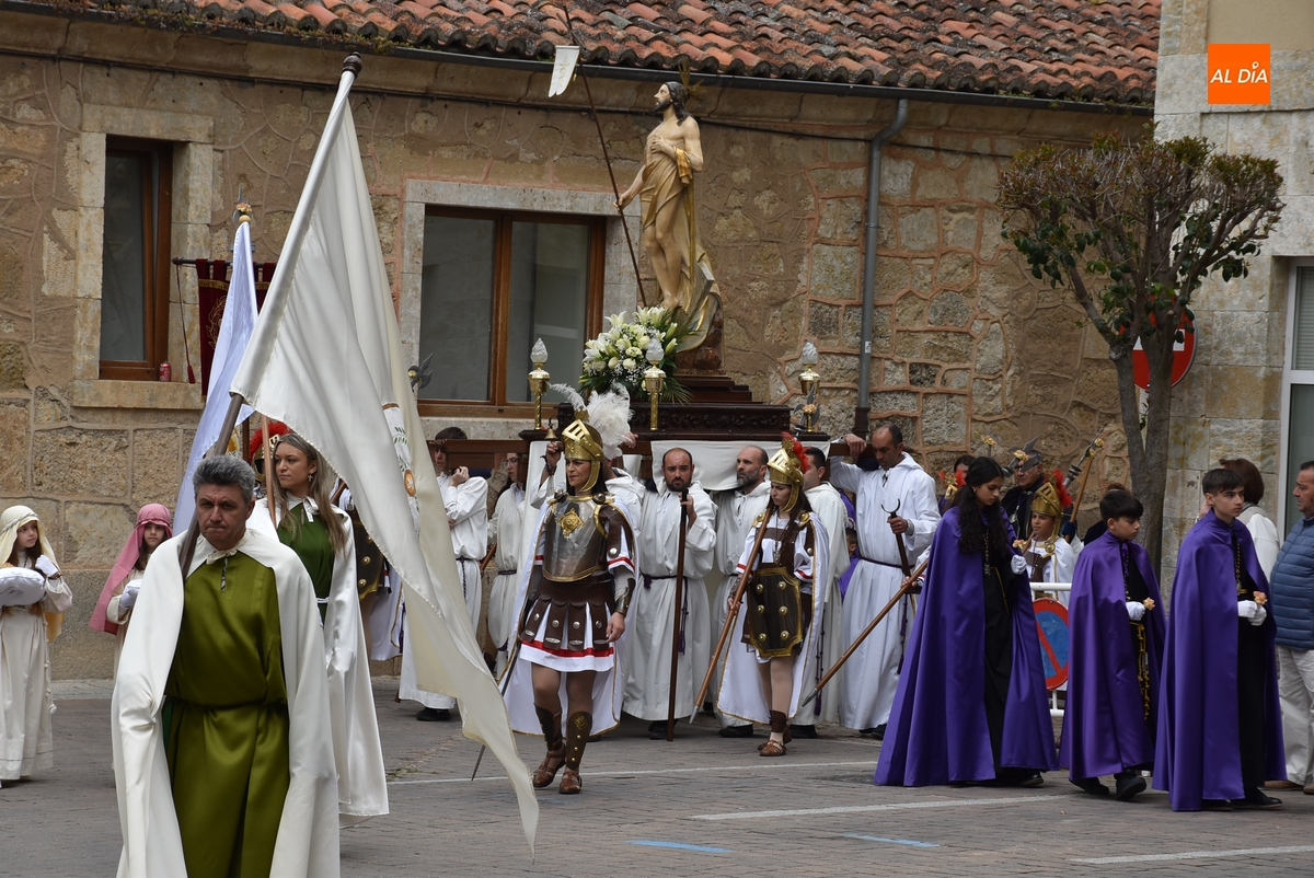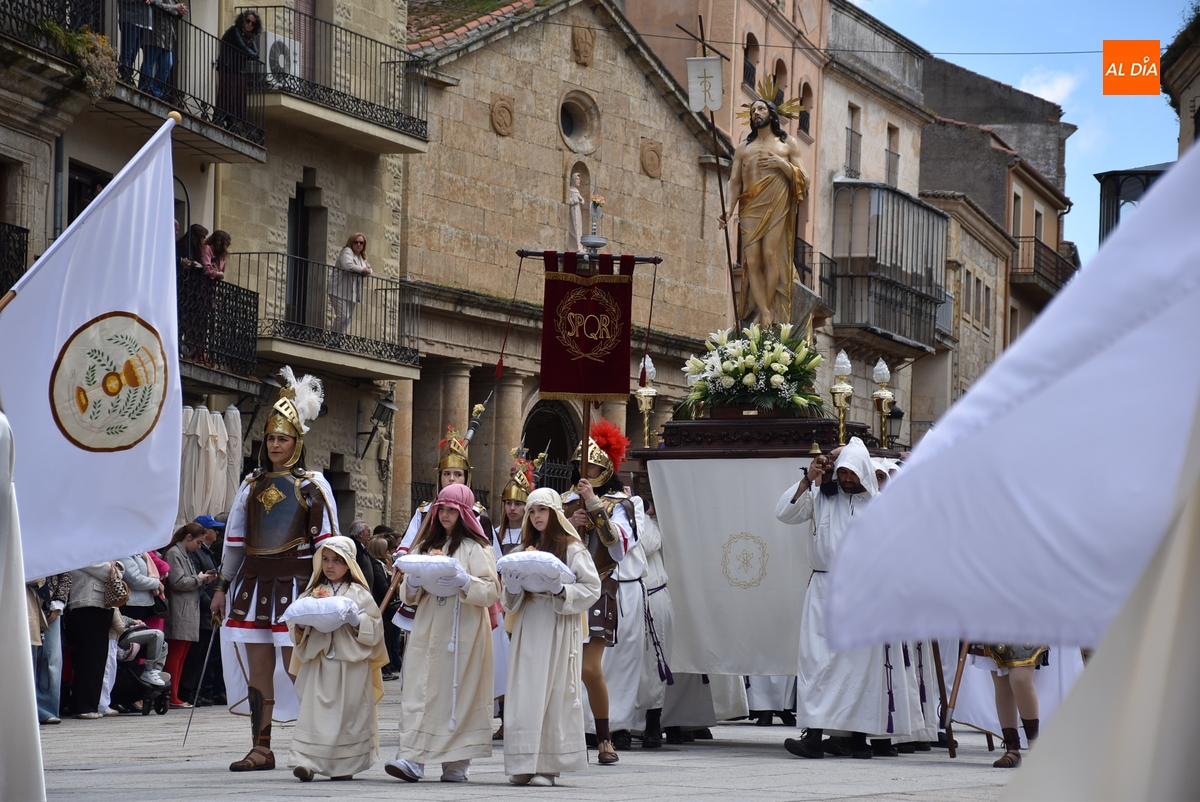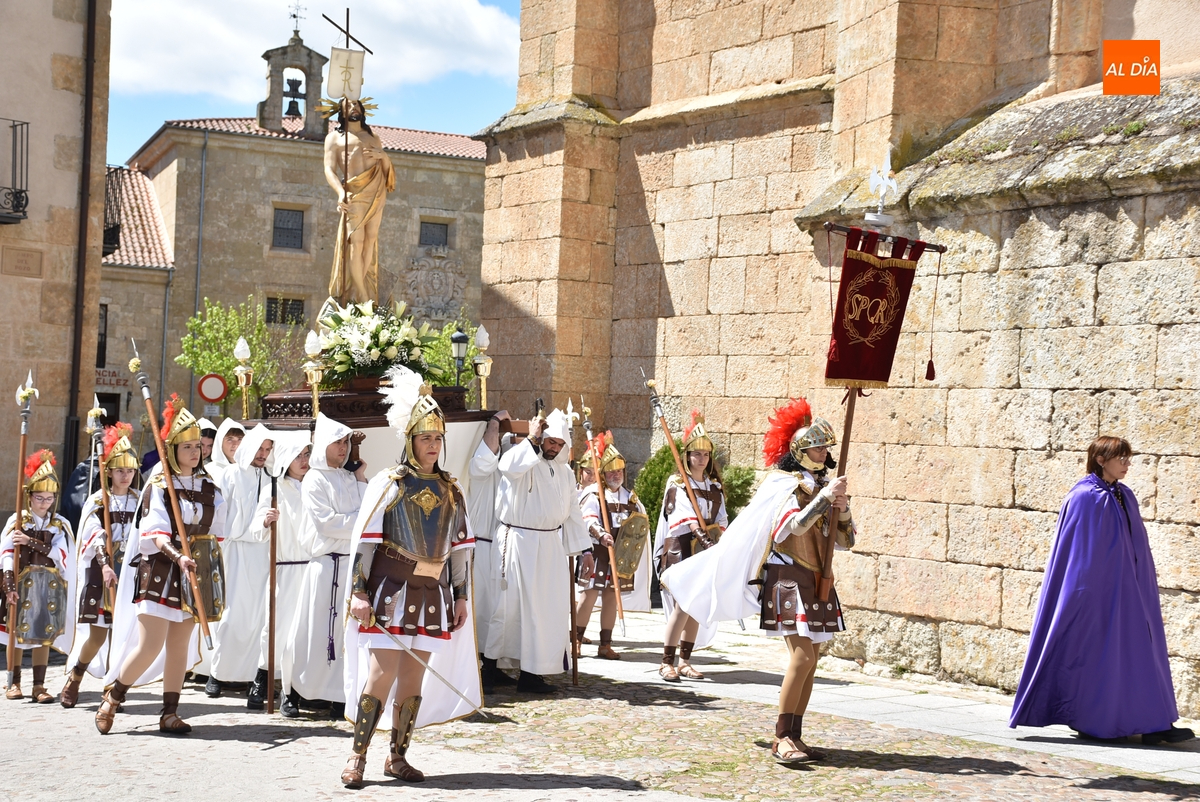 Horas después de comenzar a festejarla con la novedosa procesión de la Sábana Santa, Ciudad Rodrigo tuvo en el tramo final de la mañana del domingo su tradicional procesión de celebración de la Resurrección de Jesucristo, a cargo de la Cofradía de Jesús Nazareno, que procesiona por las calles mirobrigenses la imagen de Jesús Resucitado, que este año se volvió a poner en marcha en la Iglesia de San Agustín.