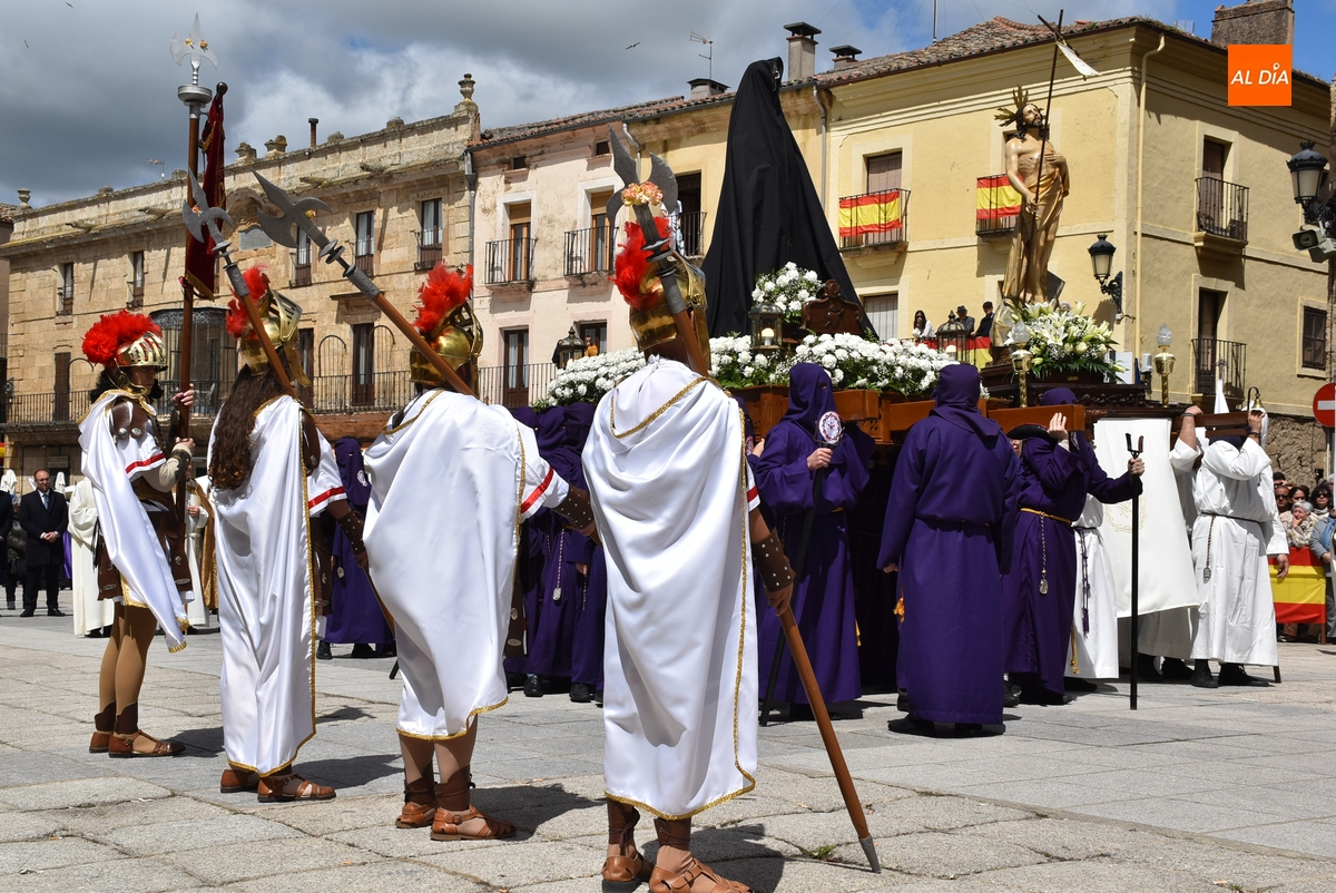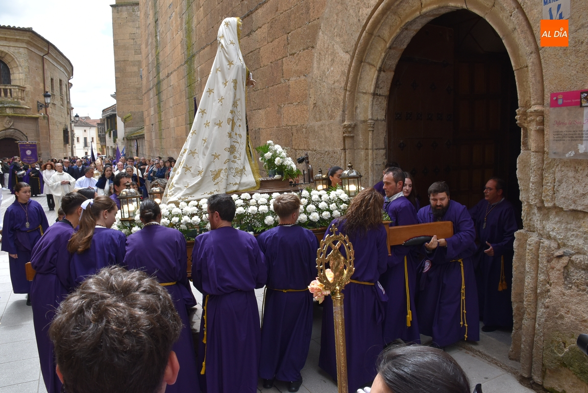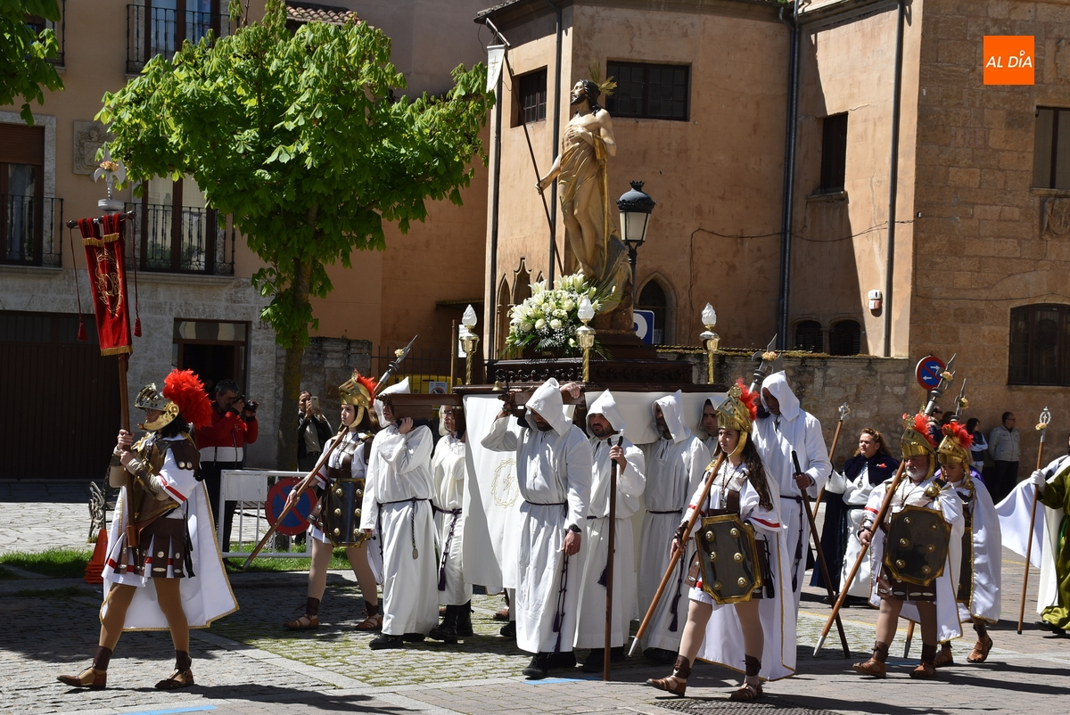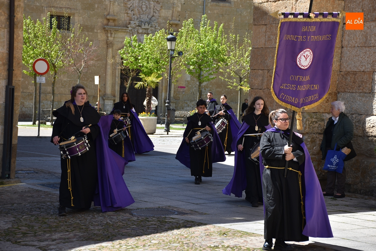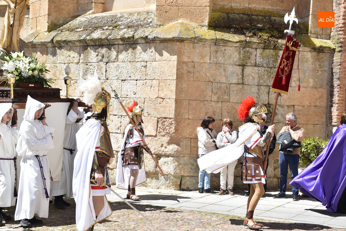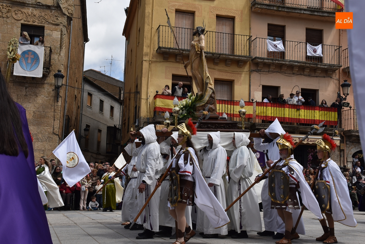 Horas después de comenzar a festejarla con la novedosa procesión de la Sábana Santa, Ciudad Rodrigo tuvo en el tramo final de la mañana del domingo su tradicional procesión de celebración de la Resurrección de Jesucristo, a cargo de la Cofradía de Jesús Nazareno, que procesiona por las calles mirobrigenses la imagen de Jesús Resucitado, que este año se volvió a poner en marcha en la Iglesia de San Agustín.