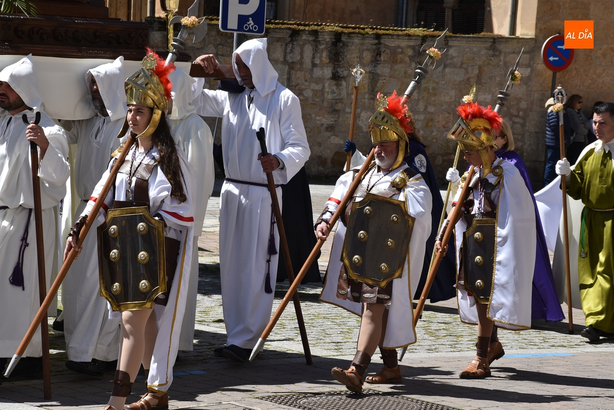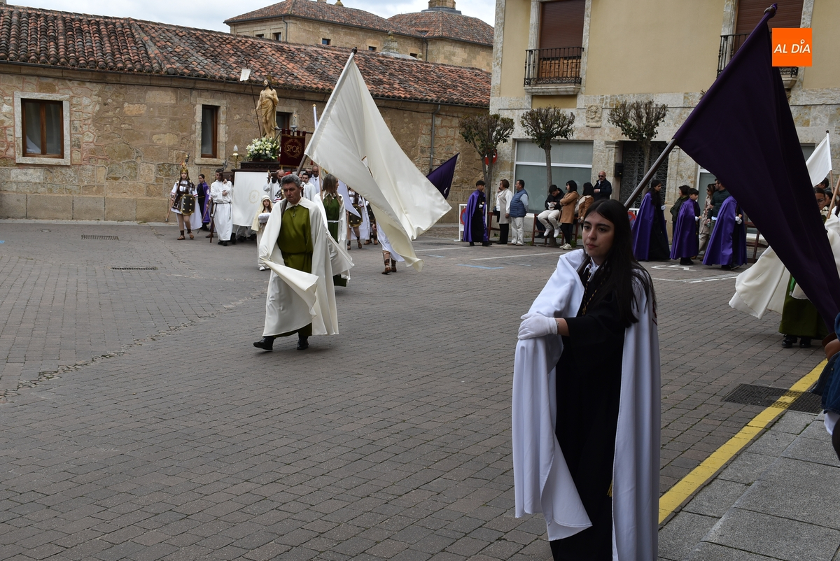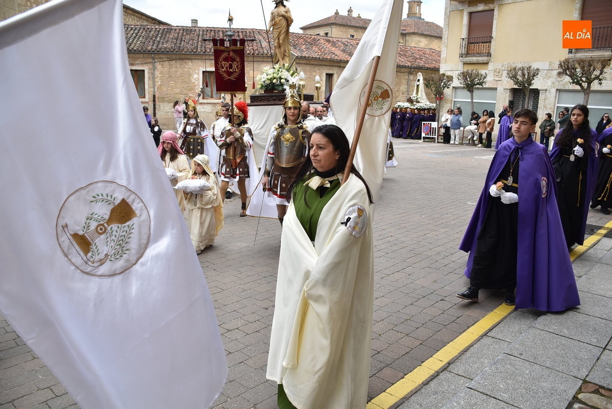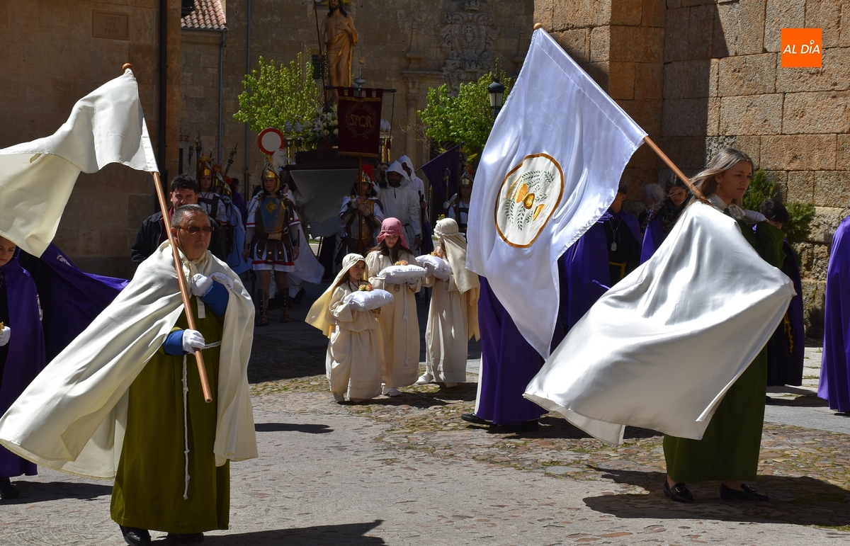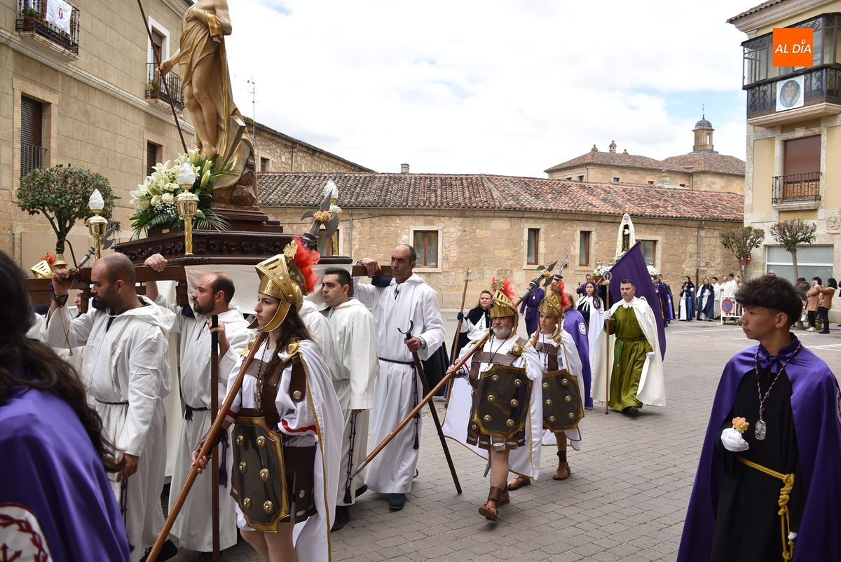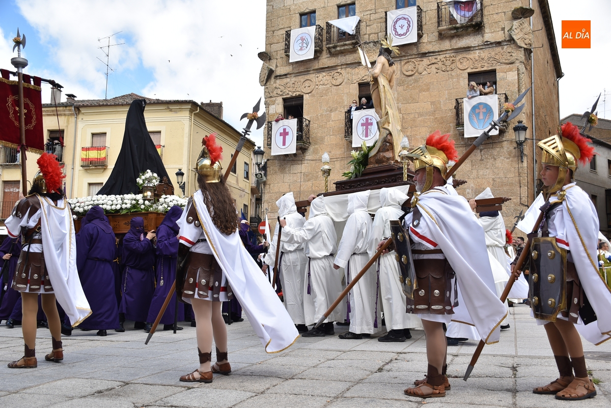 Horas después de comenzar a festejarla con la novedosa procesión de la Sábana Santa, Ciudad Rodrigo tuvo en el tramo final de la mañana del domingo su tradicional procesión de celebración de la Resurrección de Jesucristo, a cargo de la Cofradía de Jesús Nazareno, que procesiona por las calles mirobrigenses la imagen de Jesús Resucitado, que este año se volvió a poner en marcha en la Iglesia de San Agustín.