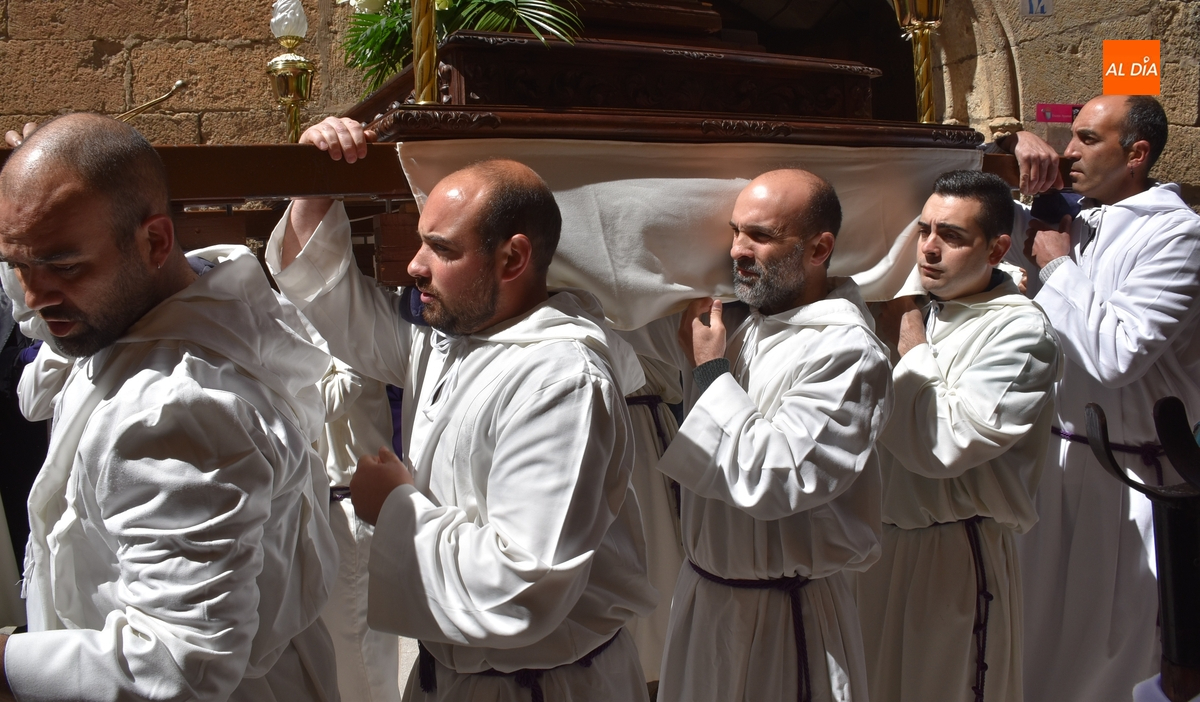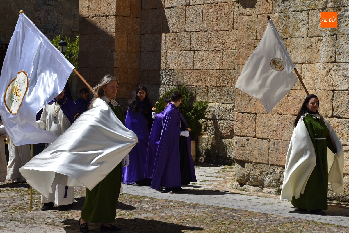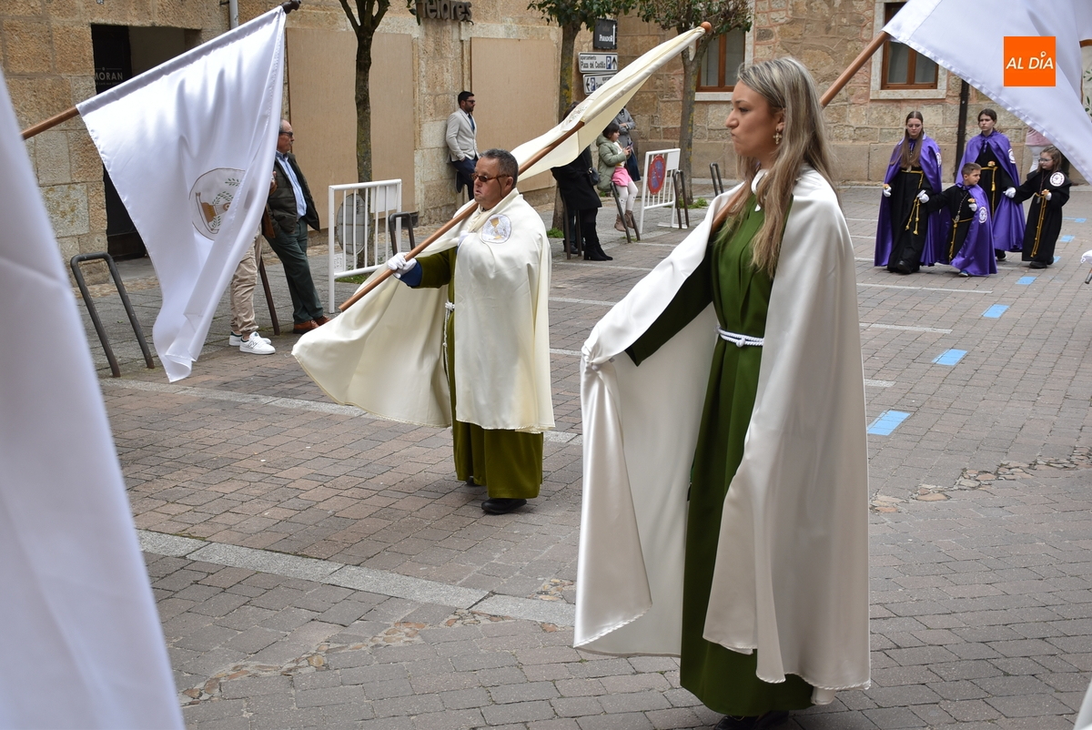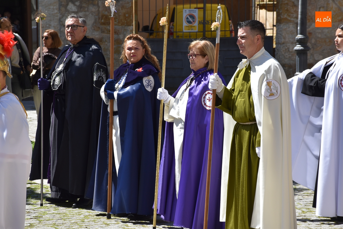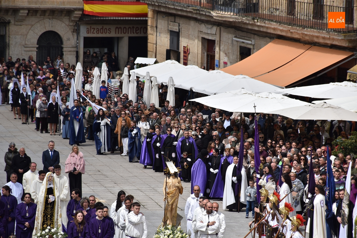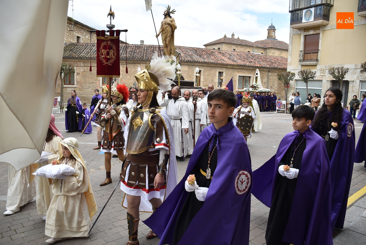 Horas después de comenzar a festejarla con la novedosa procesión de la Sábana Santa, Ciudad Rodrigo tuvo en el tramo final de la mañana del domingo su tradicional procesión de celebración de la Resurrección de Jesucristo, a cargo de la Cofradía de Jesús Nazareno, que procesiona por las calles mirobrigenses la imagen de Jesús Resucitado, que este año se volvió a poner en marcha en la Iglesia de San Agustín.