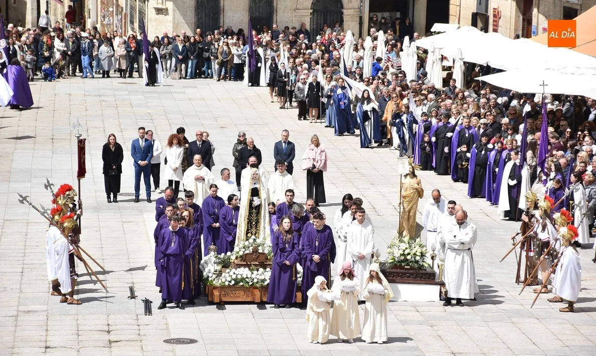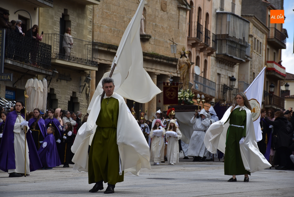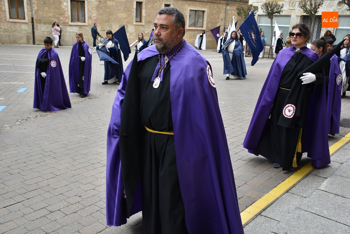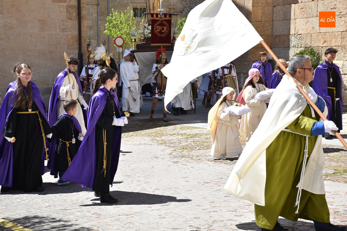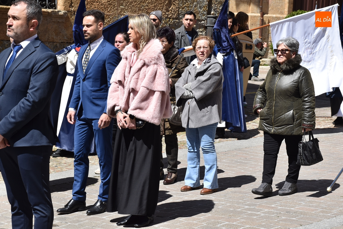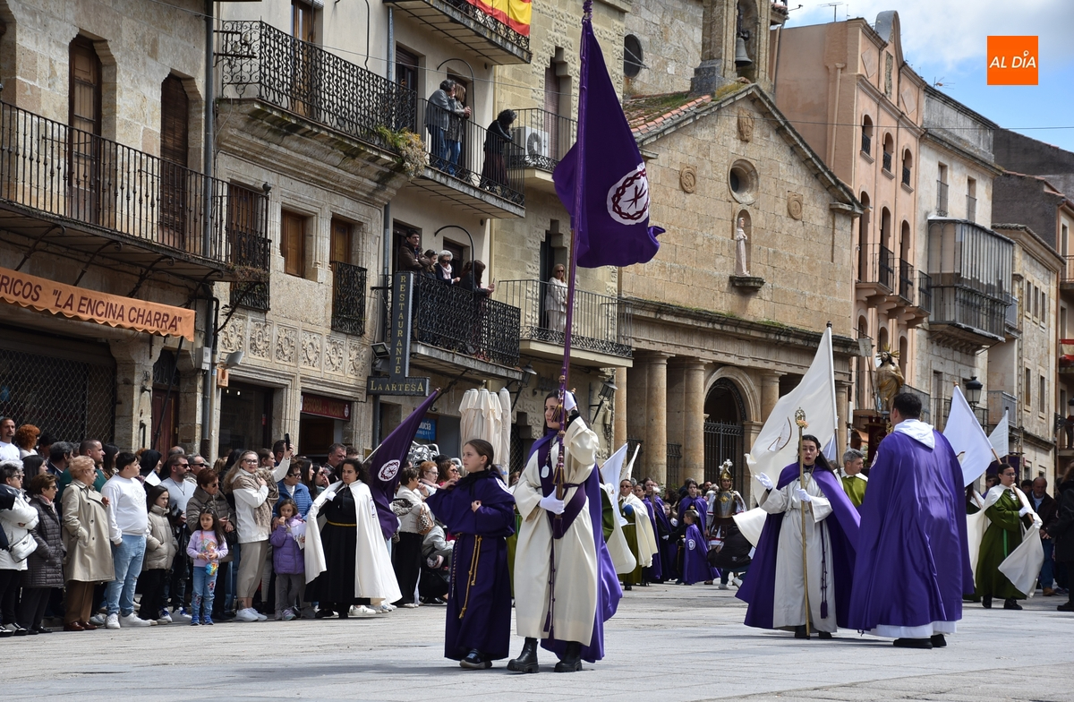 Horas después de comenzar a festejarla con la novedosa procesión de la Sábana Santa, Ciudad Rodrigo tuvo en el tramo final de la mañana del domingo su tradicional procesión de celebración de la Resurrección de Jesucristo, a cargo de la Cofradía de Jesús Nazareno, que procesiona por las calles mirobrigenses la imagen de Jesús Resucitado, que este año se volvió a poner en marcha en la Iglesia de San Agustín.