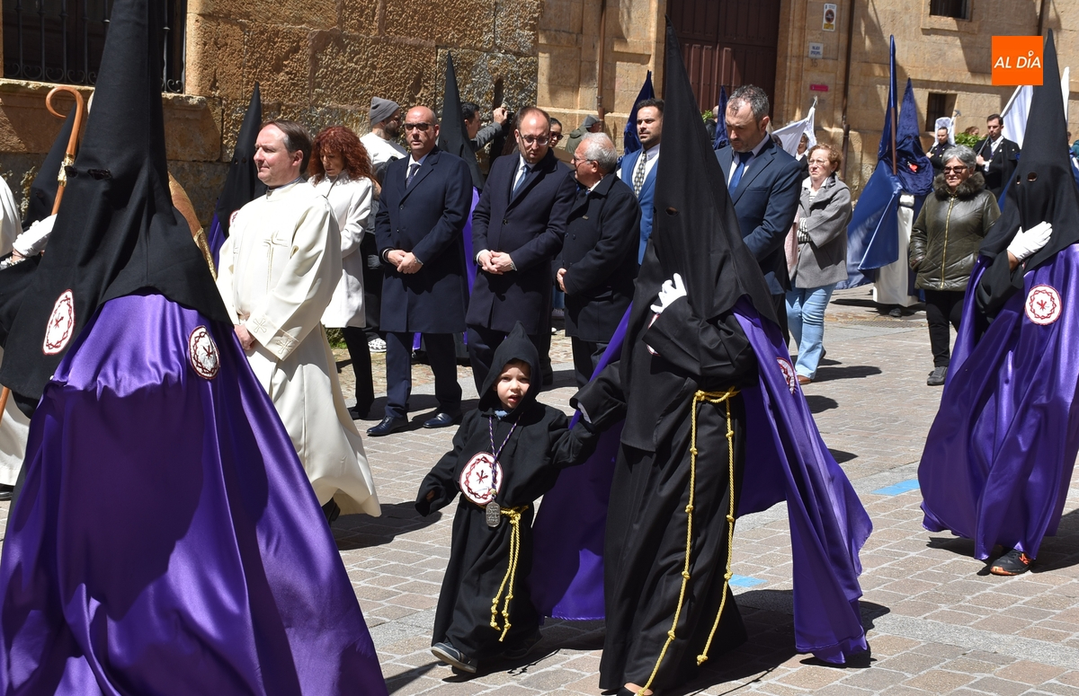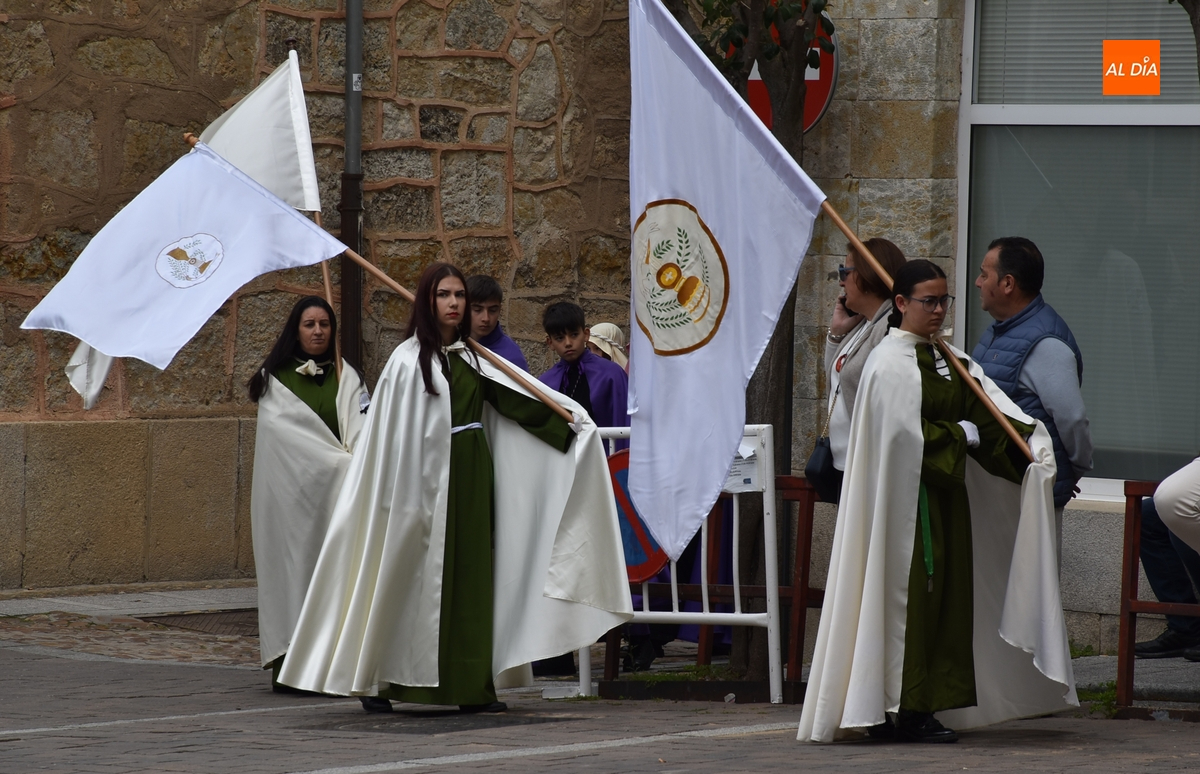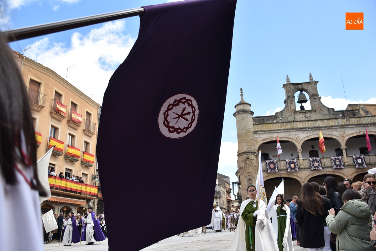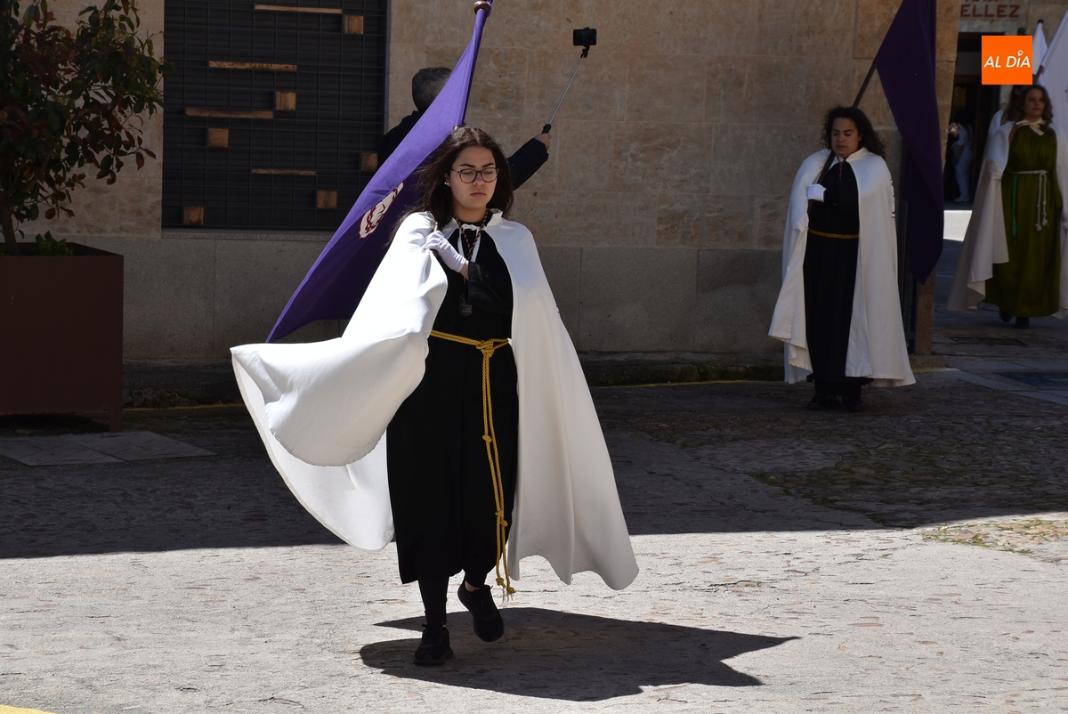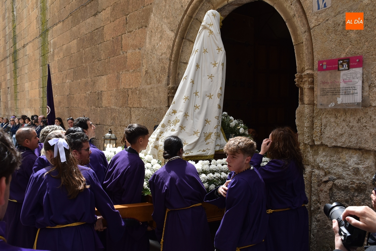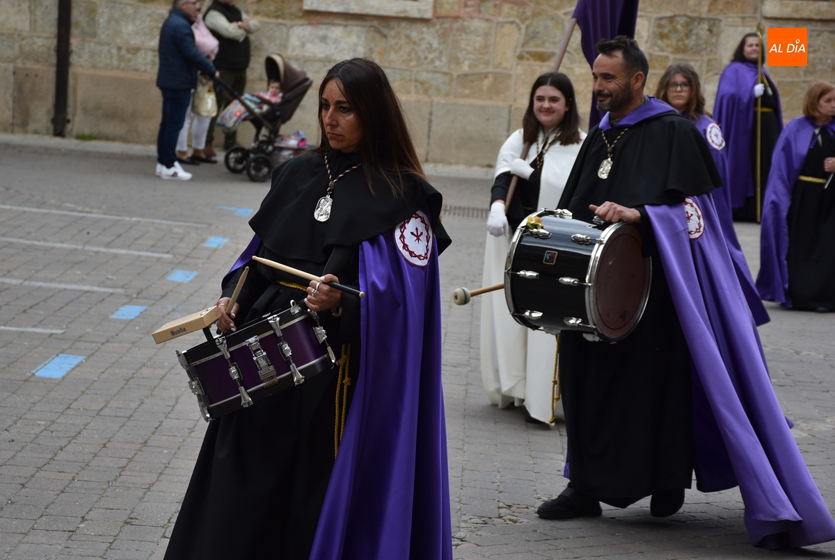 Horas después de comenzar a festejarla con la novedosa procesión de la Sábana Santa, Ciudad Rodrigo tuvo en el tramo final de la mañana del domingo su tradicional procesión de celebración de la Resurrección de Jesucristo, a cargo de la Cofradía de Jesús Nazareno, que procesiona por las calles mirobrigenses la imagen de Jesús Resucitado, que este año se volvió a poner en marcha en la Iglesia de San Agustín.