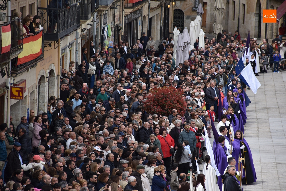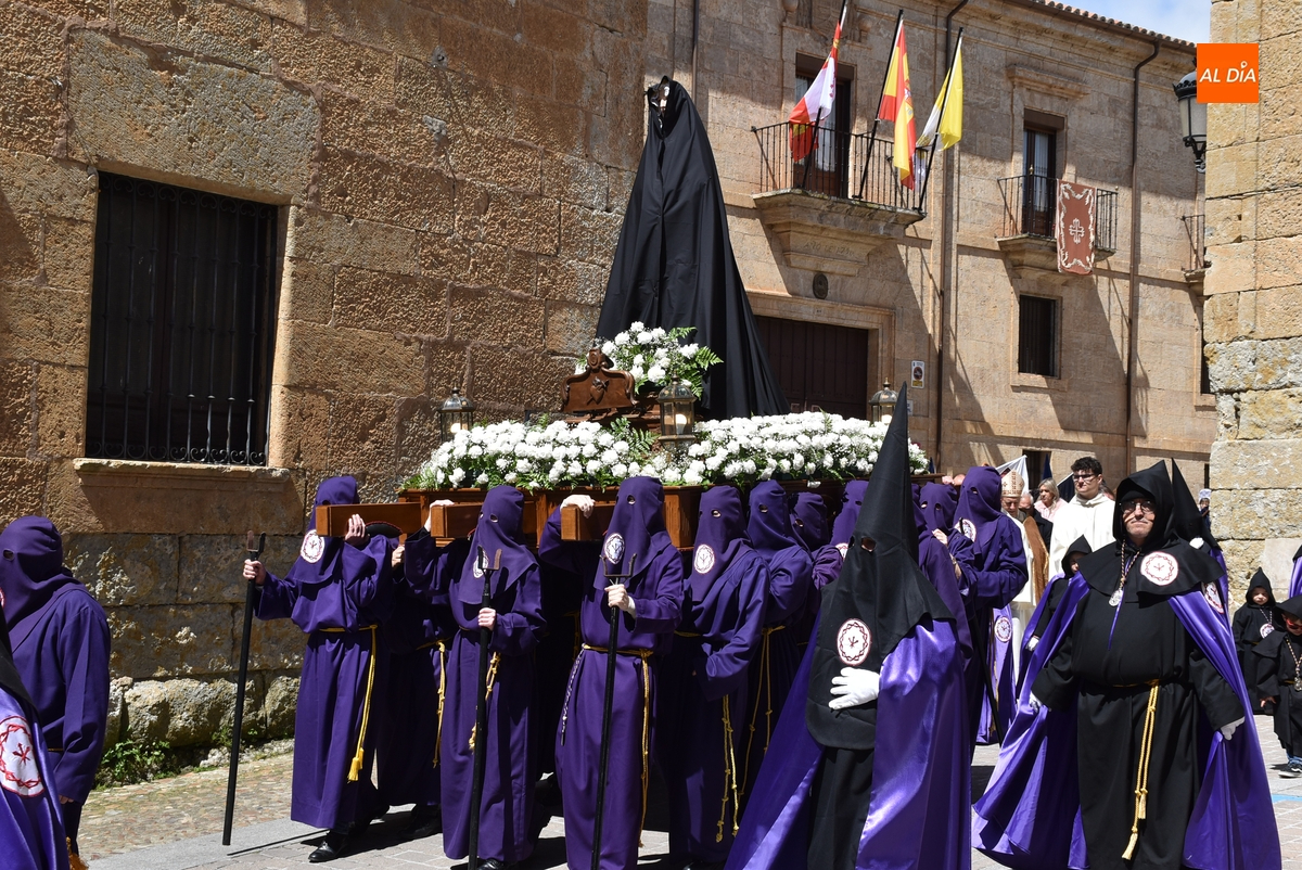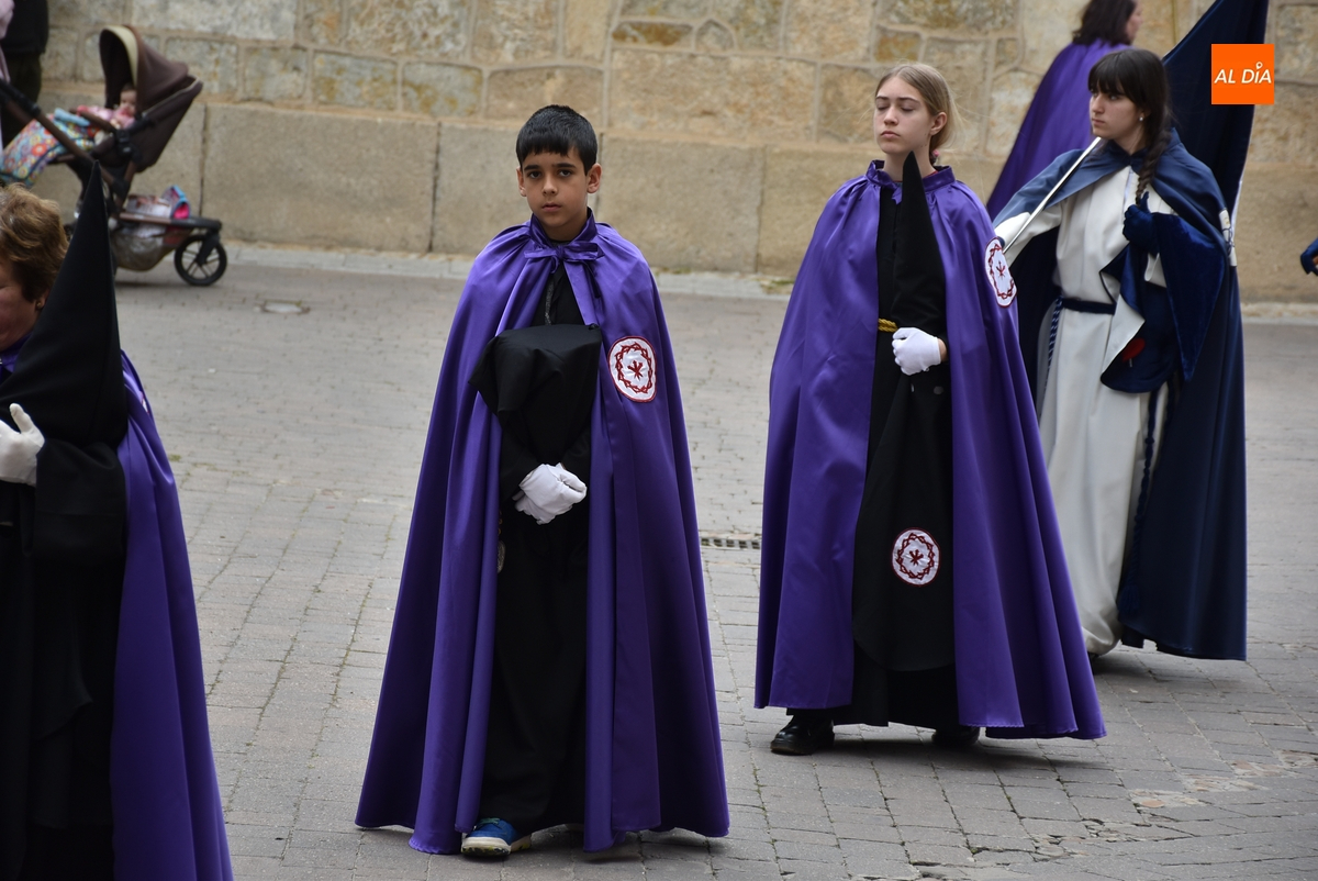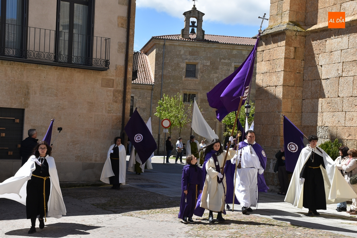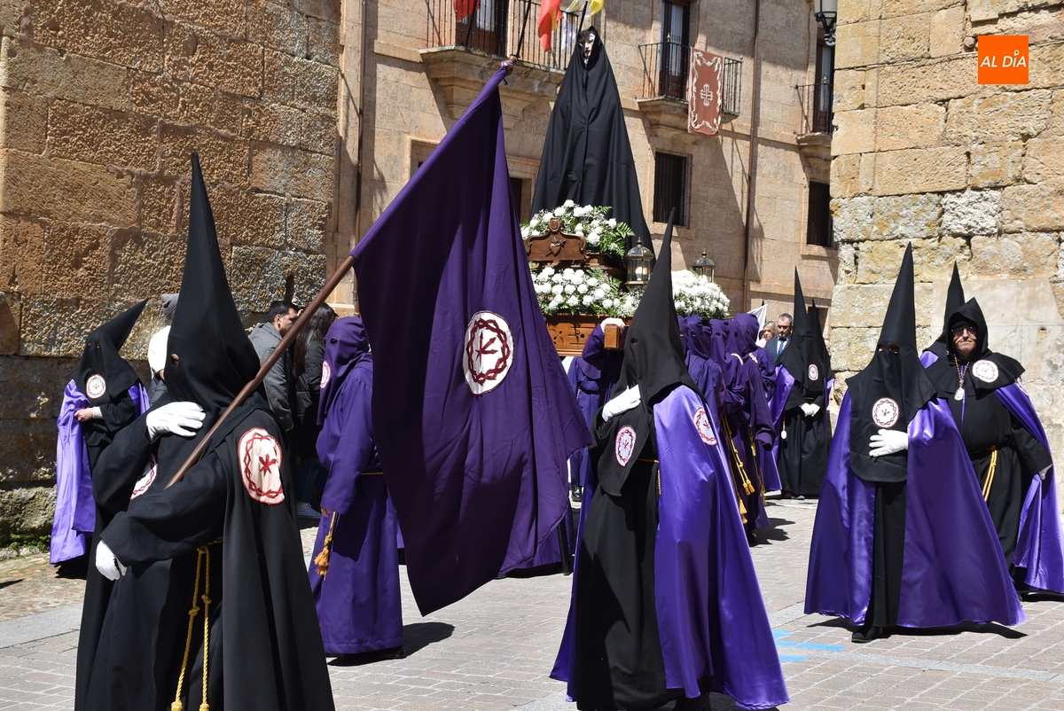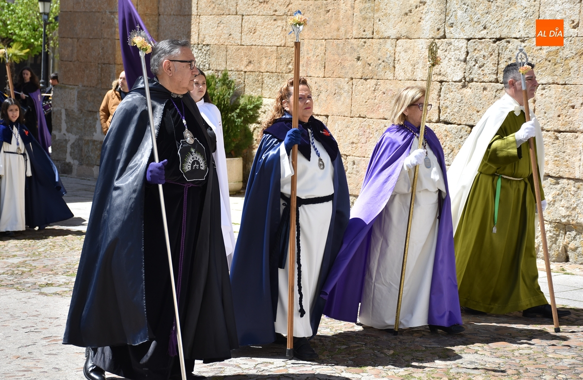 Horas después de comenzar a festejarla con la novedosa procesión de la Sábana Santa, Ciudad Rodrigo tuvo en el tramo final de la mañana del domingo su tradicional procesión de celebración de la Resurrección de Jesucristo, a cargo de la Cofradía de Jesús Nazareno, que procesiona por las calles mirobrigenses la imagen de Jesús Resucitado, que este año se volvió a poner en marcha en la Iglesia de San Agustín.