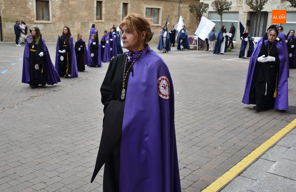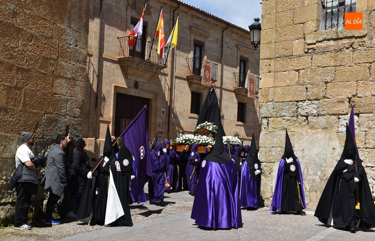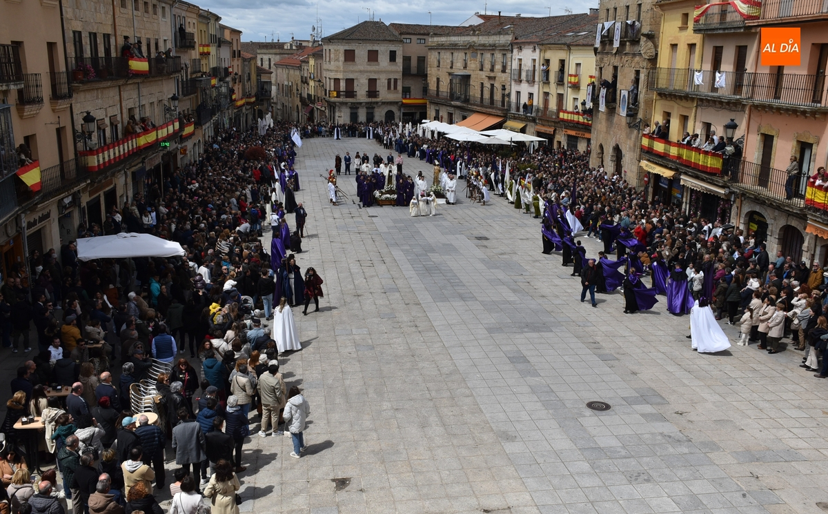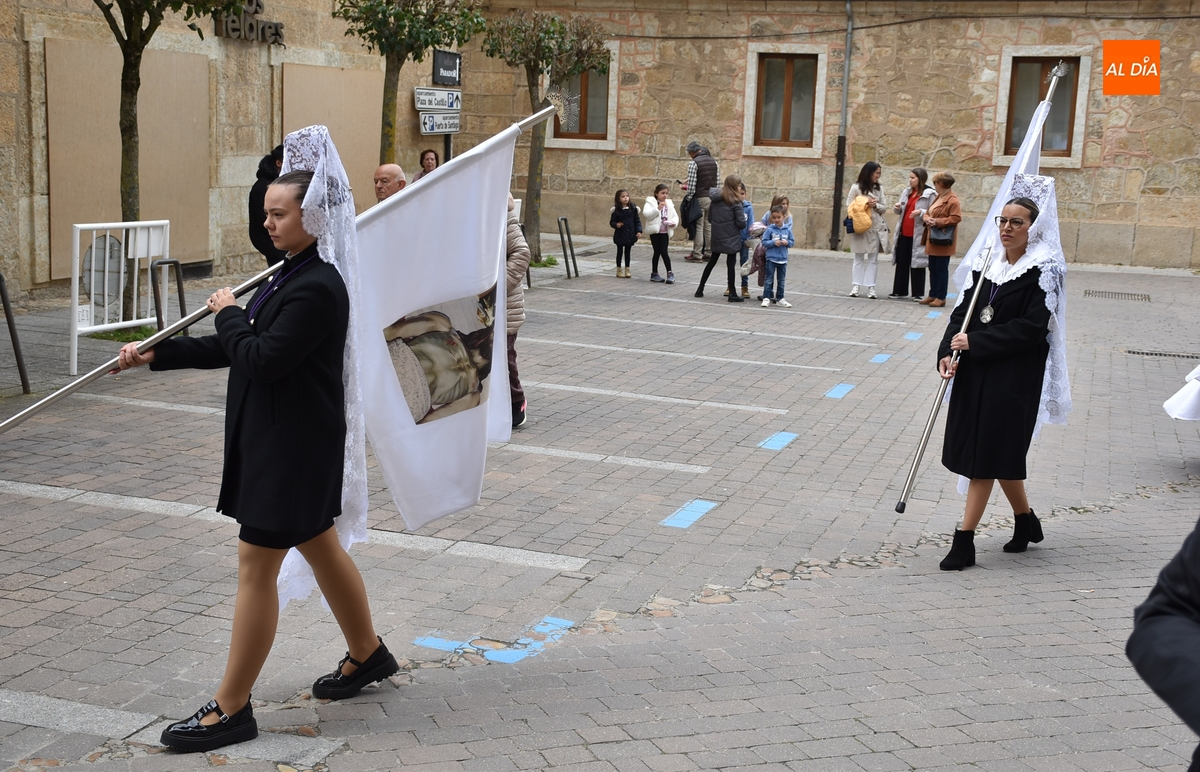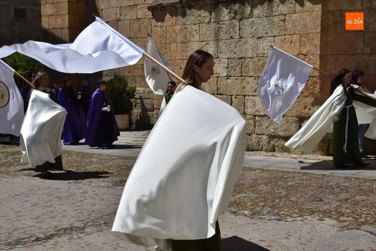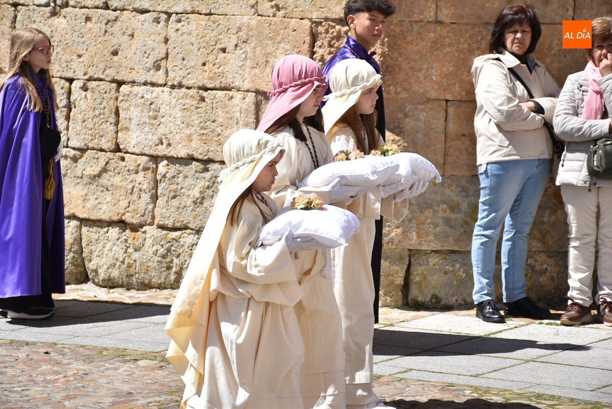 Horas después de comenzar a festejarla con la novedosa procesión de la Sábana Santa, Ciudad Rodrigo tuvo en el tramo final de la mañana del domingo su tradicional procesión de celebración de la Resurrección de Jesucristo, a cargo de la Cofradía de Jesús Nazareno, que procesiona por las calles mirobrigenses la imagen de Jesús Resucitado, que este año se volvió a poner en marcha en la Iglesia de San Agustín.