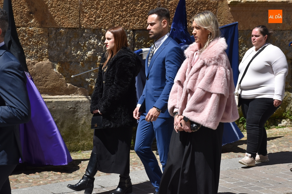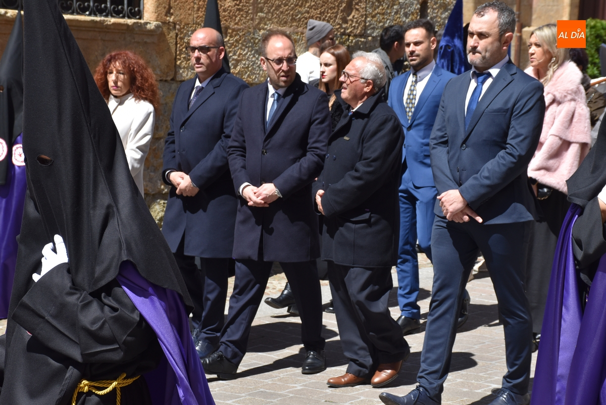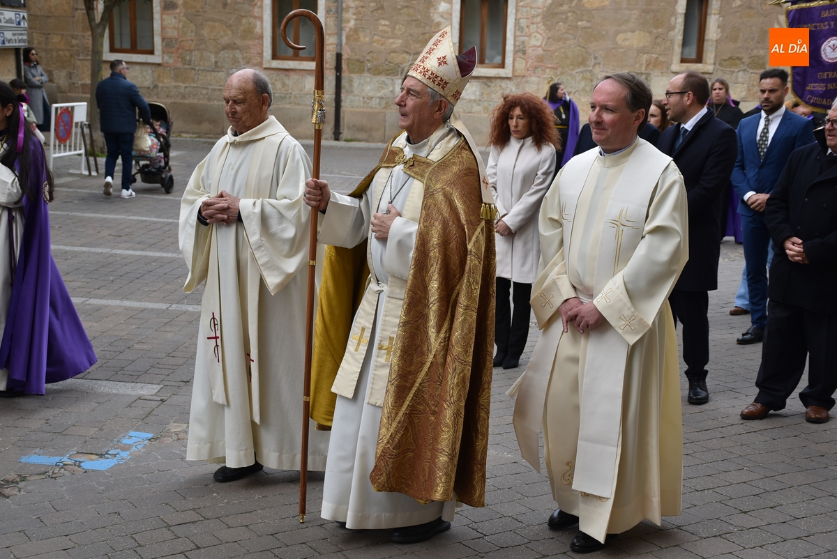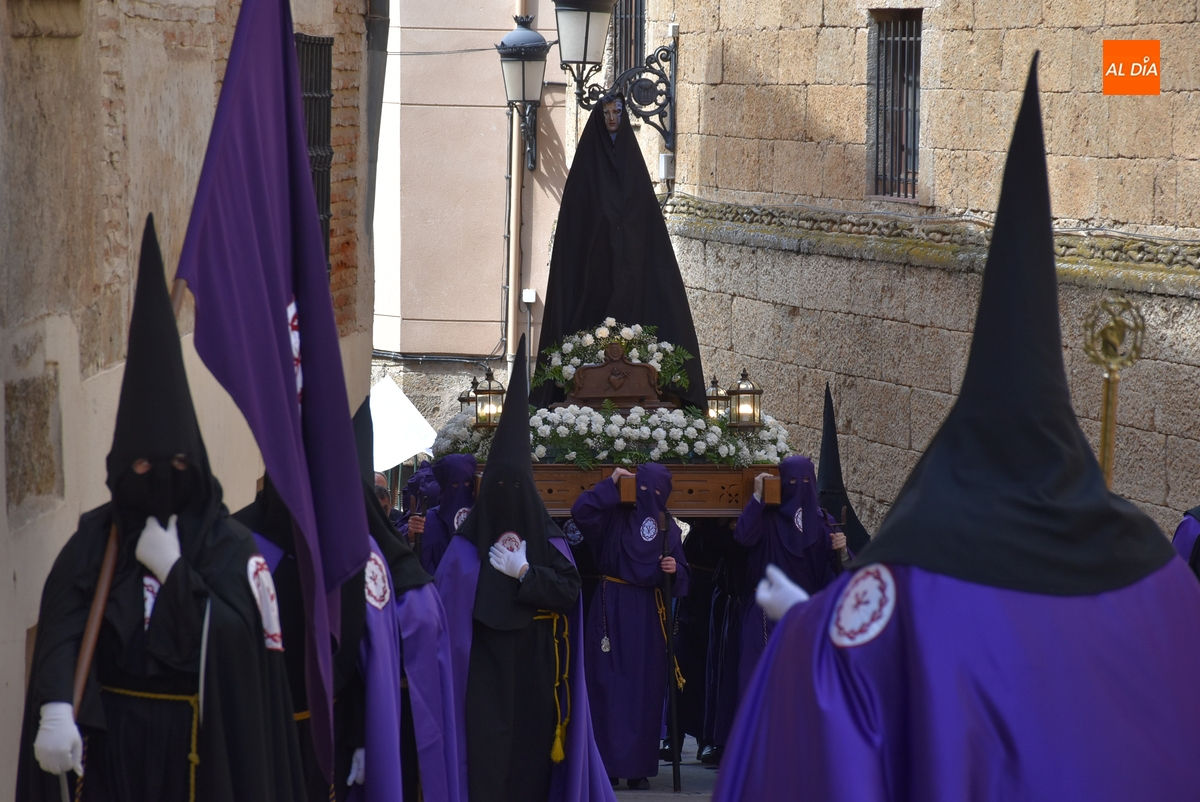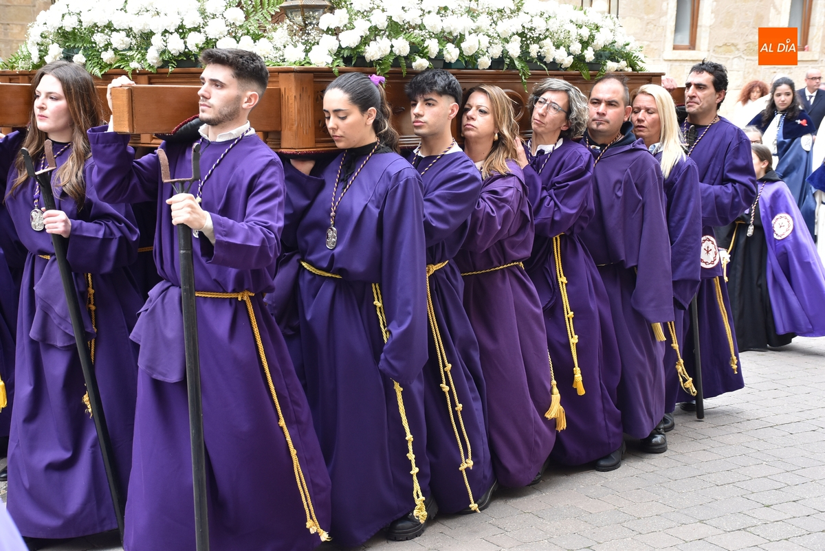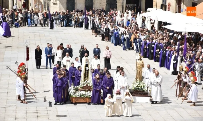 Unos minutos después de ponerse en marcha el Resucitado (que avanzó por Cristóbal de Castillejo, Plaza de San Pedro, Gigantes y Rúa del Sol), arrancó su ruta en la Catedral de Santa María La Dolorosa, quién estuvo acompañada por el Obispo José Luis Retana, el Vicario General de la Diócesis, José María Rodríguez-Veleiro, el sacerdote Bernardino San Nicasio, y como novedad, por miembros de la Corporación Municipal: Marcos Iglesias, Ramón Sastre, José Manuel Jerez, Belén Barco, Víctor Gómez, Rubén Benito, Carmen Lorenzo y Raquel Enríquez.