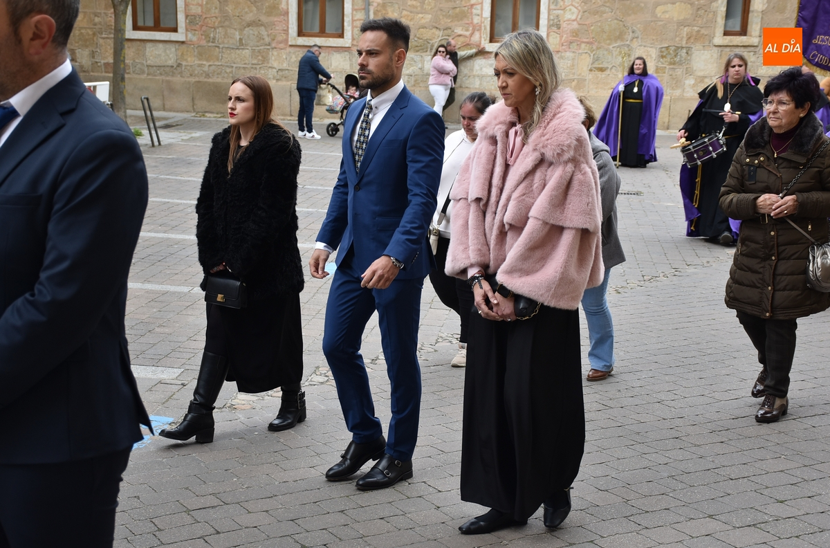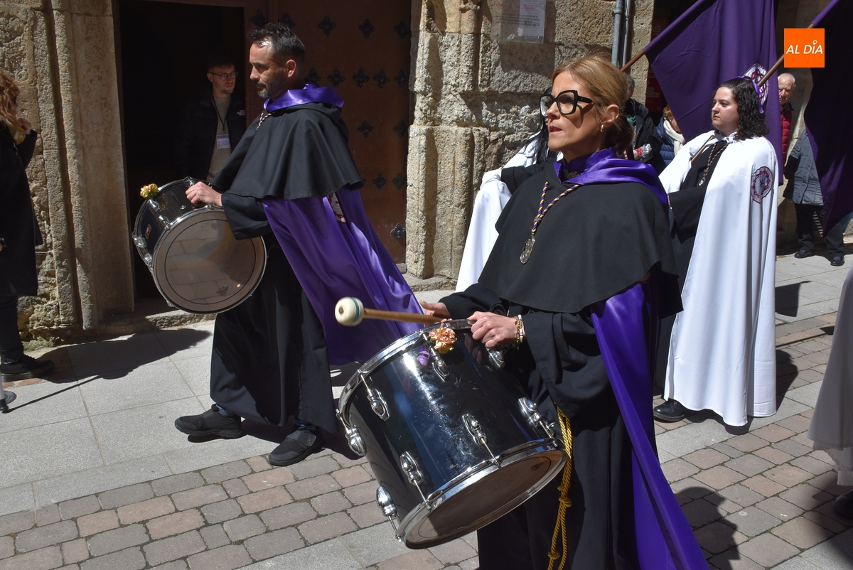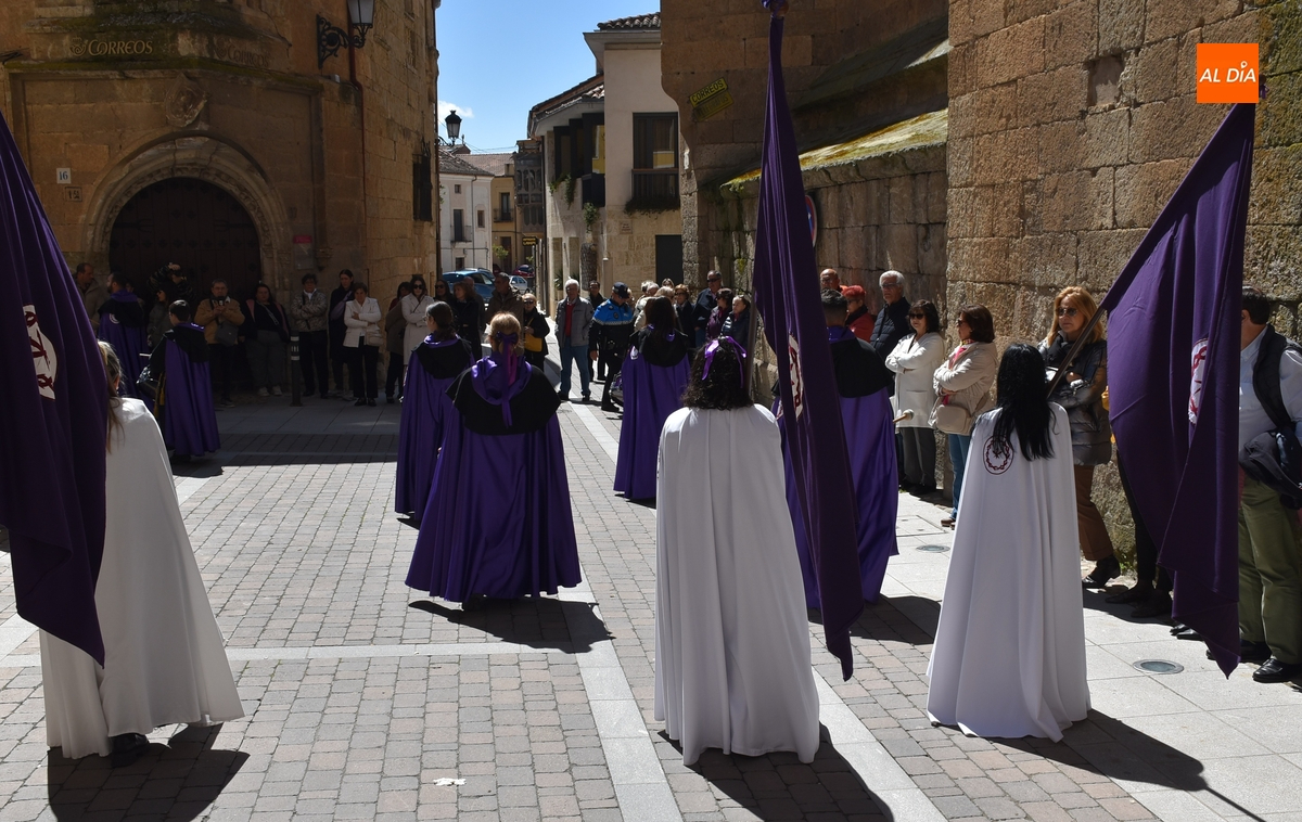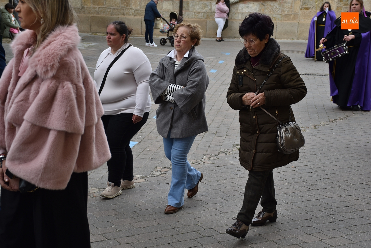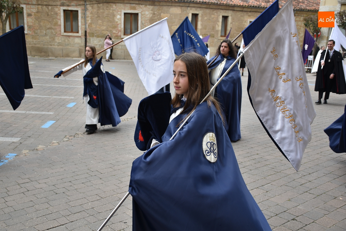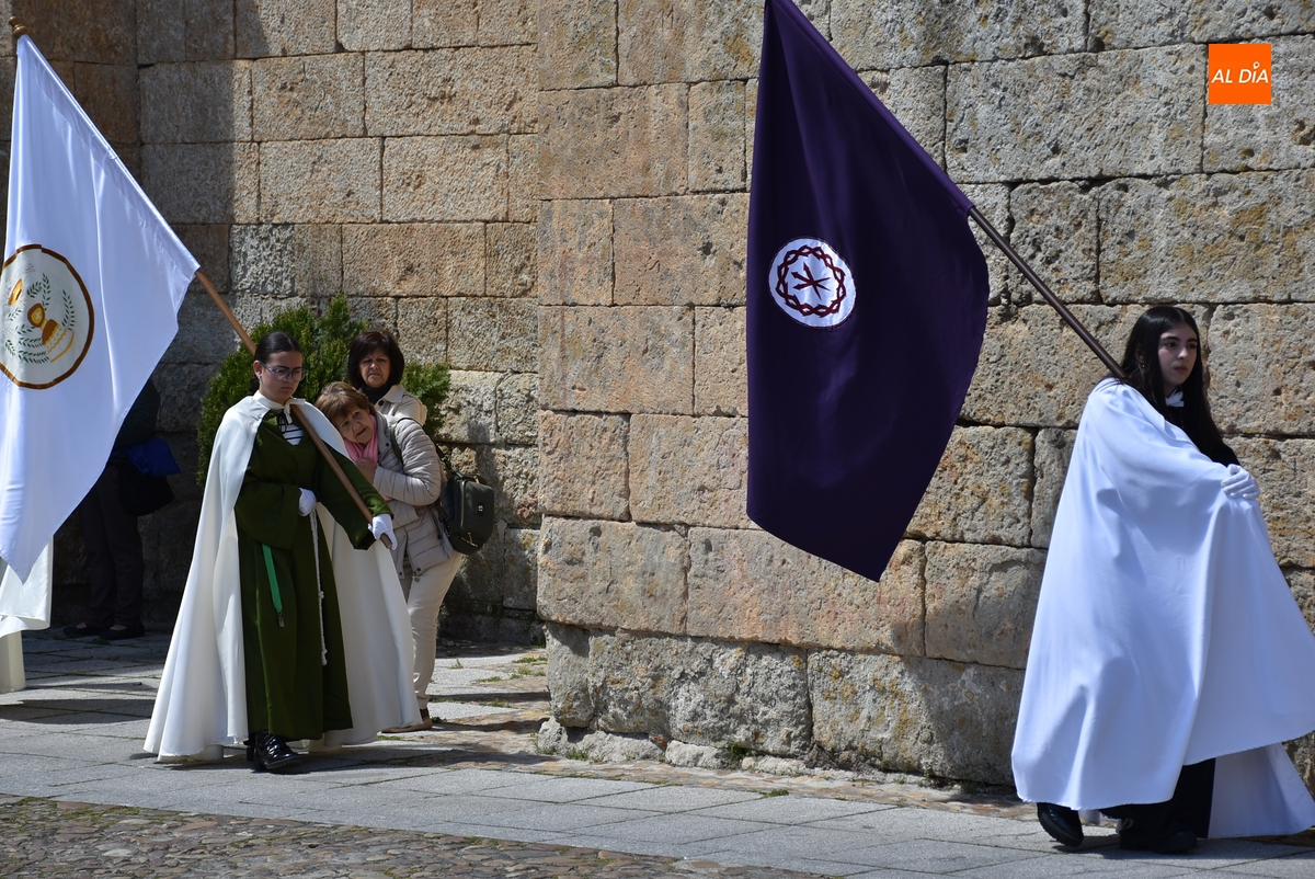 Unos minutos después de ponerse en marcha el Resucitado (que avanzó por Cristóbal de Castillejo, Plaza de San Pedro, Gigantes y Rúa del Sol), arrancó su ruta en la Catedral de Santa María La Dolorosa, quién estuvo acompañada por el Obispo José Luis Retana, el Vicario General de la Diócesis, José María Rodríguez-Veleiro, el sacerdote Bernardino San Nicasio, y como novedad, por miembros de la Corporación Municipal: Marcos Iglesias, Ramón Sastre, José Manuel Jerez, Belén Barco, Víctor Gómez, Rubén Benito, Carmen Lorenzo y Raquel Enríquez.