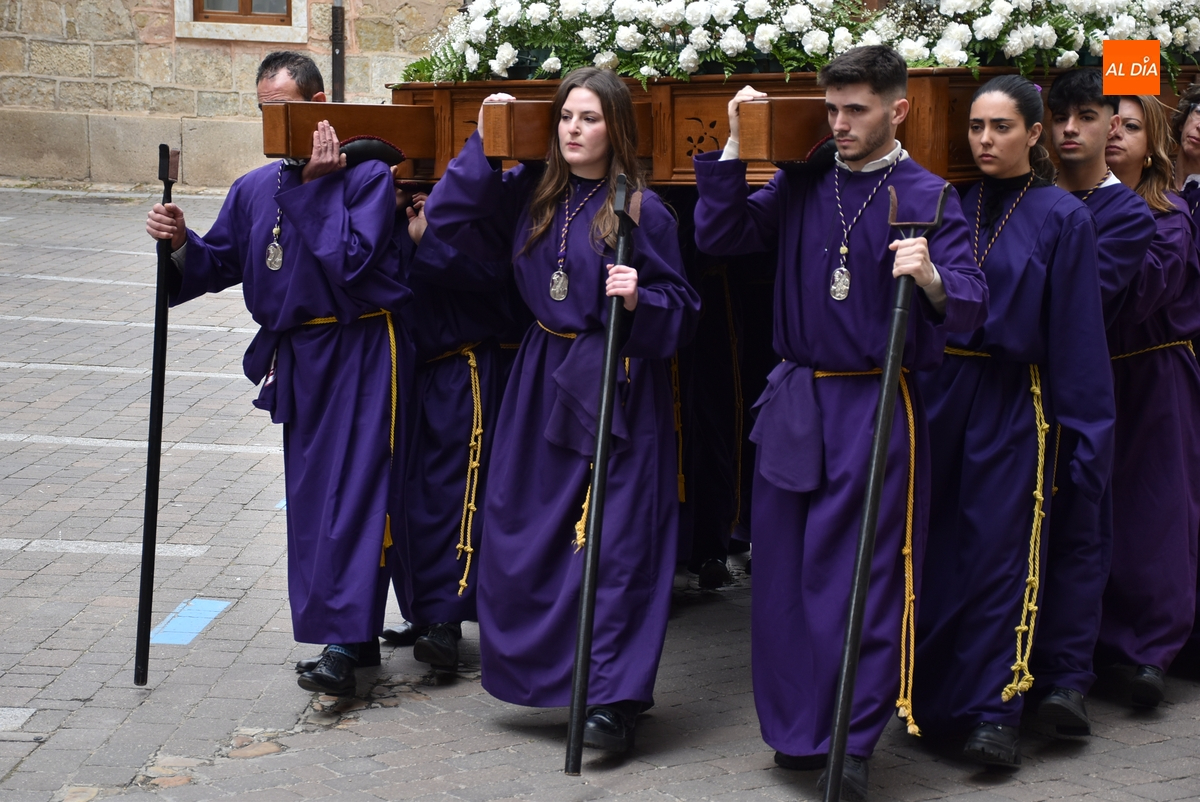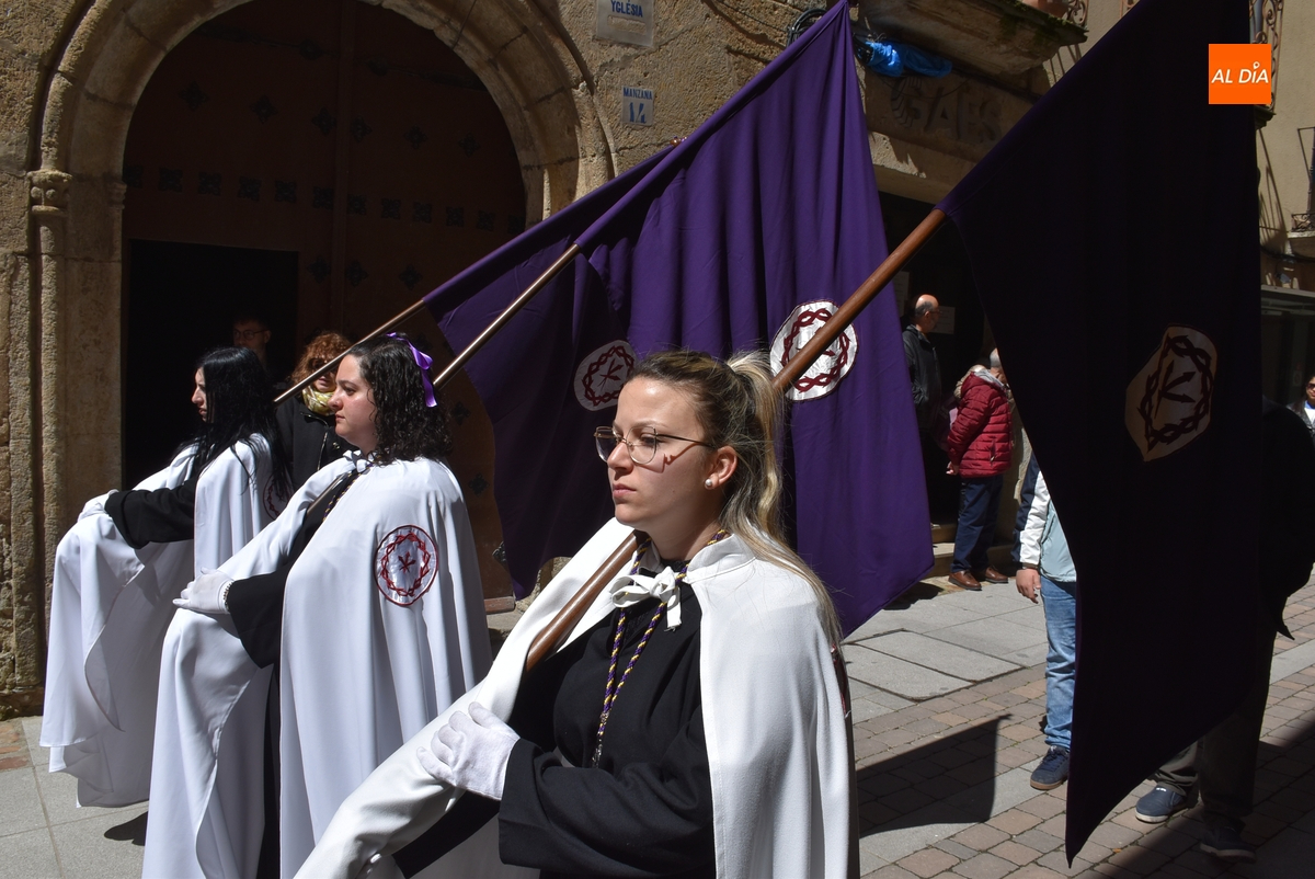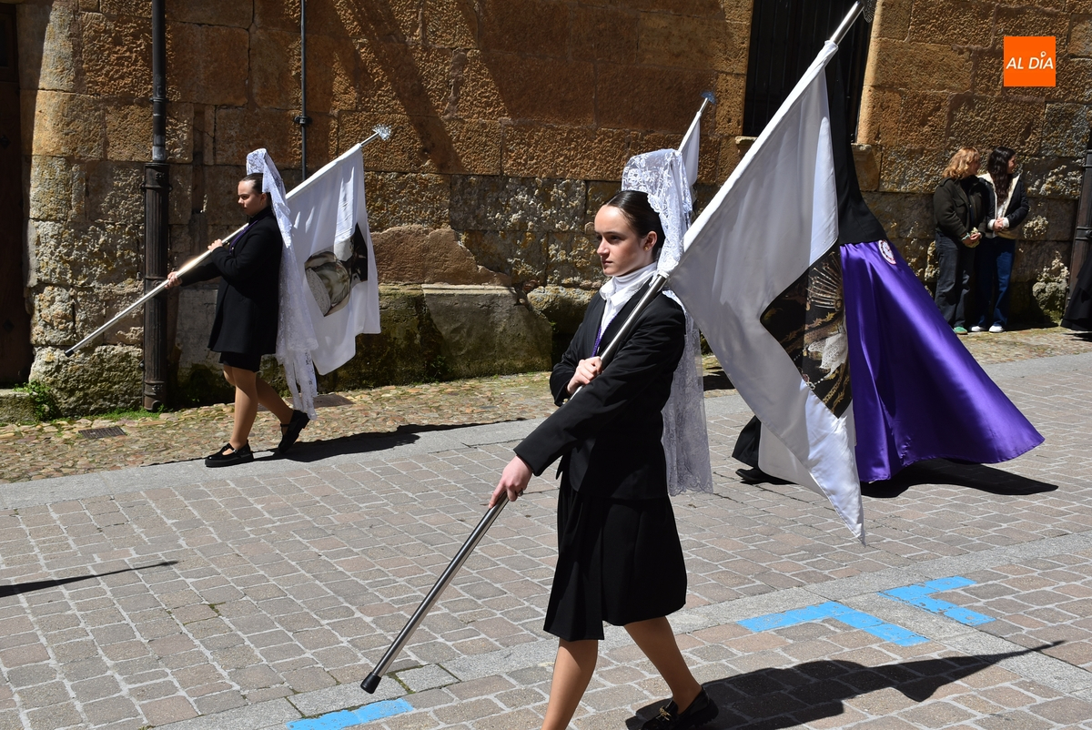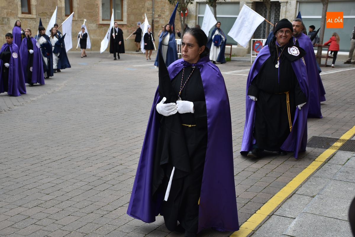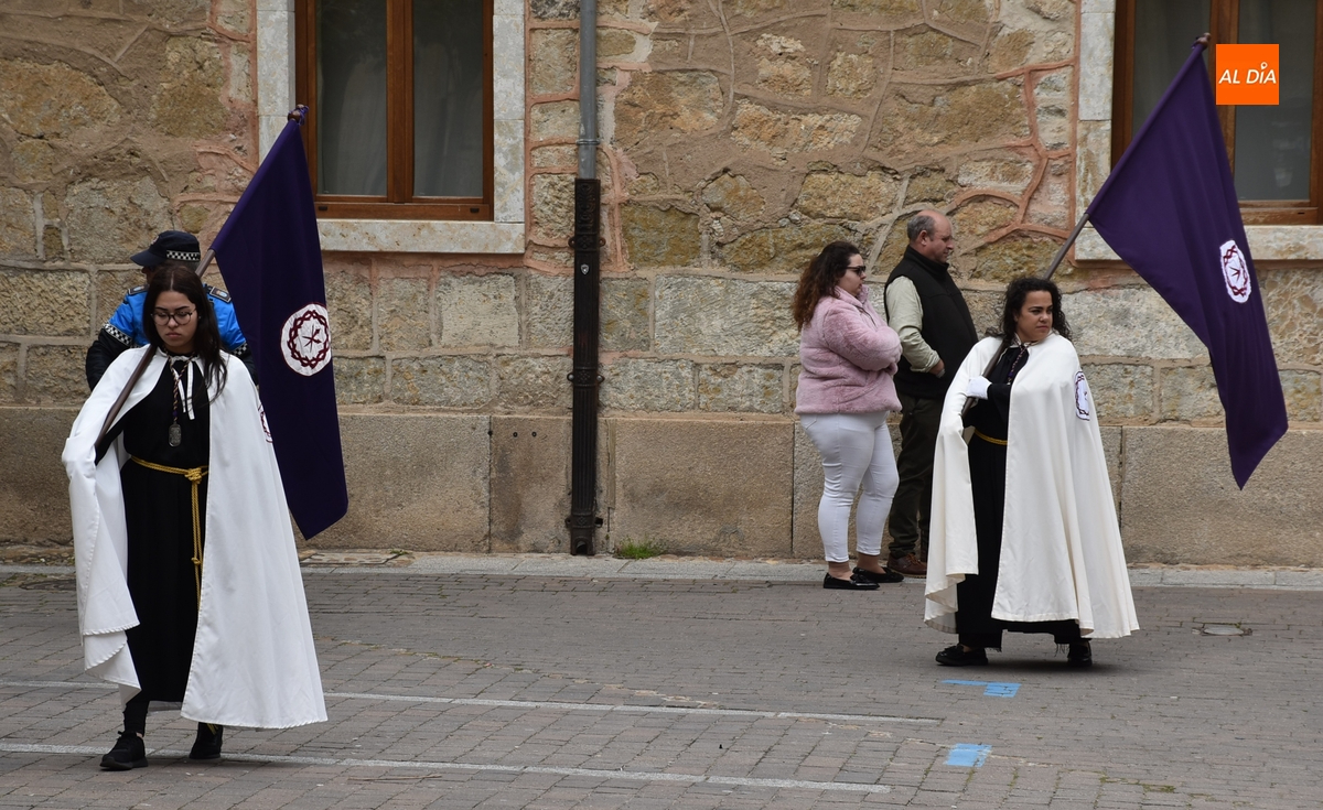De esta parte de la procesión, que avanzó por la Plazuela de San Salvador, Díez Taravilla y La Colada, formaron parte cofrades con capuchón y banderas de la propia Cofradía de Jesús Nazareno; banderas de la Cofradía de Las Angustias (asimismo con capuchón); y banderas blancas de la Cofradía de La Soledad, que fueron portadas la mayoría por mujeres con mantilla, también de color blanco.