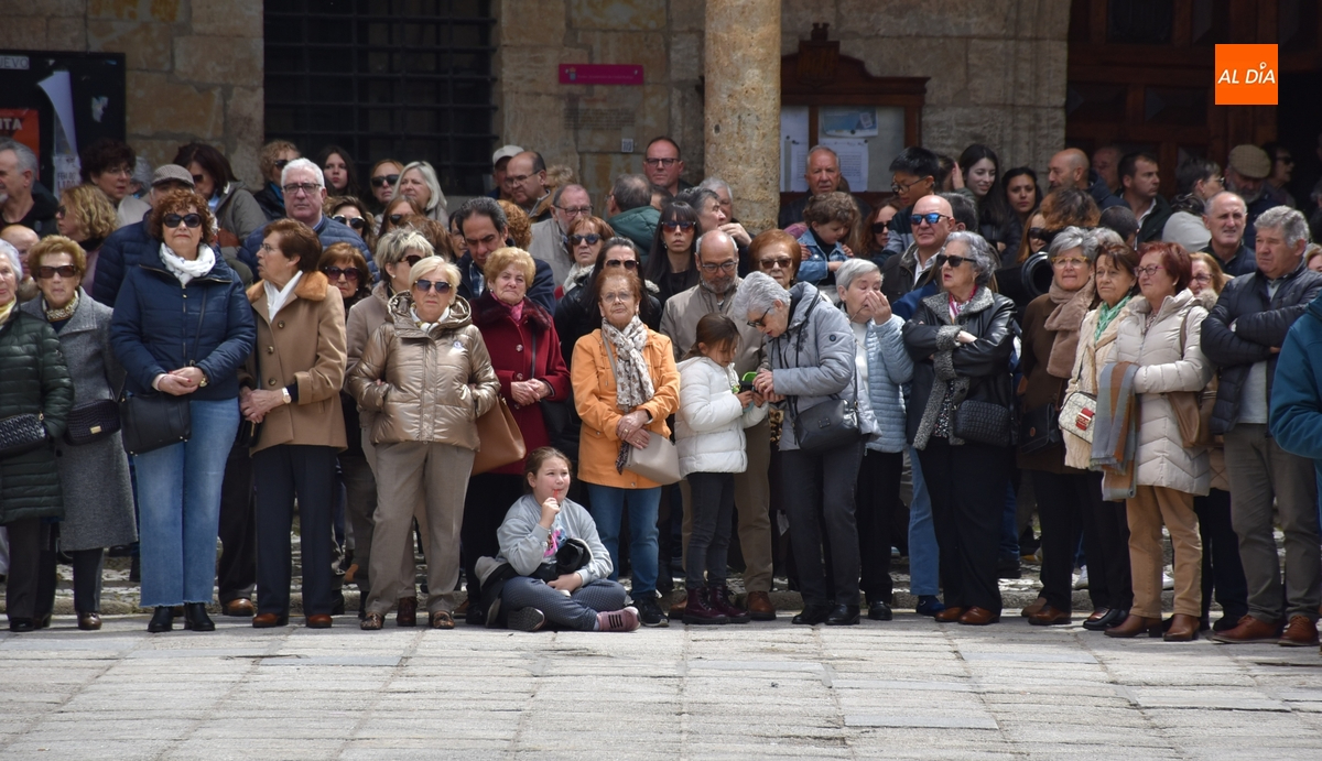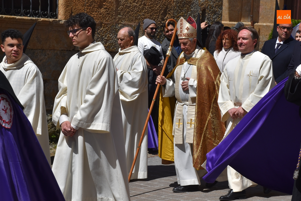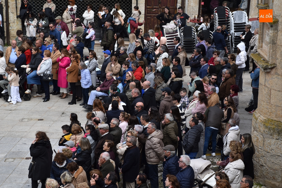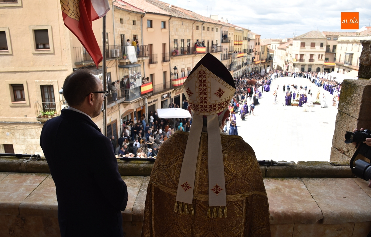 Acto seguido, subieron a esa balconada el Obispo José Luis Retana y el alcalde Marcos Iglesias, pronunciando el primero de ellos unas palabras a la enorme multitud congregada en el ágora mirobrigense. Finalizadas esas palabras, ambos bajaron de nuevo a la Plaza para reintegrarse en la comitiva, que ya unida cogió la calle Sánchez Arjona, para acabar llegando a la Iglesia de San Agustín, donde se puso el punto y final a la Semana Santa Mirobrigense 2025.