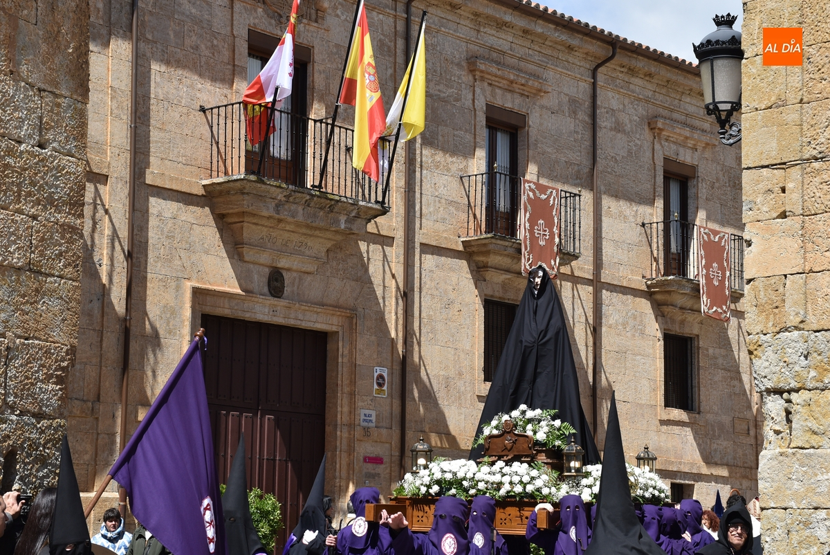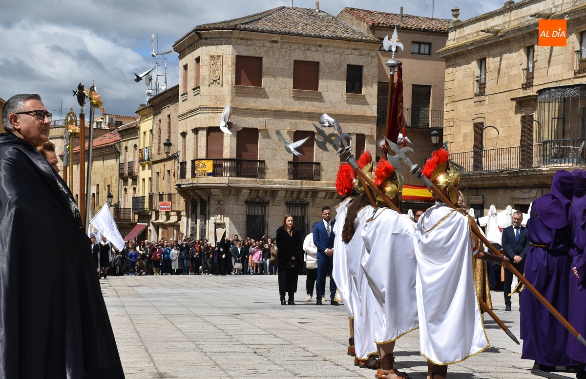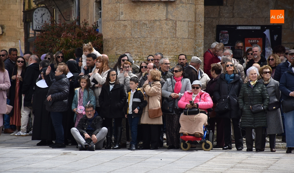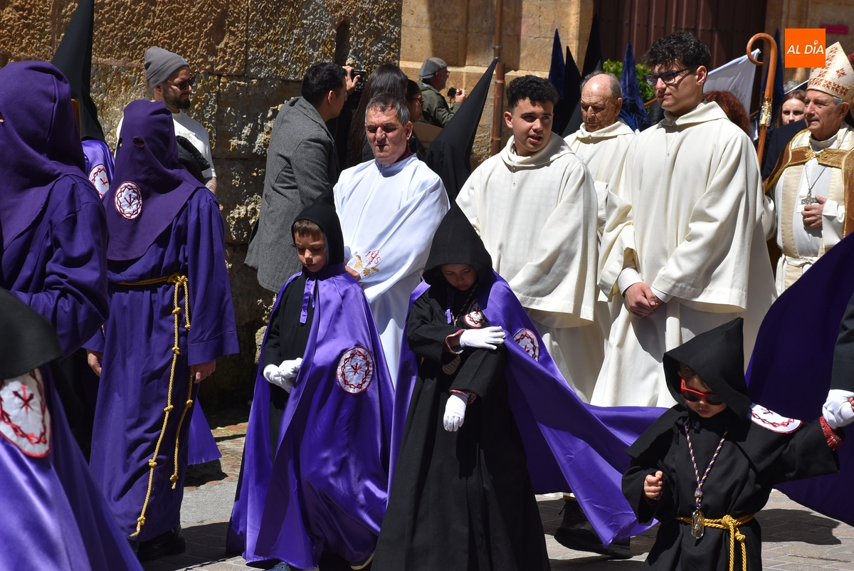 Acto seguido, subieron a esa balconada el Obispo José Luis Retana y el alcalde Marcos Iglesias, pronunciando el primero de ellos unas palabras a la enorme multitud congregada en el ágora mirobrigense. Finalizadas esas palabras, ambos bajaron de nuevo a la Plaza para reintegrarse en la comitiva, que ya unida cogió la calle Sánchez Arjona, para acabar llegando a la Iglesia de San Agustín, donde se puso el punto y final a la Semana Santa Mirobrigense 2025.