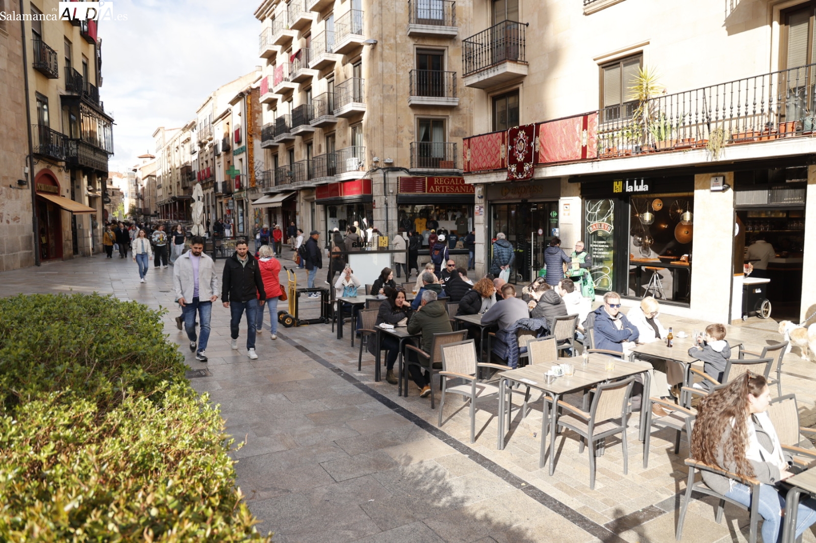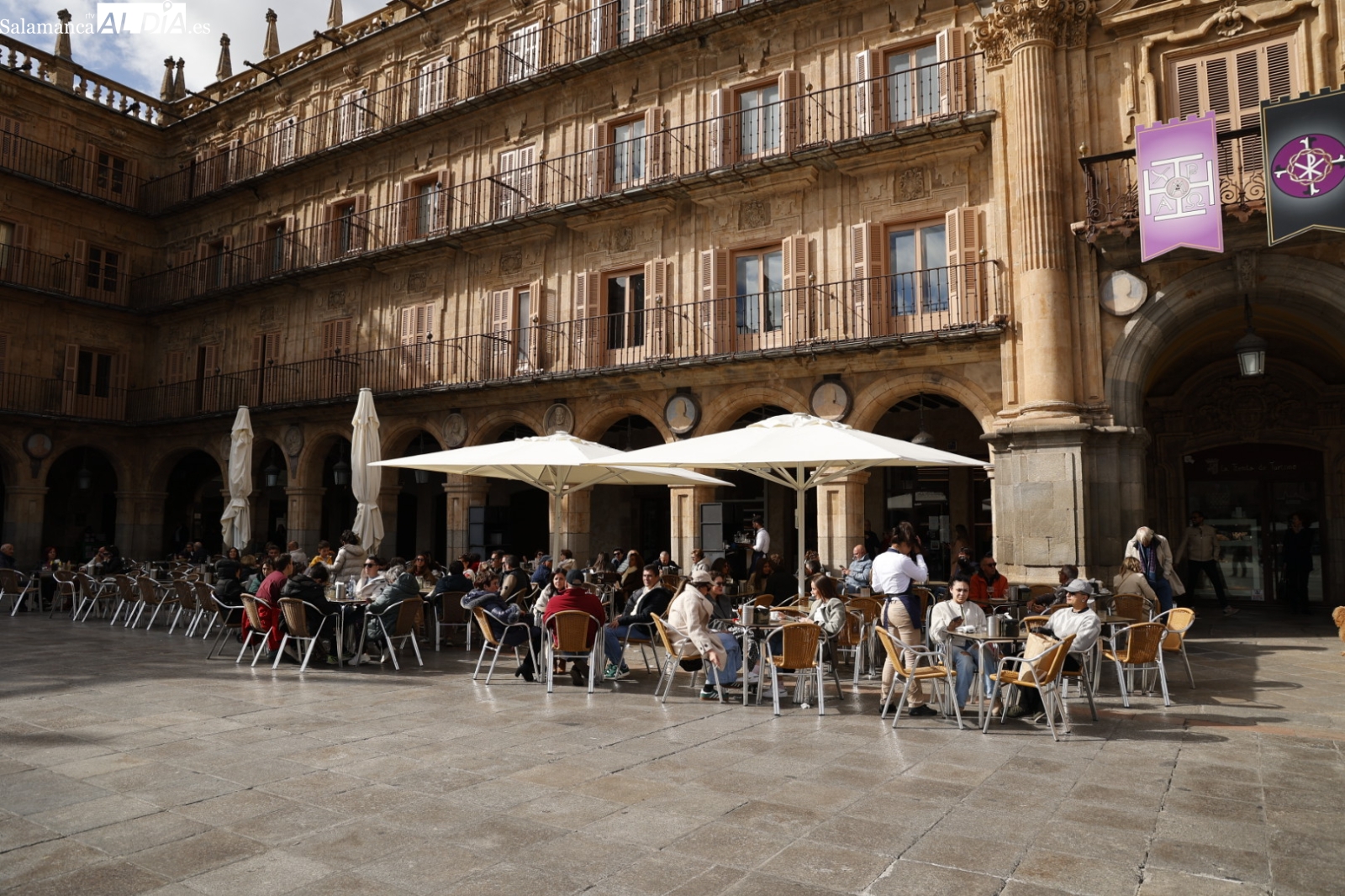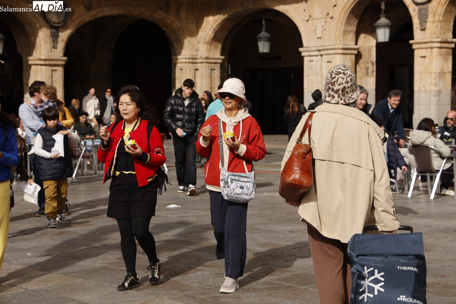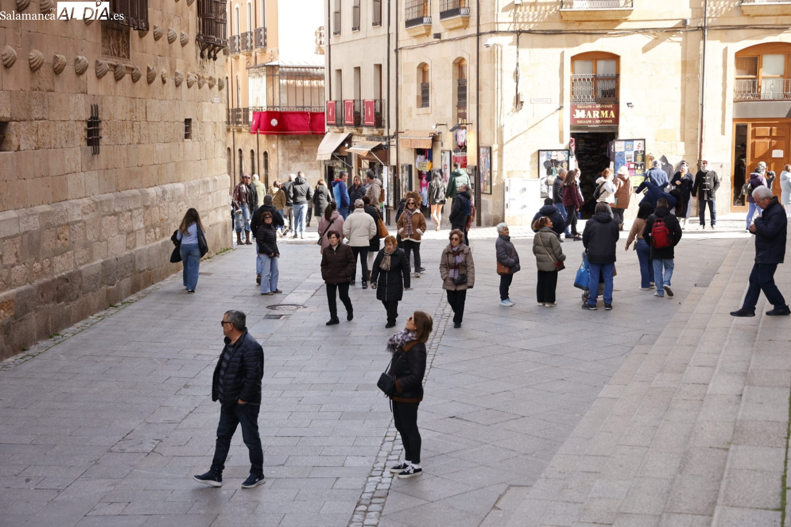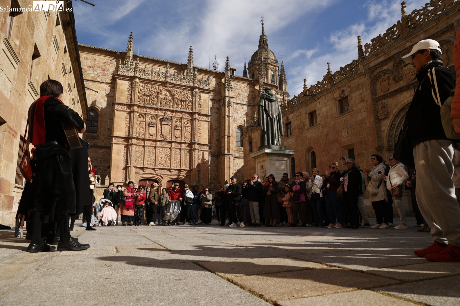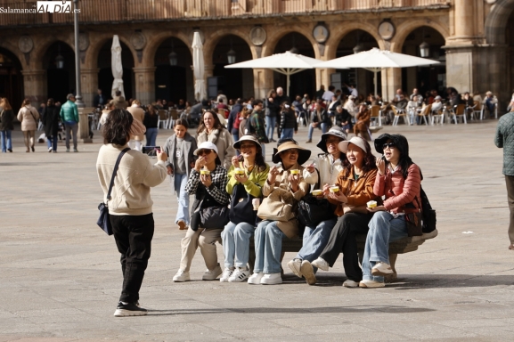 La Plaza Mayor y sus alrededores han sido nuevamente el epicentro de la actividad, demostrando que el encanto de la ciudad sigue atrayendo a todo aquel que la visita. Incluso la tuna ha actuado en el Patio de Escuelas, despertando una gran expectación entre los turistas, que no han dudado en inmortalizar este momento con sus cámaras y sus teléfonos móviles.