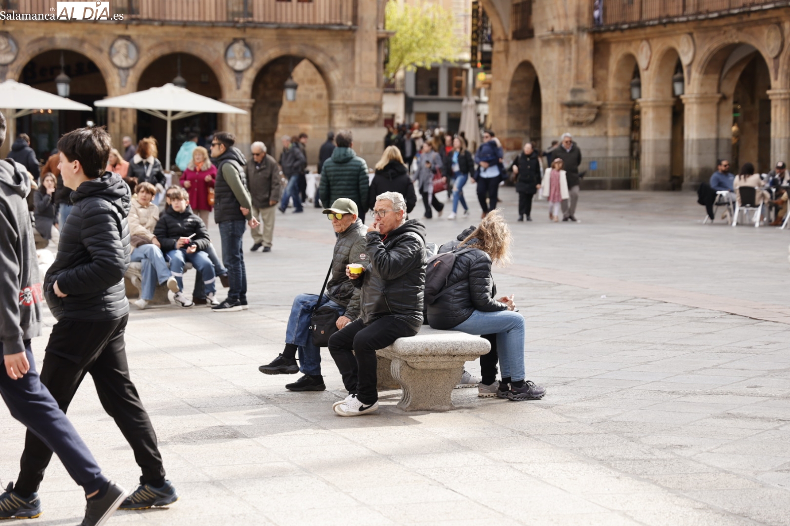 Aunque la Semana Santa ya ha concluido en la mañana de este Domingo de Resurrección con la procesión del Encuentro, Salamanca ha seguido palpitando con la presencia de turistas. Durante la tarde de hoy, el centro histórico se ha mostrado repleto de visitantes que, desafiando la fresca temperatura, han aprovechado los rayos de sol para pasear y disfrutar del ambiente.