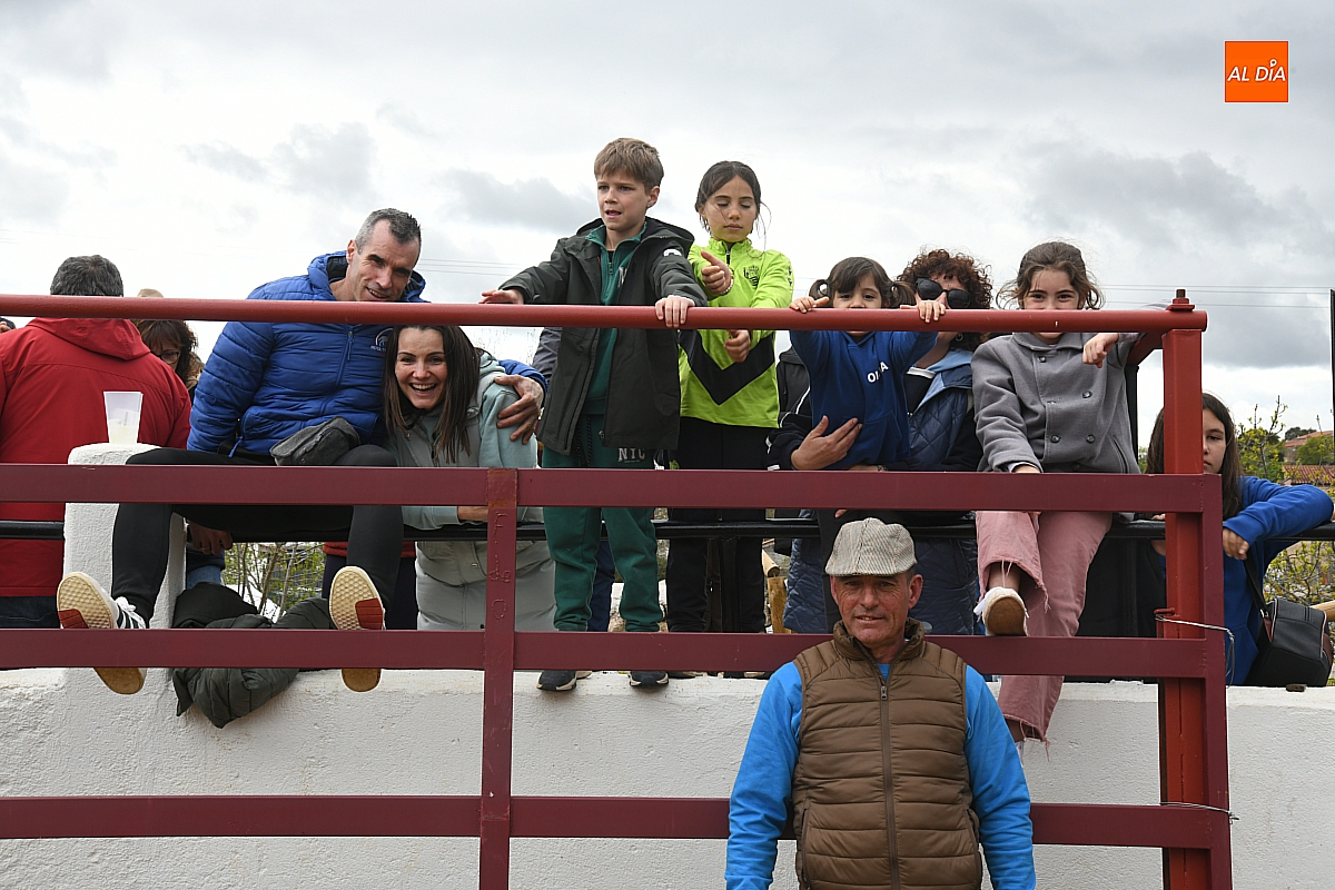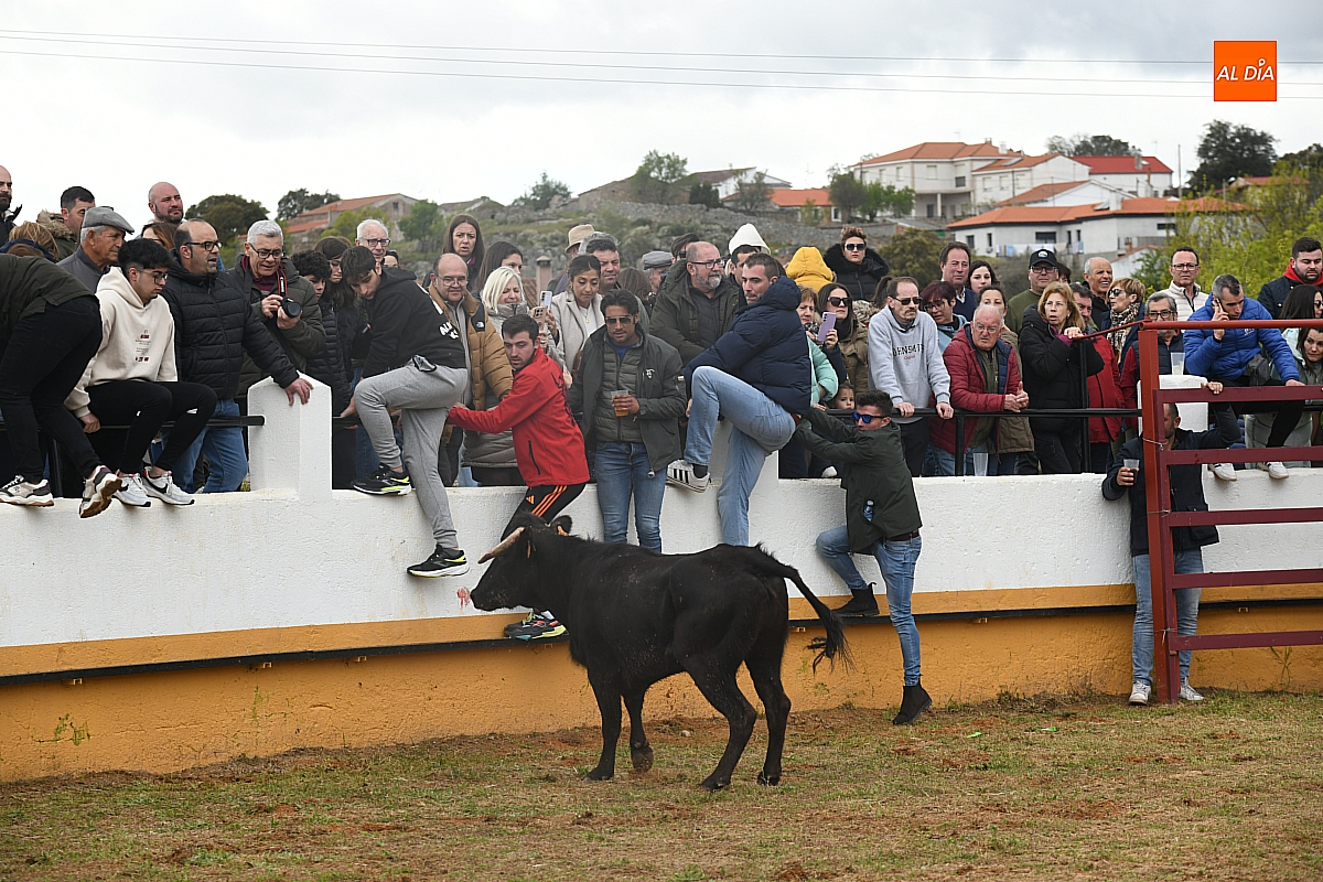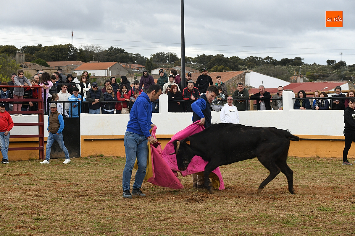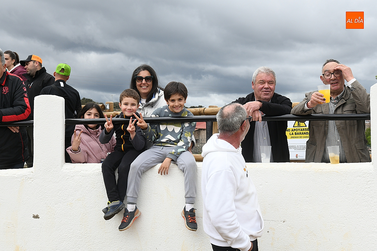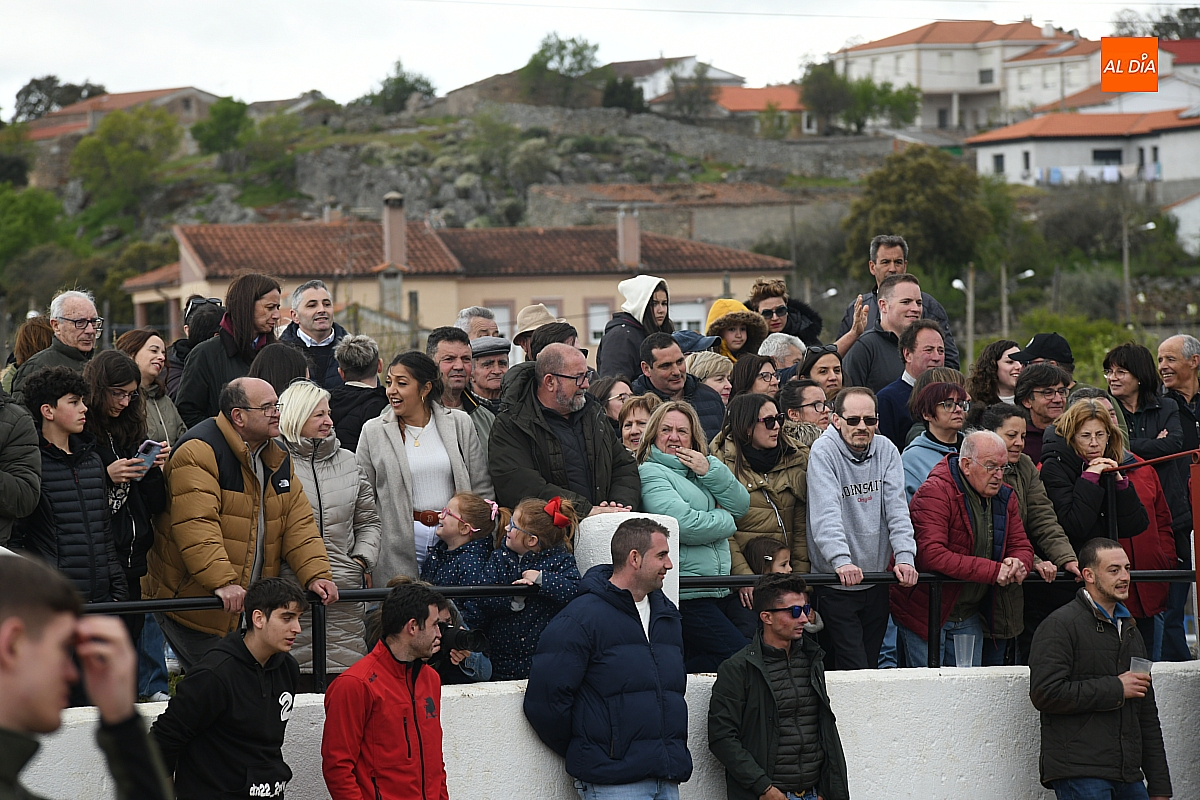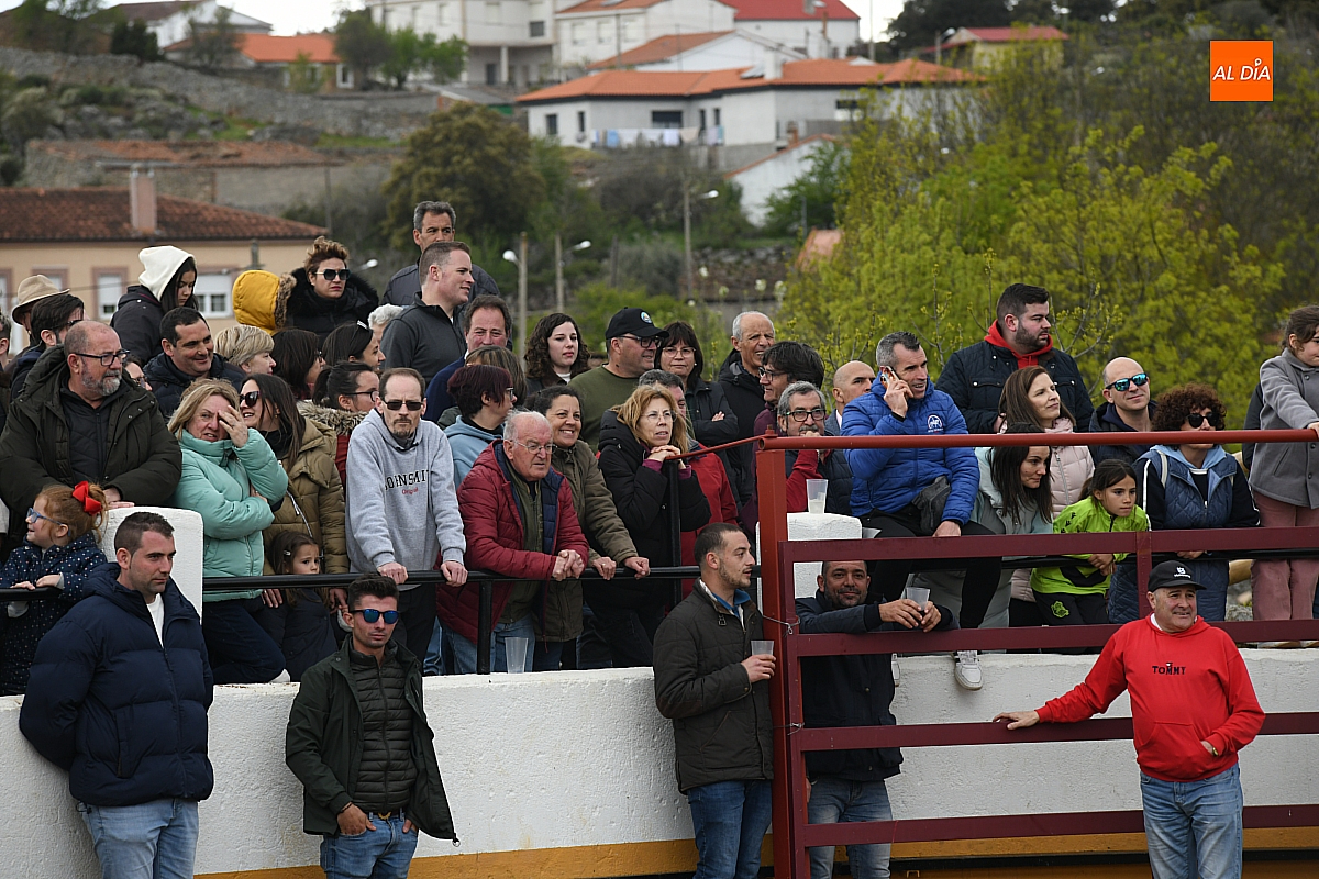 Durante la capea, jóvenes —y no tan jóvenes— disfrutaron de un ambiente animado en el que los más atrevidos demostraron su destreza ante las reses. Los más pequeños también tuvieron su espacio de diversión con carretones, fomentando así su afición al mundo taurino, tan arraigado en tierras salmantinas y portuguesas cercanas a La Raya.