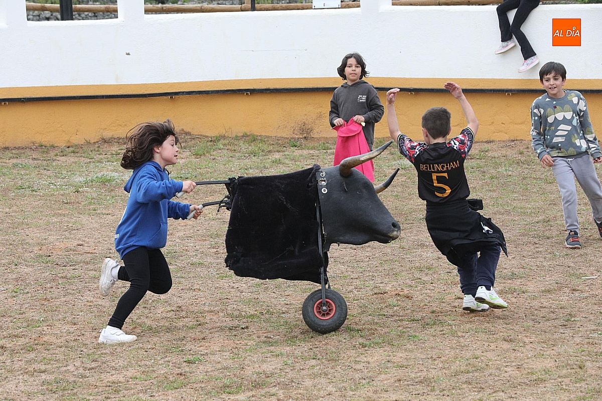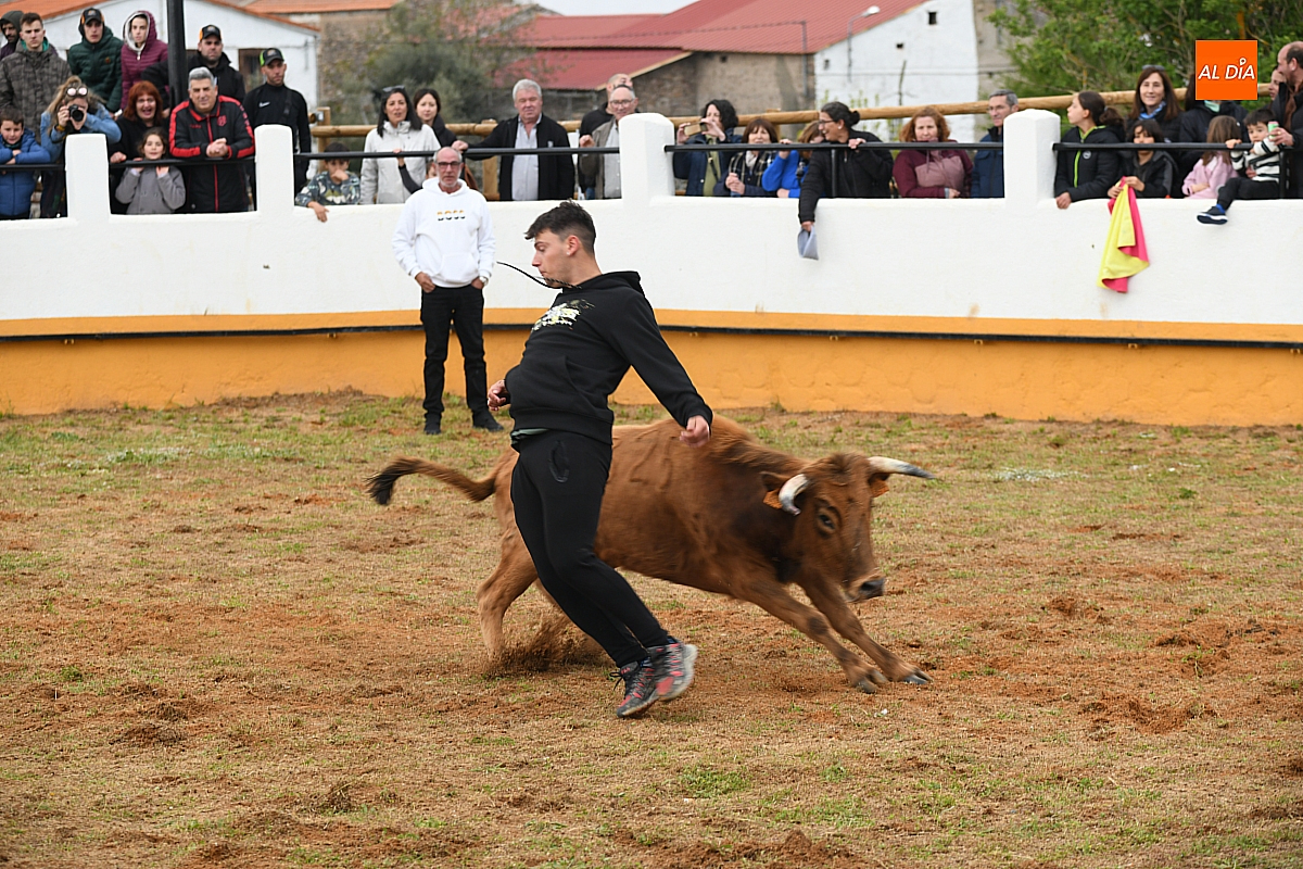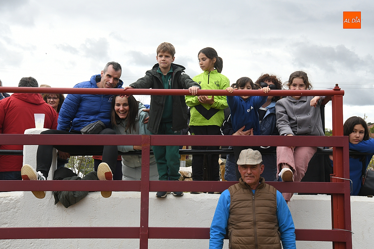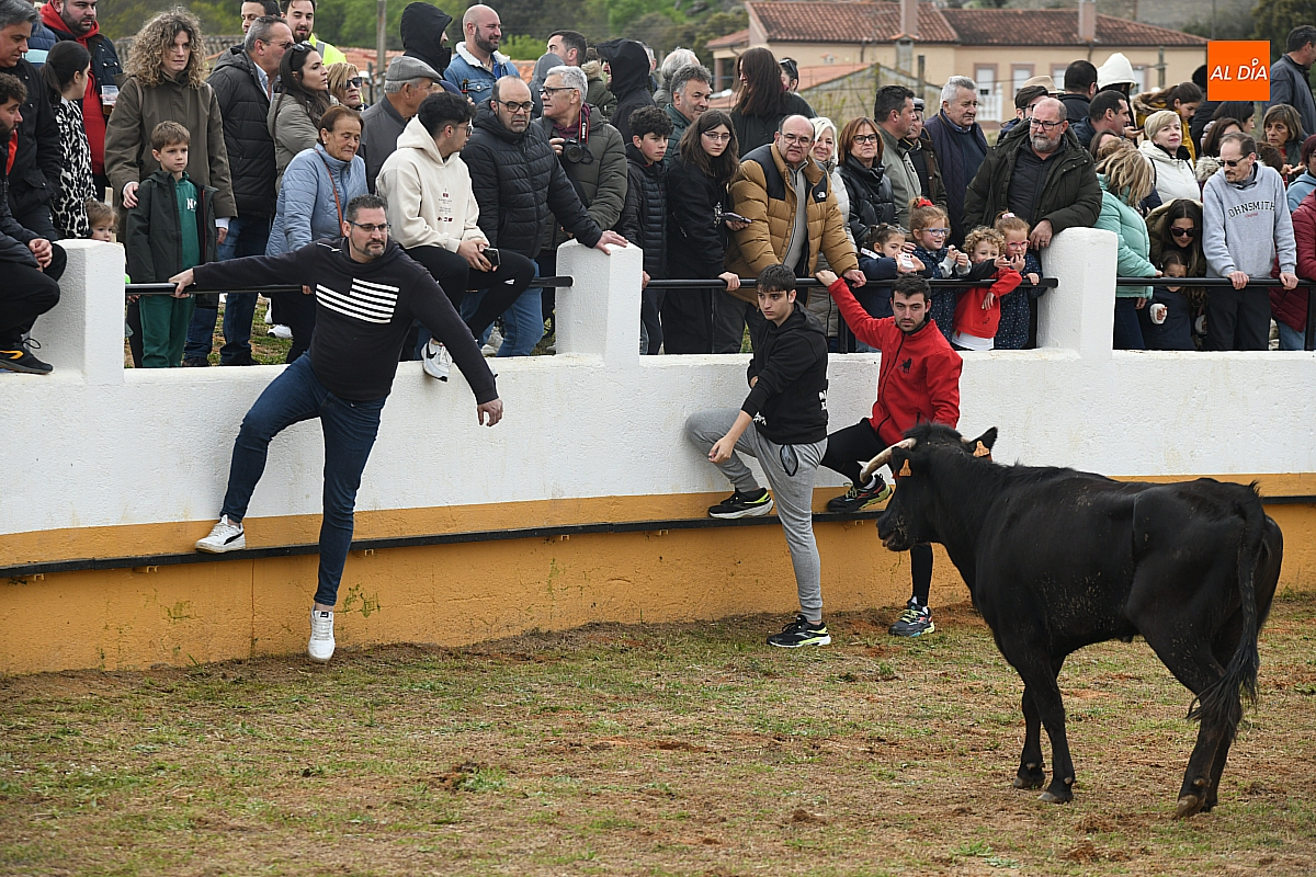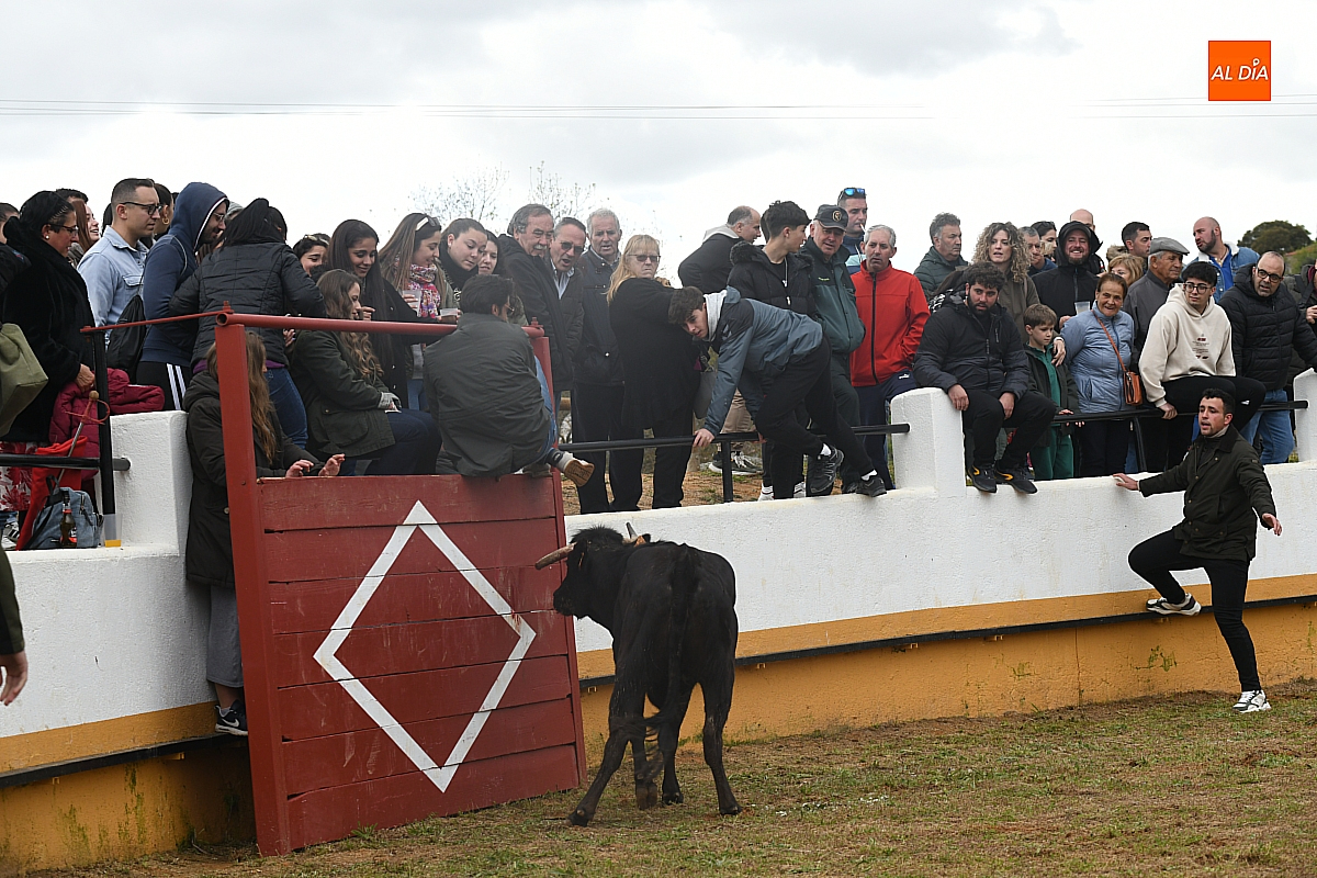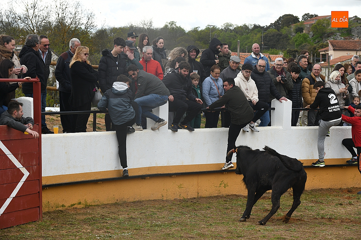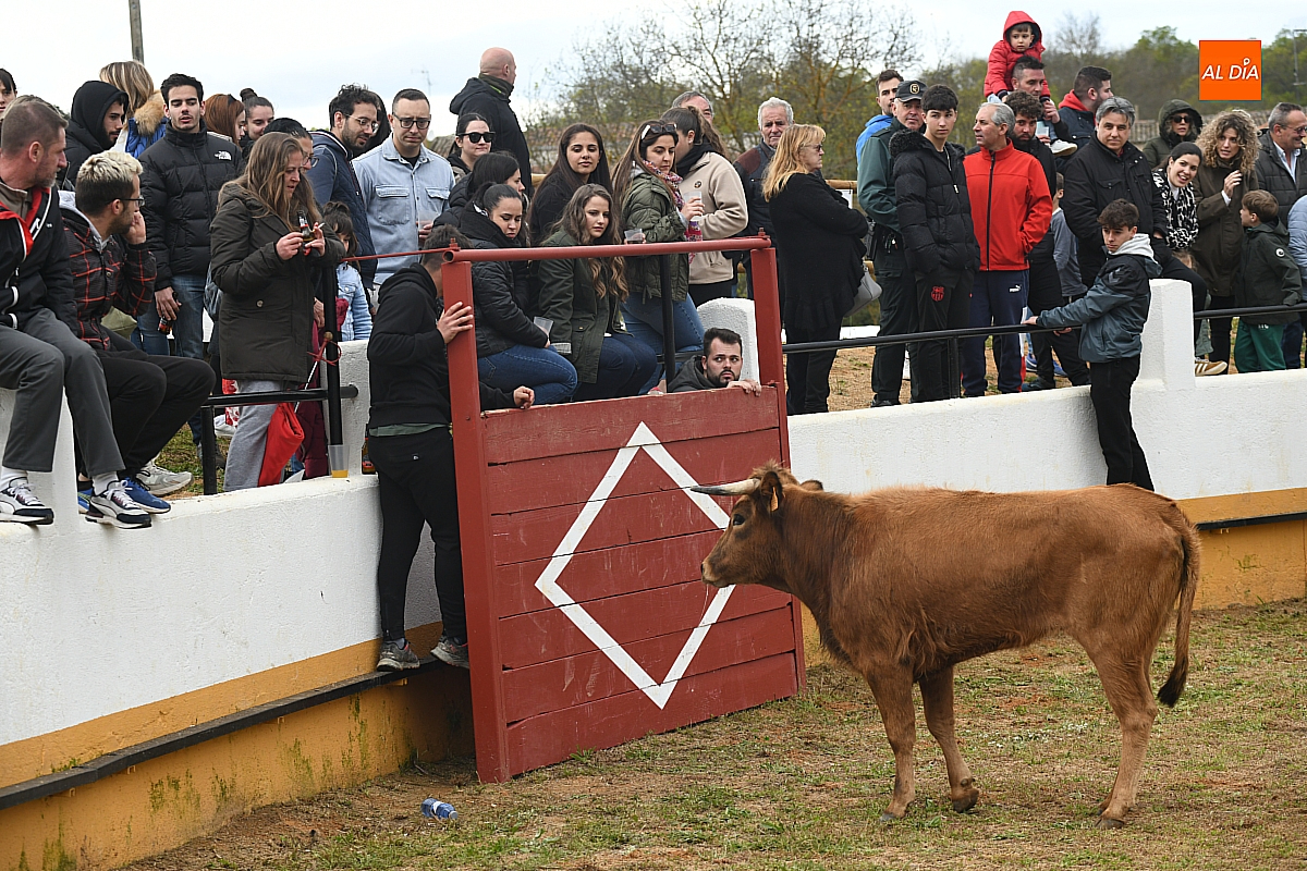 Durante la capea, jóvenes —y no tan jóvenes— disfrutaron de un ambiente animado en el que los más atrevidos demostraron su destreza ante las reses. Los más pequeños también tuvieron su espacio de diversión con carretones, fomentando así su afición al mundo taurino, tan arraigado en tierras salmantinas y portuguesas cercanas a La Raya.
