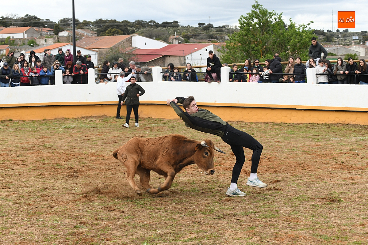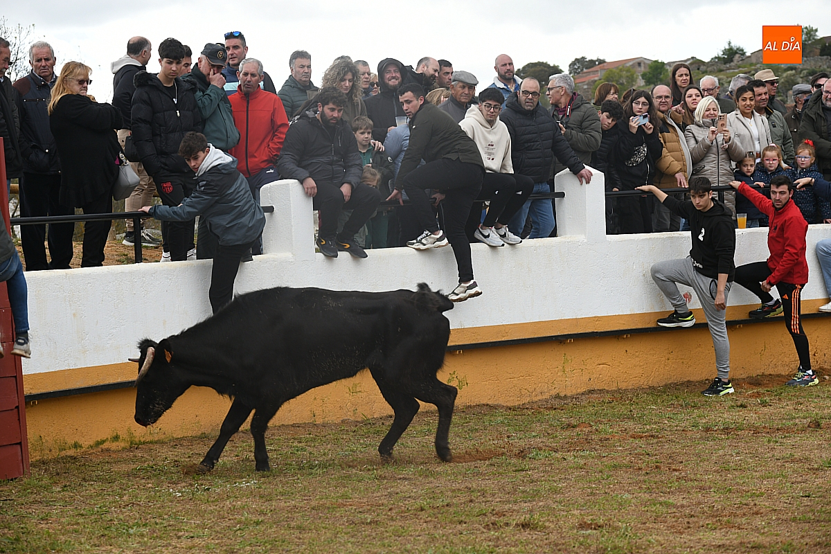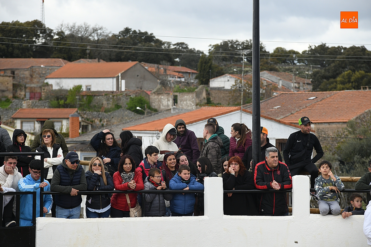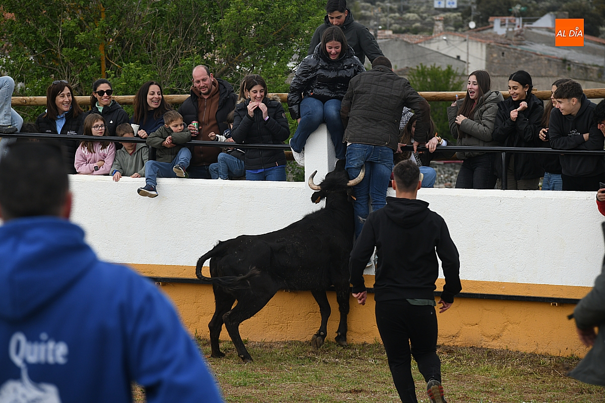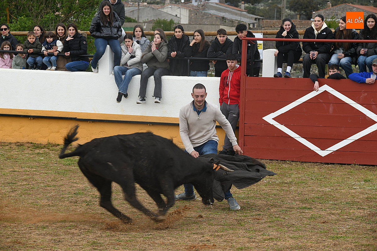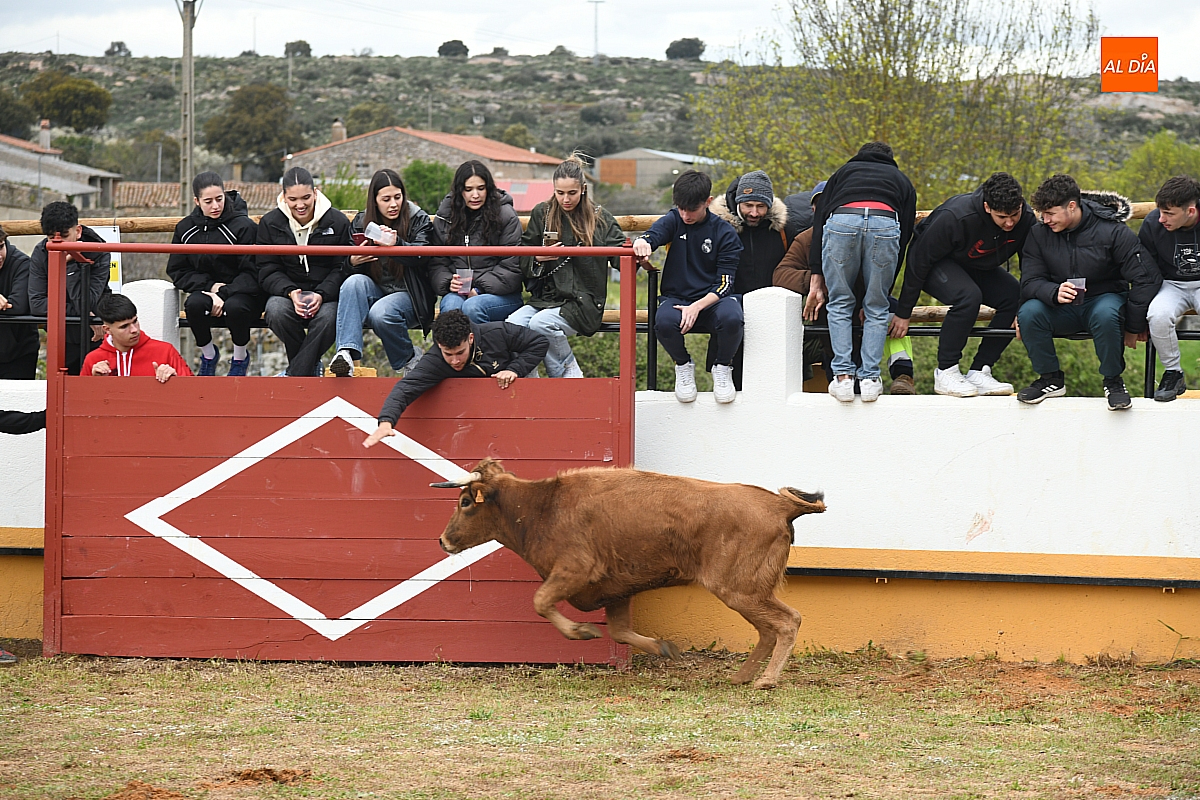 Durante la capea, jóvenes —y no tan jóvenes— disfrutaron de un ambiente animado en el que los más atrevidos demostraron su destreza ante las reses. Los más pequeños también tuvieron su espacio de diversión con carretones, fomentando así su afición al mundo taurino, tan arraigado en tierras salmantinas y portuguesas cercanas a La Raya.