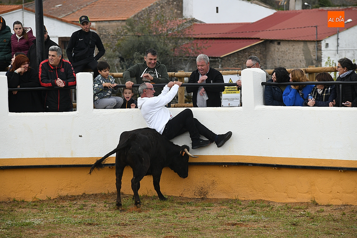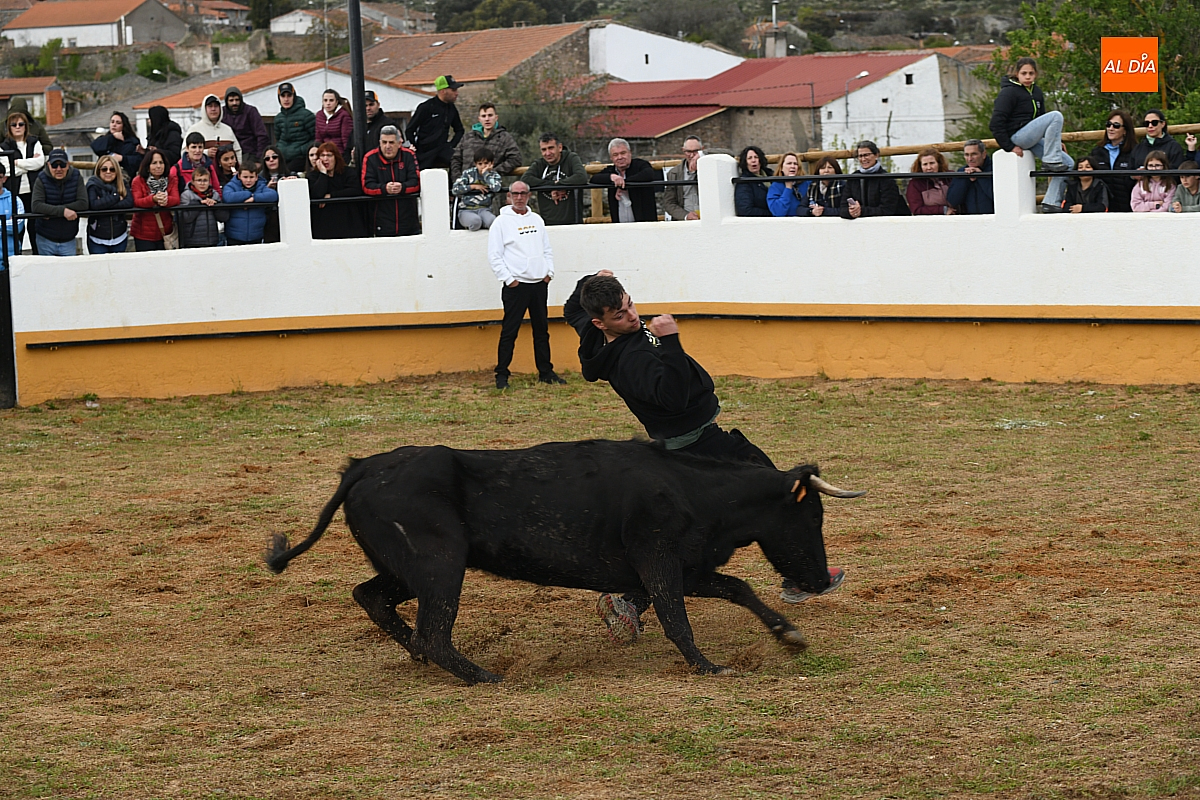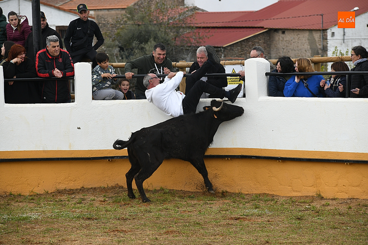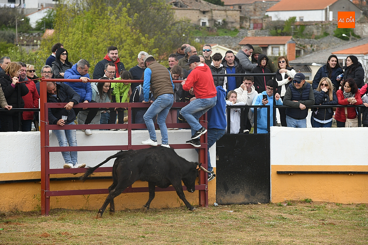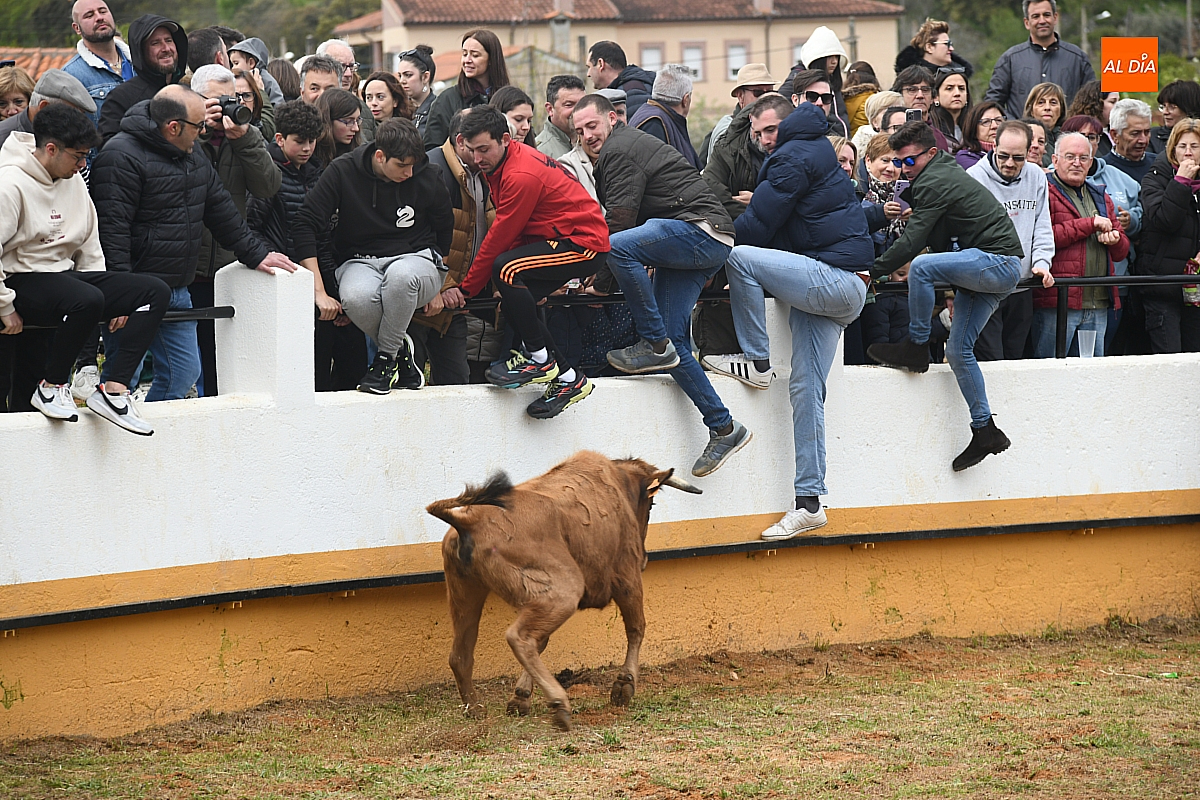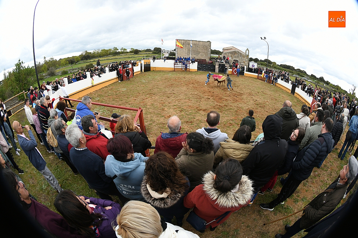 Durante la capea, jóvenes —y no tan jóvenes— disfrutaron de un ambiente animado en el que los más atrevidos demostraron su destreza ante las reses. Los más pequeños también tuvieron su espacio de diversión con carretones, fomentando así su afición al mundo taurino, tan arraigado en tierras salmantinas y portuguesas cercanas a La Raya.