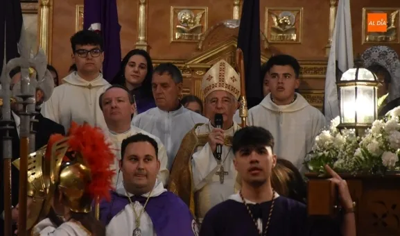Entre ellos se situó el Obispo José Luis Retana, quién pronunció unas palabras a modo de cierre de la Semana Santa, exponiendo que “no estamos solos en el camino de la vida”. Durante este acto, se rezó una Salve (“despacio, para comprender lo que se está diciendo”, según el Obispo), tras lo cual Retana deseó una “Feliz Pascua” a todos los presentes, además de impartir la bendición. A partir de ahí, fue turno para las clásicas fotos de familia, de los costaleros del Resucitado, de las banderas de la Cofradía de Jesús Nazareno y de los romanos.