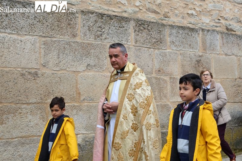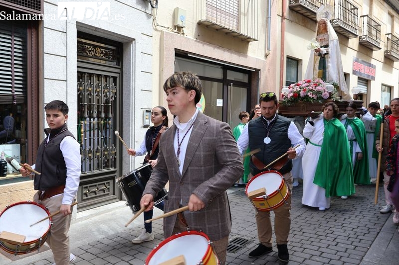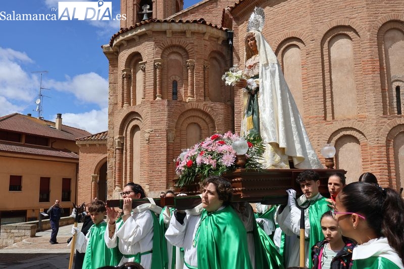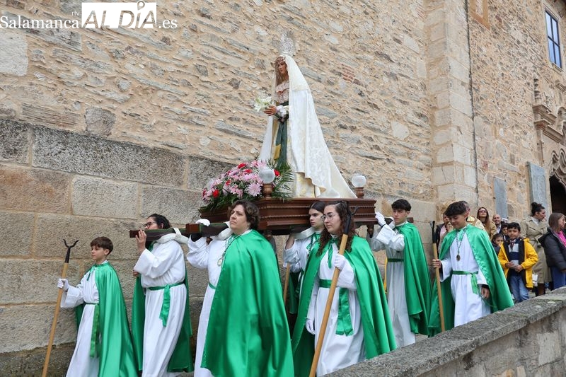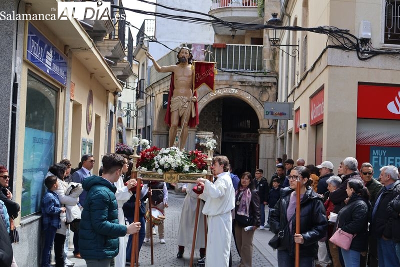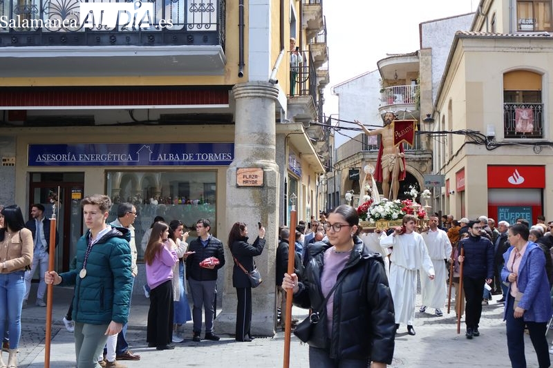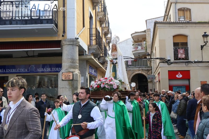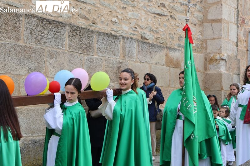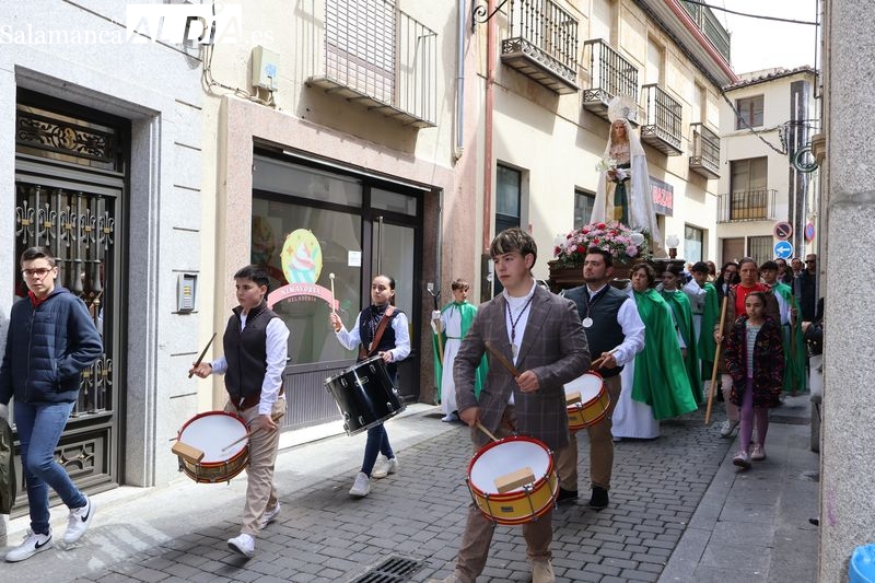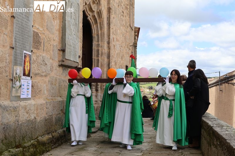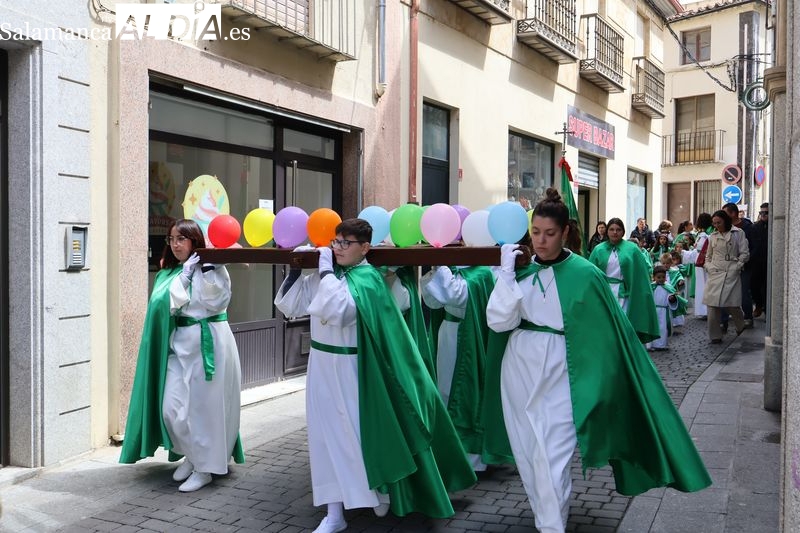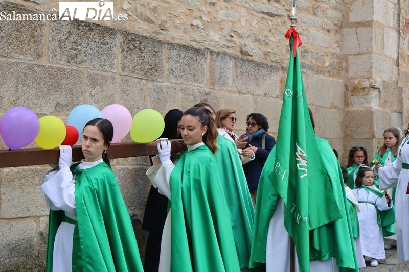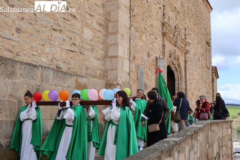 A las 13:00 horas, tras la Eucaristía en la iglesia de San Pedro donde cuatro niños recibieron su Primera Comunión, tuvo lugar la procesión del Domingo de Pascua.